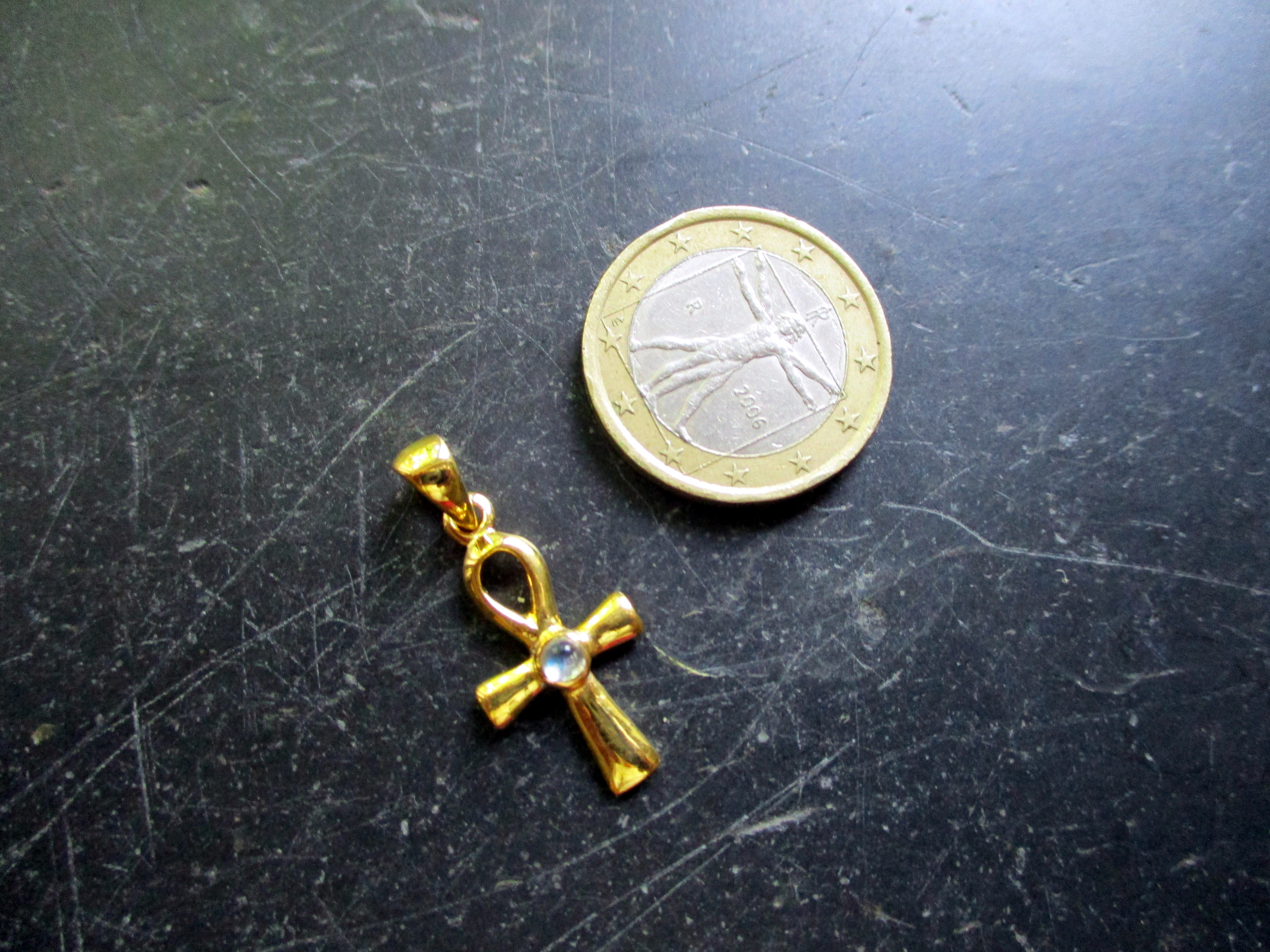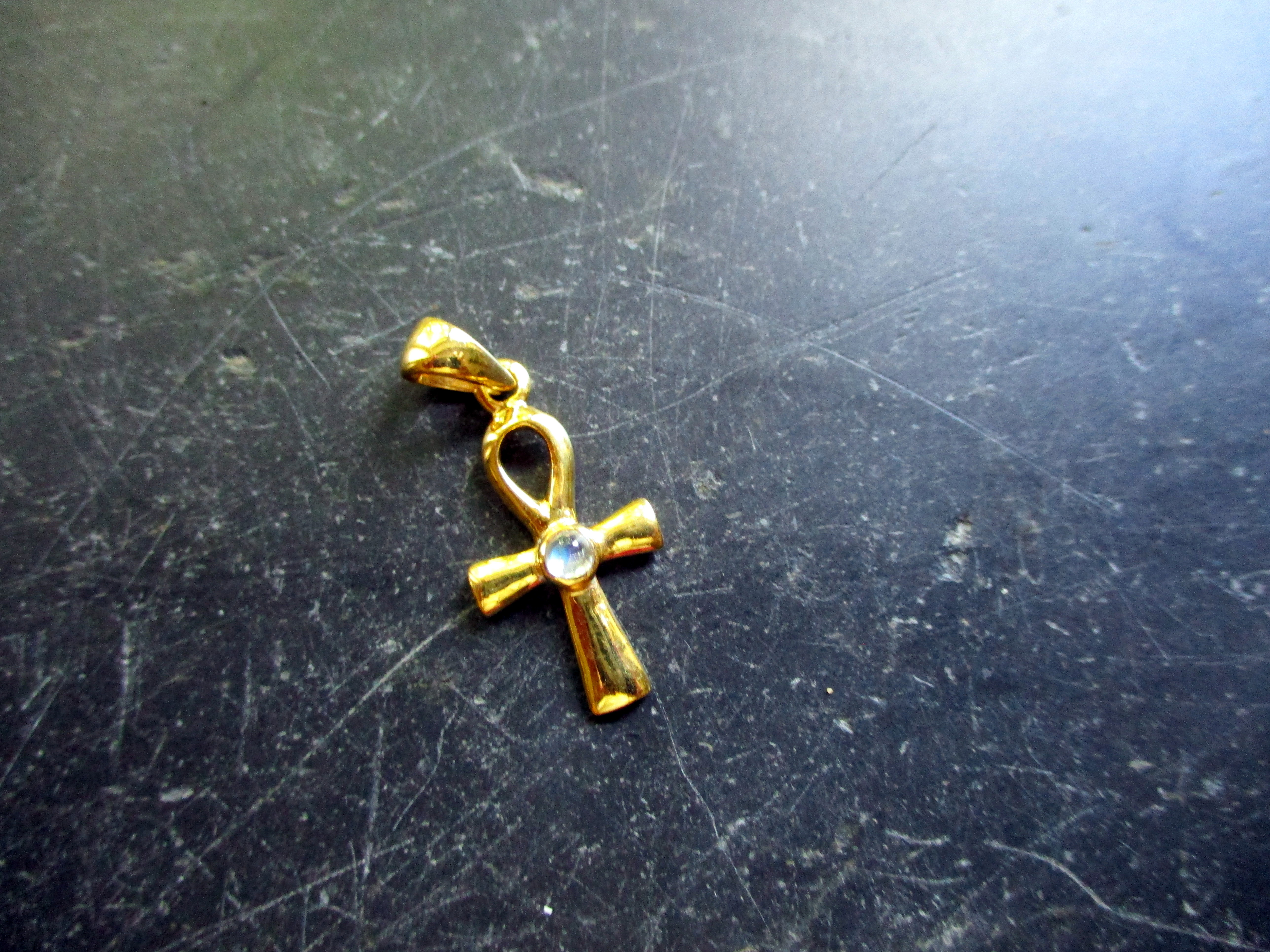 Anhänger, Ankh, Sterlingsilber, vergoldet, Mondstein, facettiert, Ägypten, Schutz, Heilung, Isis