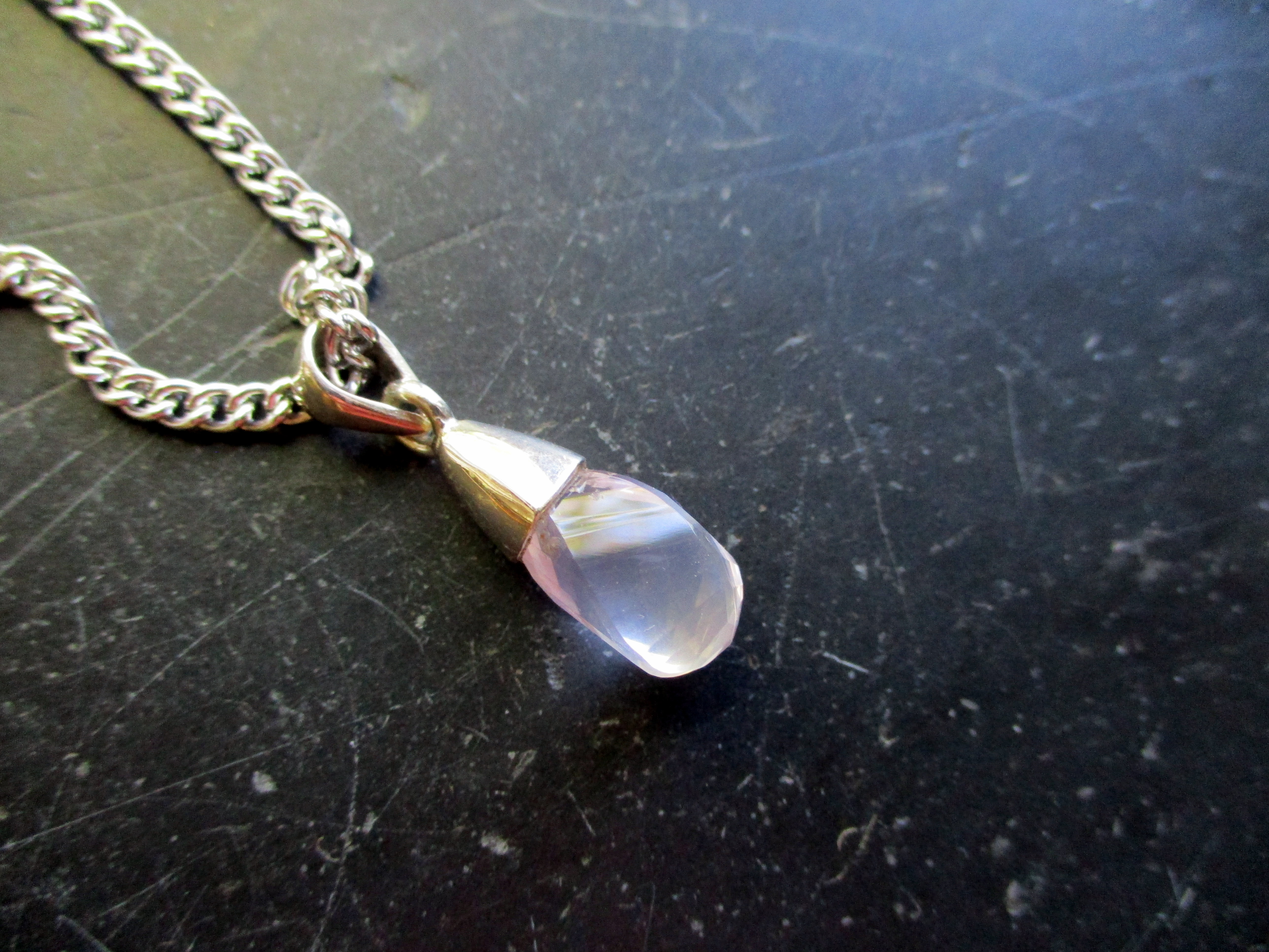 Anhänger, Sterlingsilber, Rosenquarz, facettiert, gedreht, weiß, Schmuck, Frauen