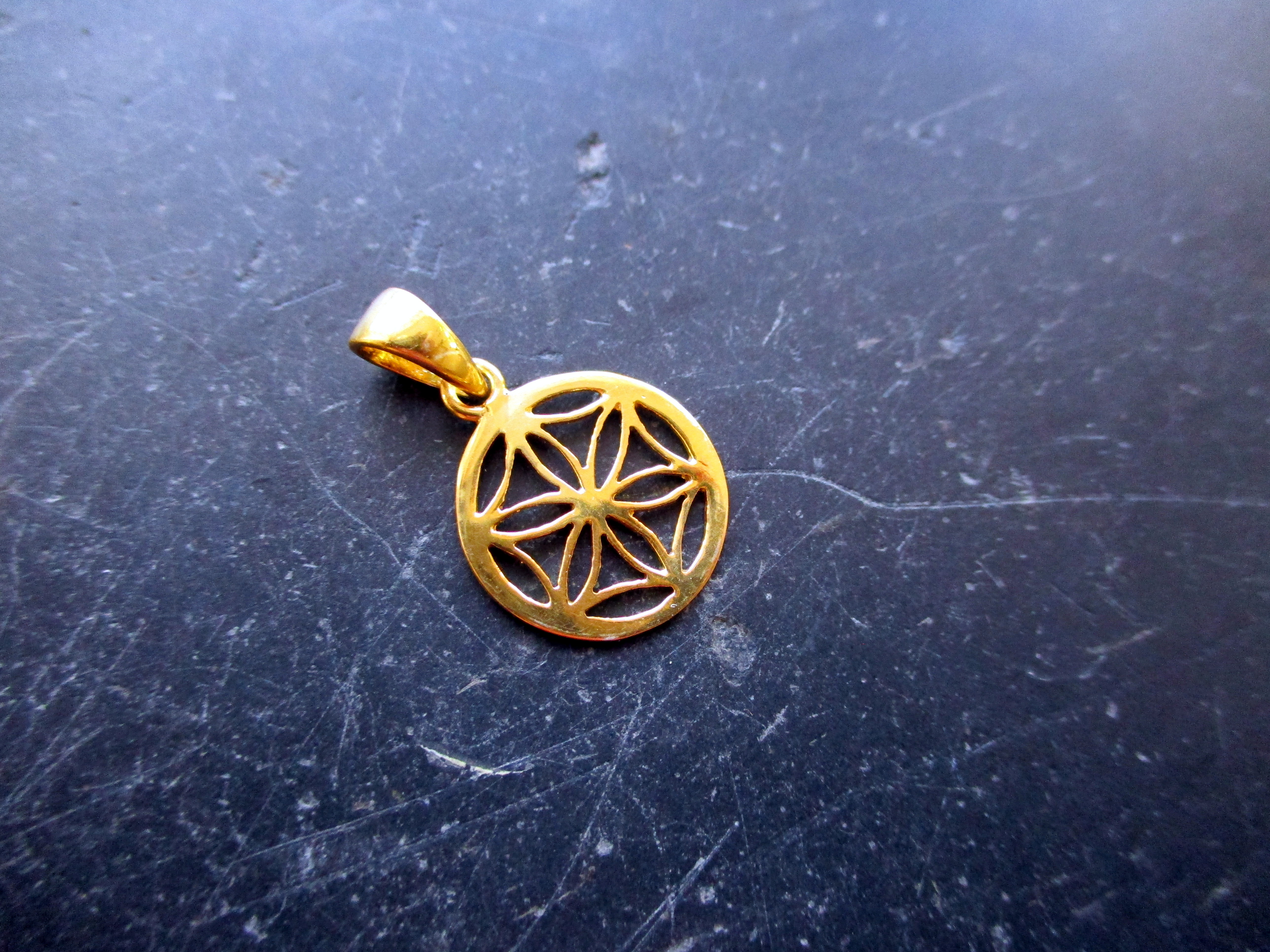 Anhänger, Sterlingsilber, vergoldet, Saat des Lebens, heilige Geometrie, Blume