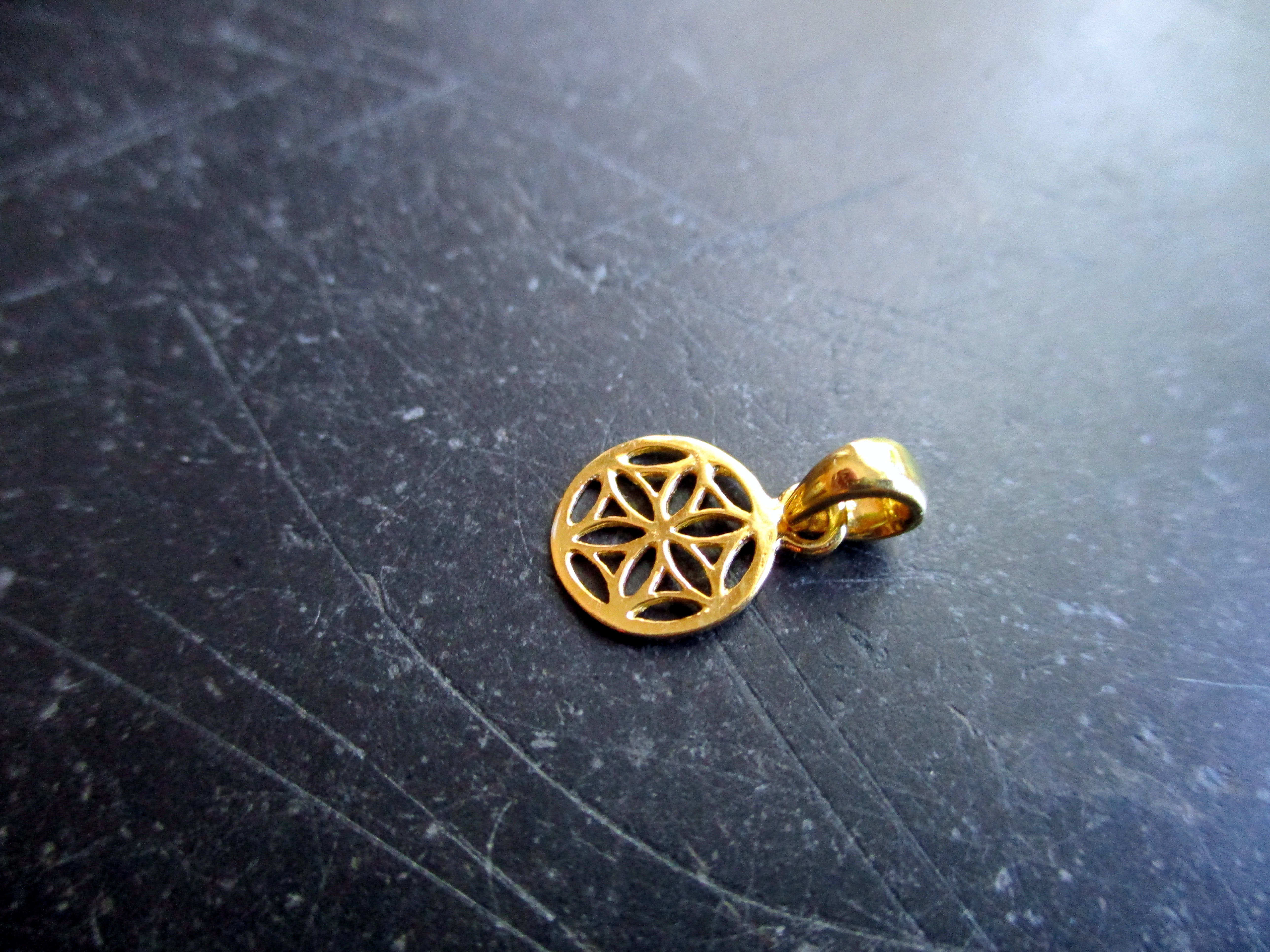 Blume des Lebens, Saat des Lebens, Anhänger, Silber, vergoldet, Symbol, Schmuck, klein