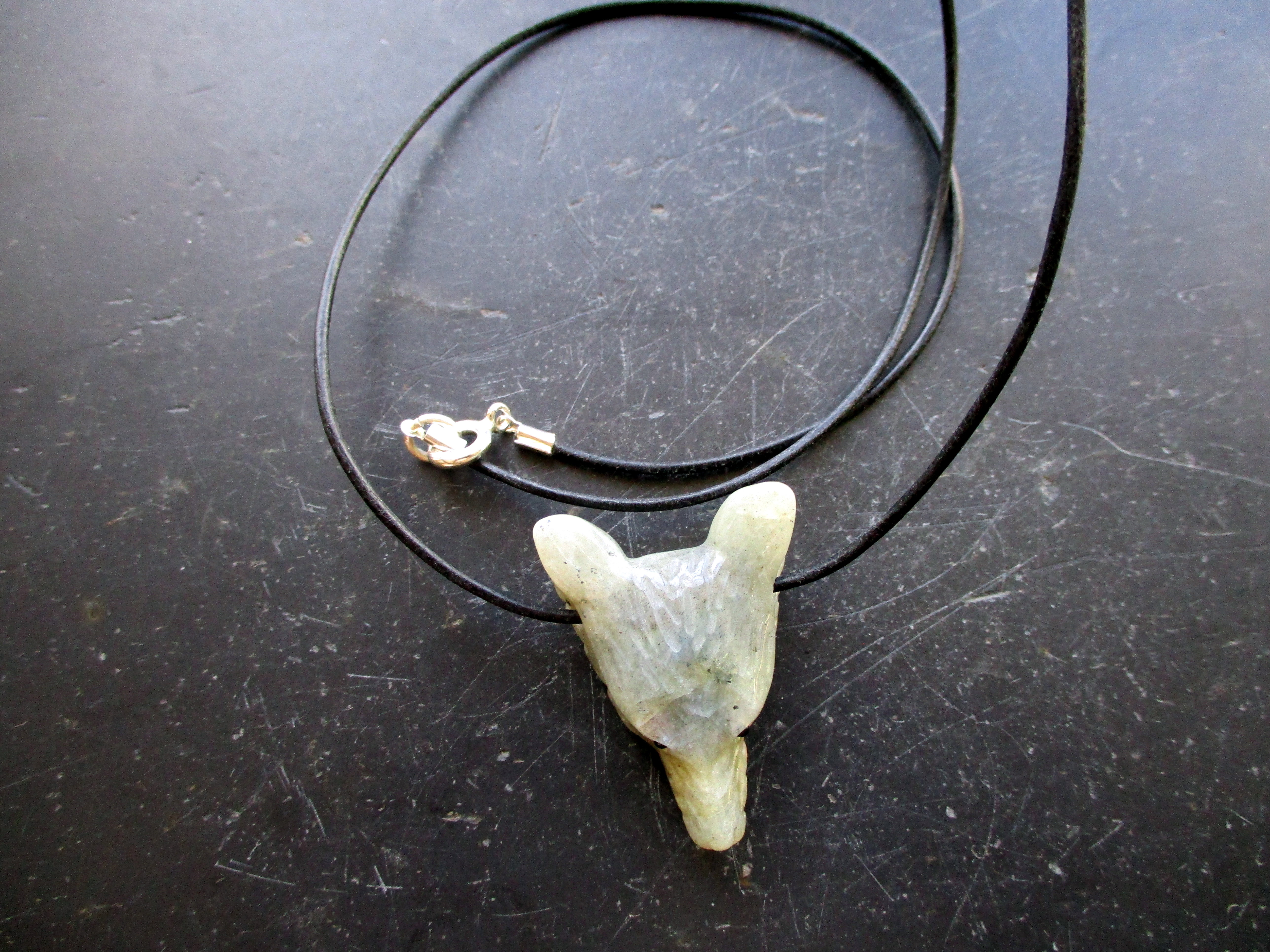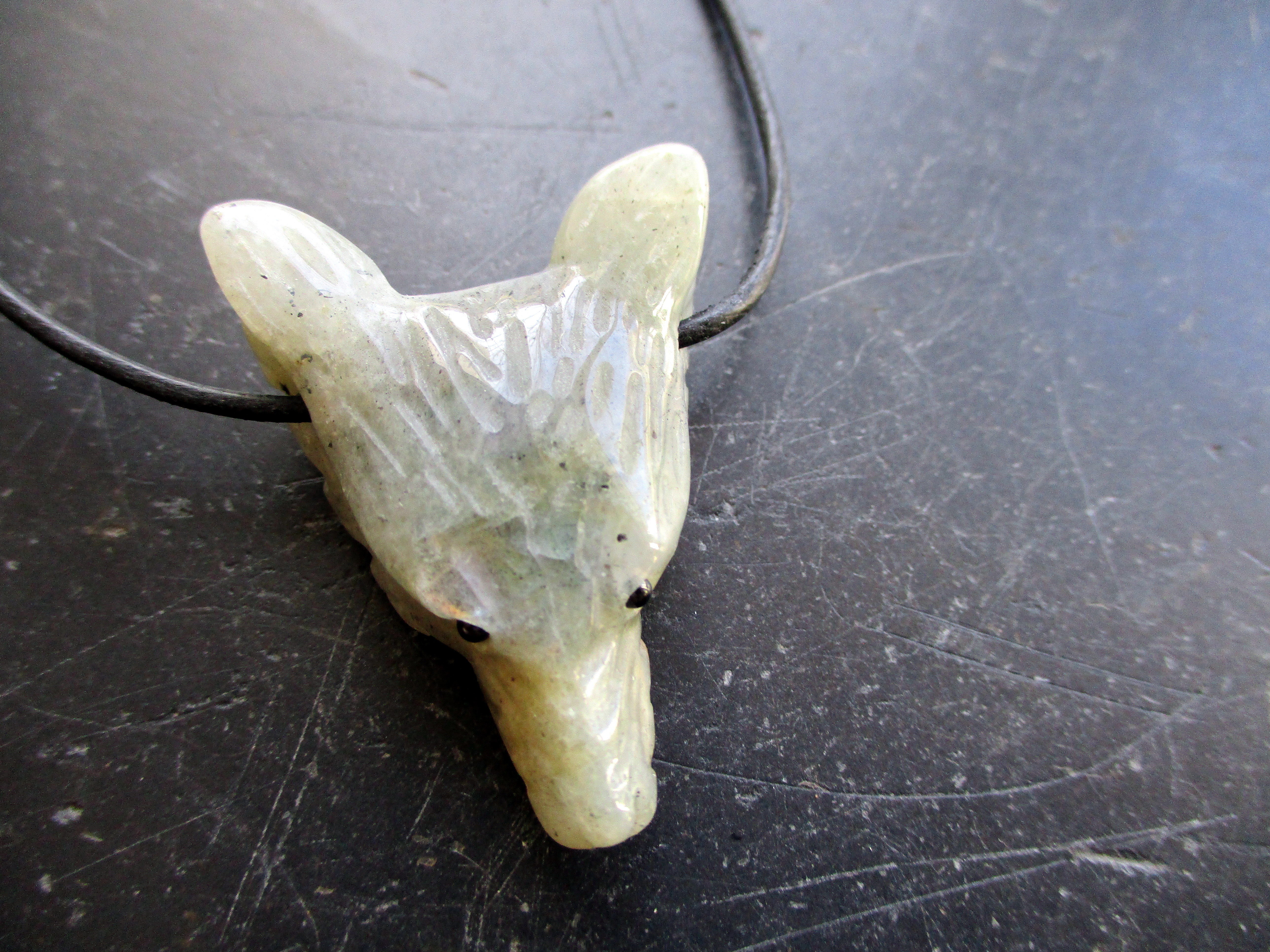 Anhänger, Kette, Lederband, Wolf, Labradorit, grün, Krafttier, Schmuck, Unisex