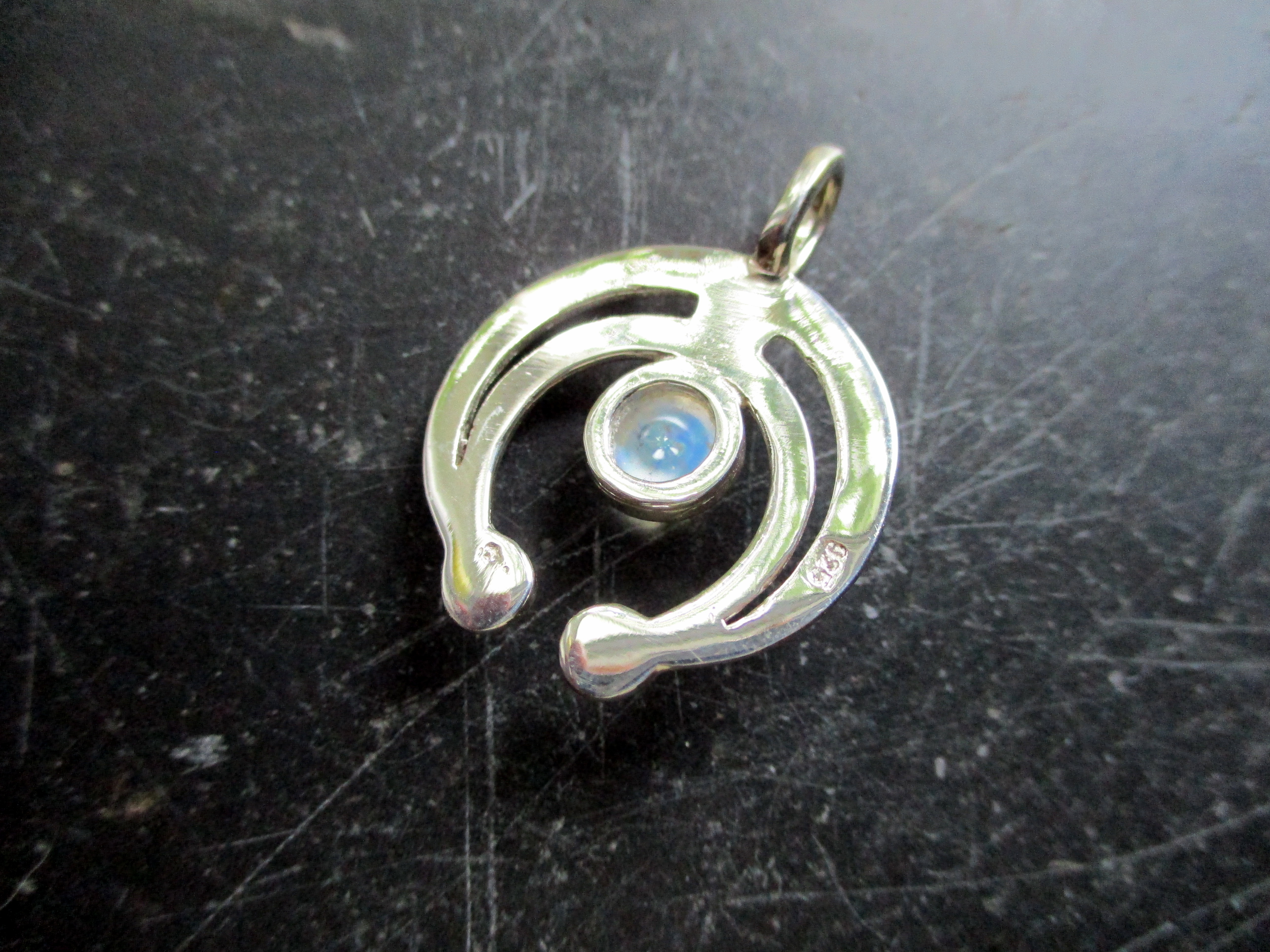 Diese Lunula ist aus Sterlingsilber und hat einen leuchtenden