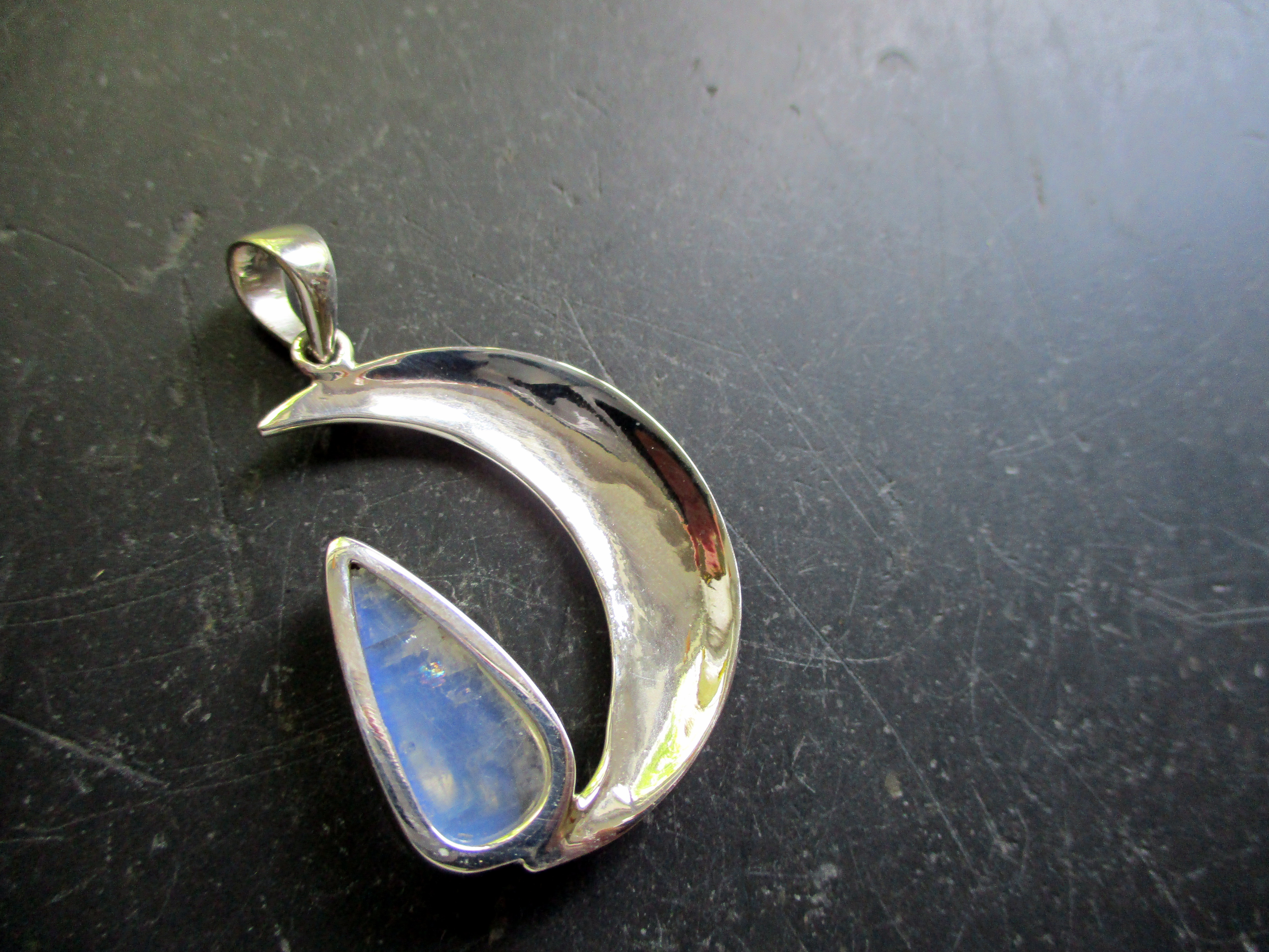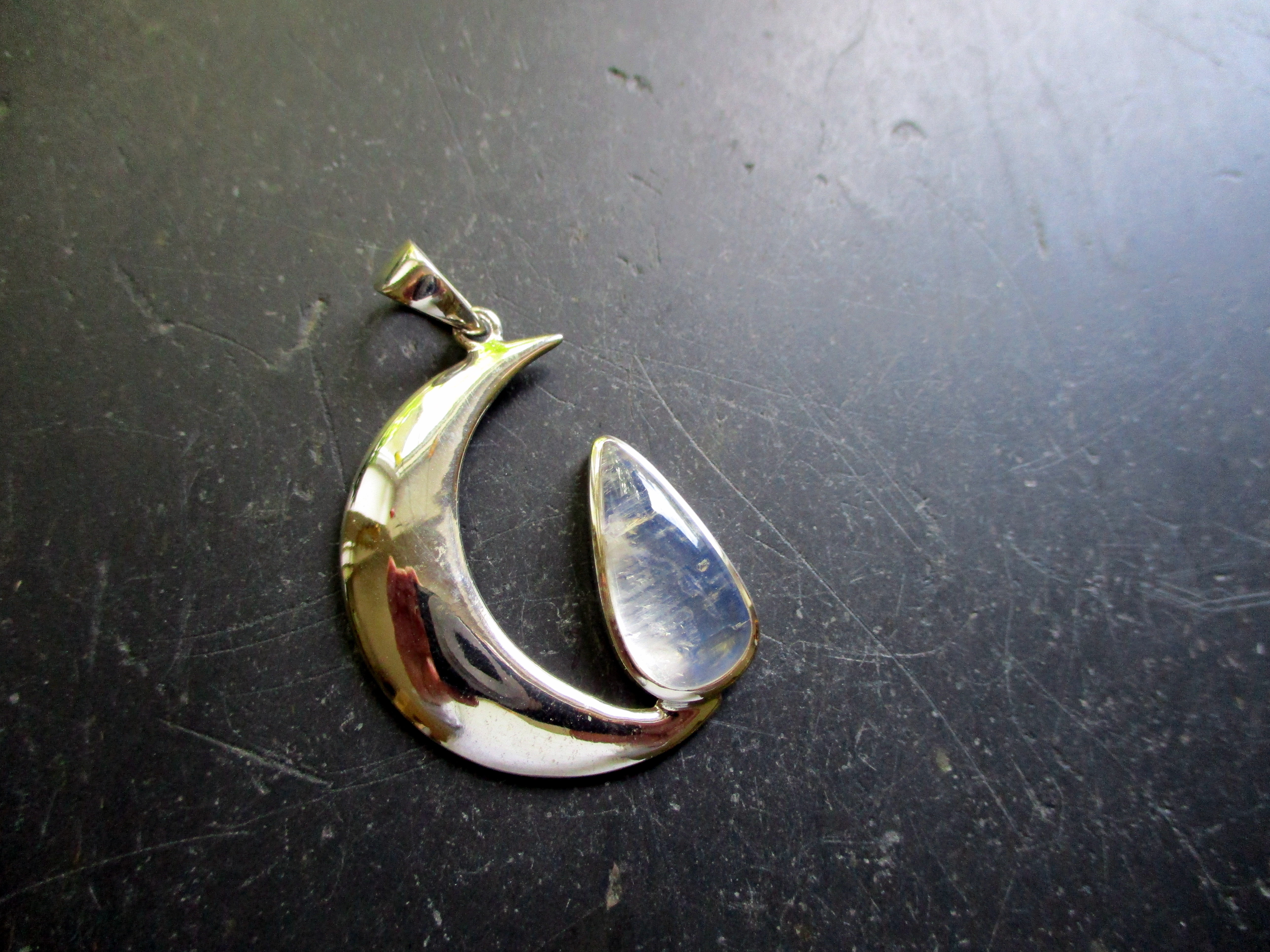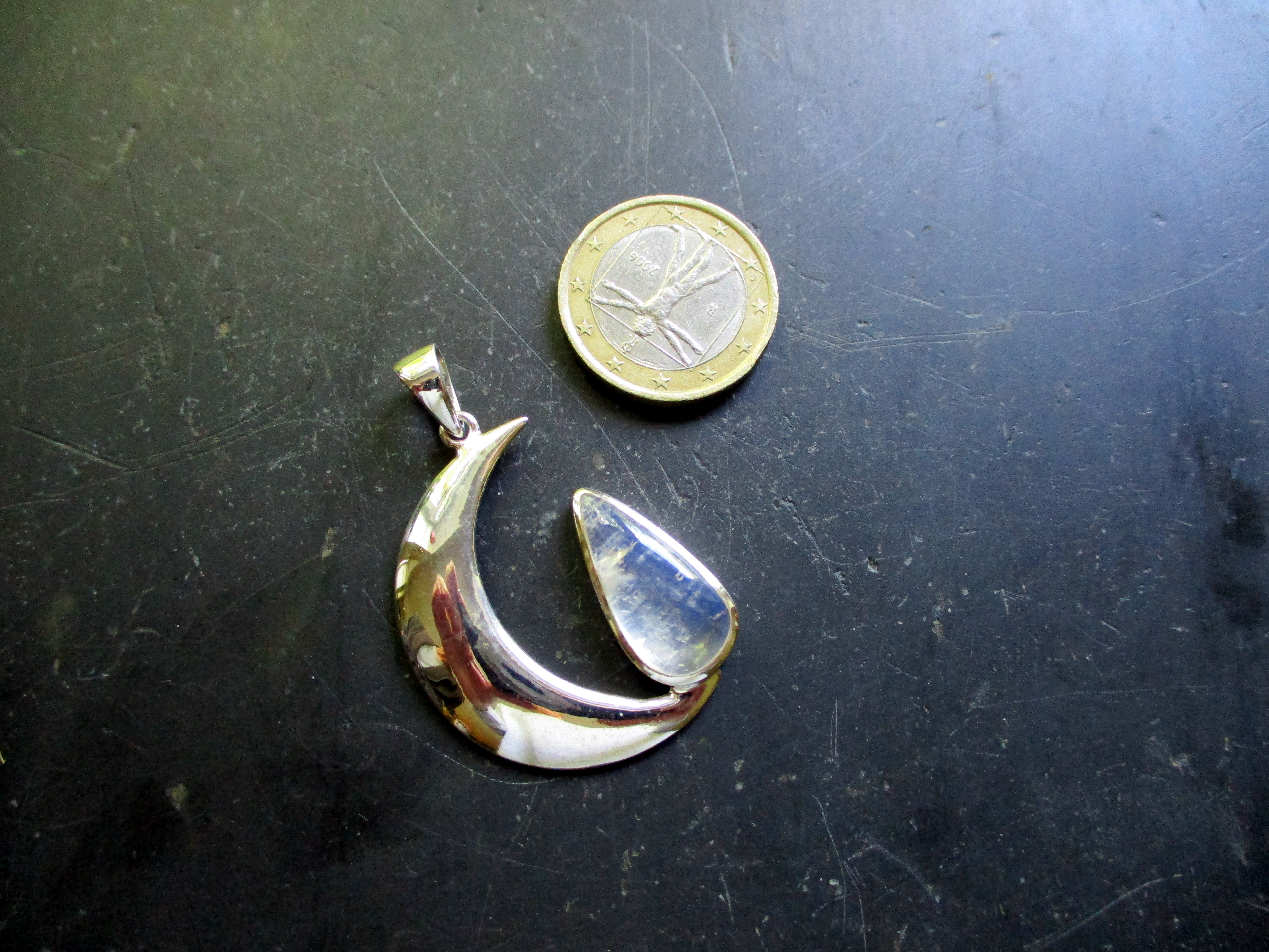Anhänger, Mond, Silber, Mondstein, Sterlingsilber, weiß, groß, Esoterik
