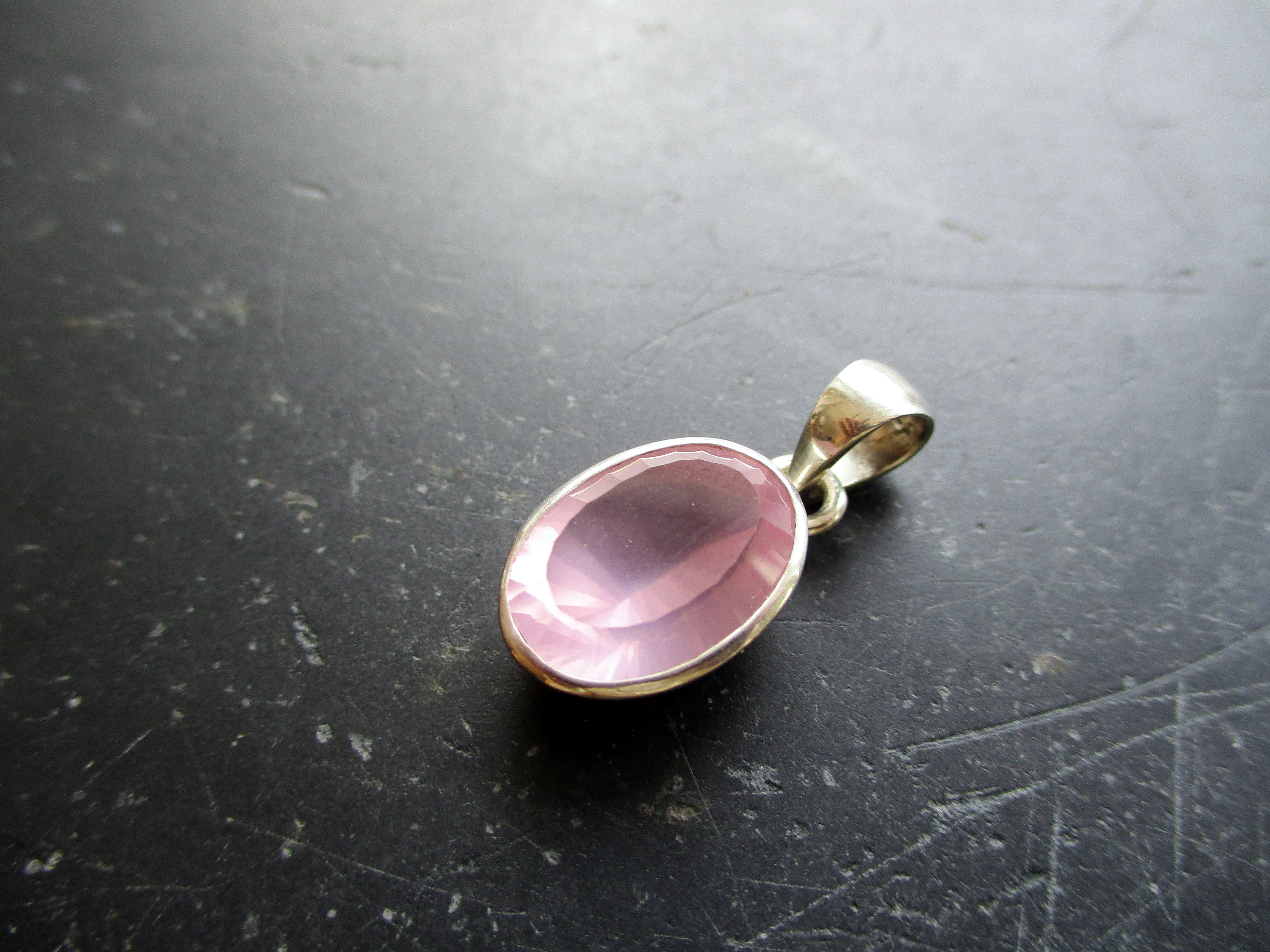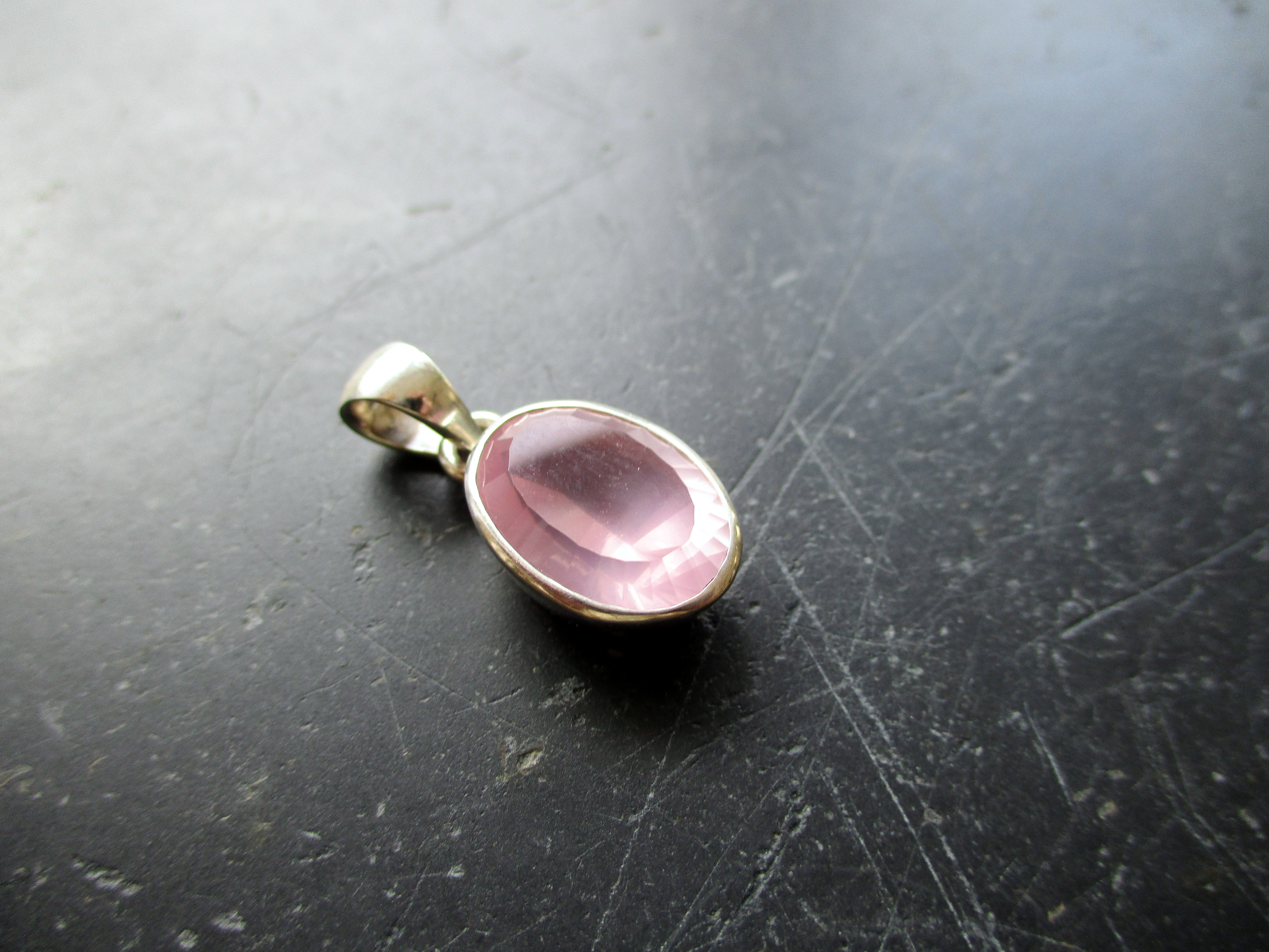 Anhänger, Rosenquarz, facettiert, Sterlingsilber, Silber, rosa, Schmuck