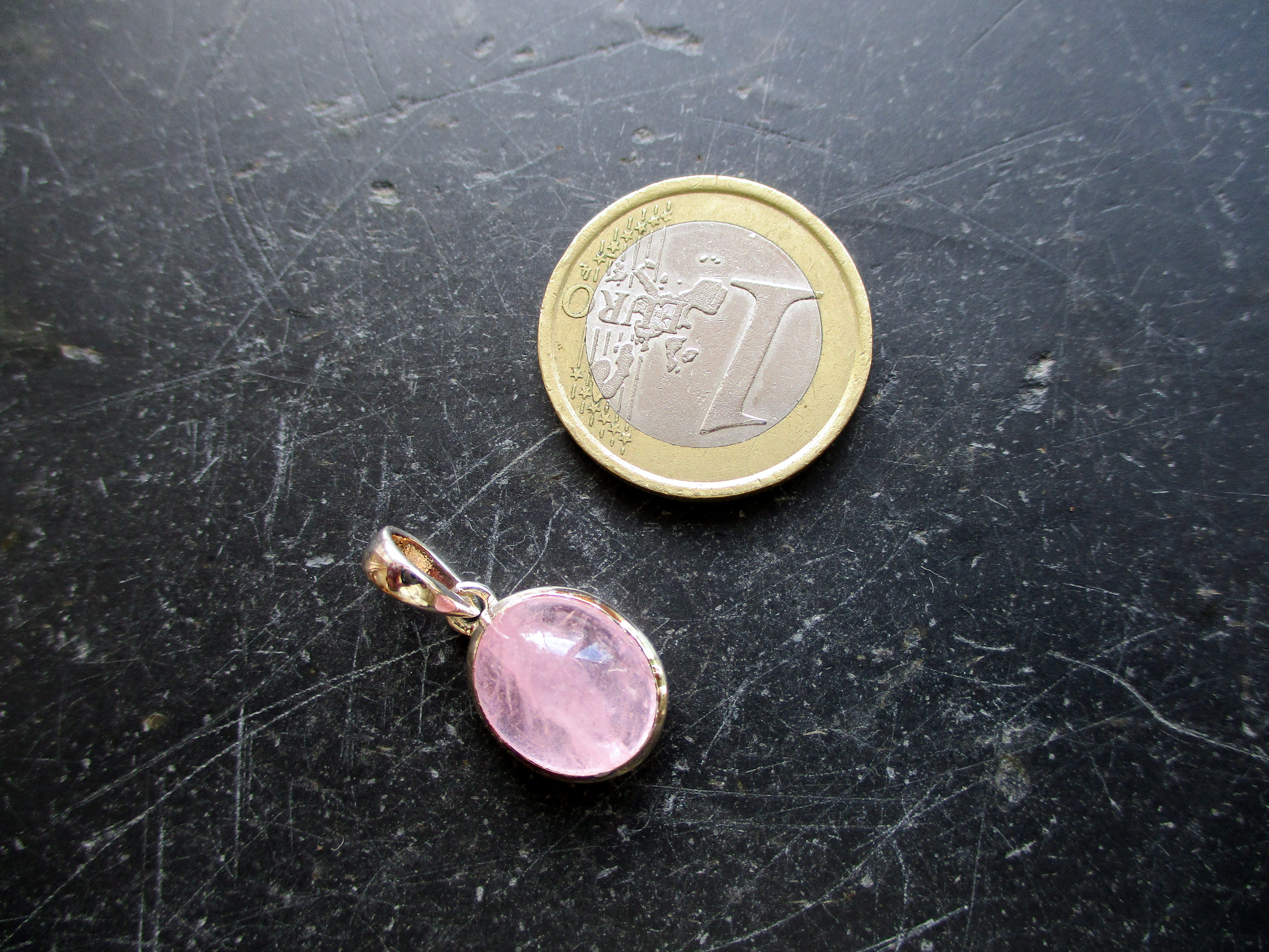 Oval ist dieser schöne Anhänger aus Rosenquarz