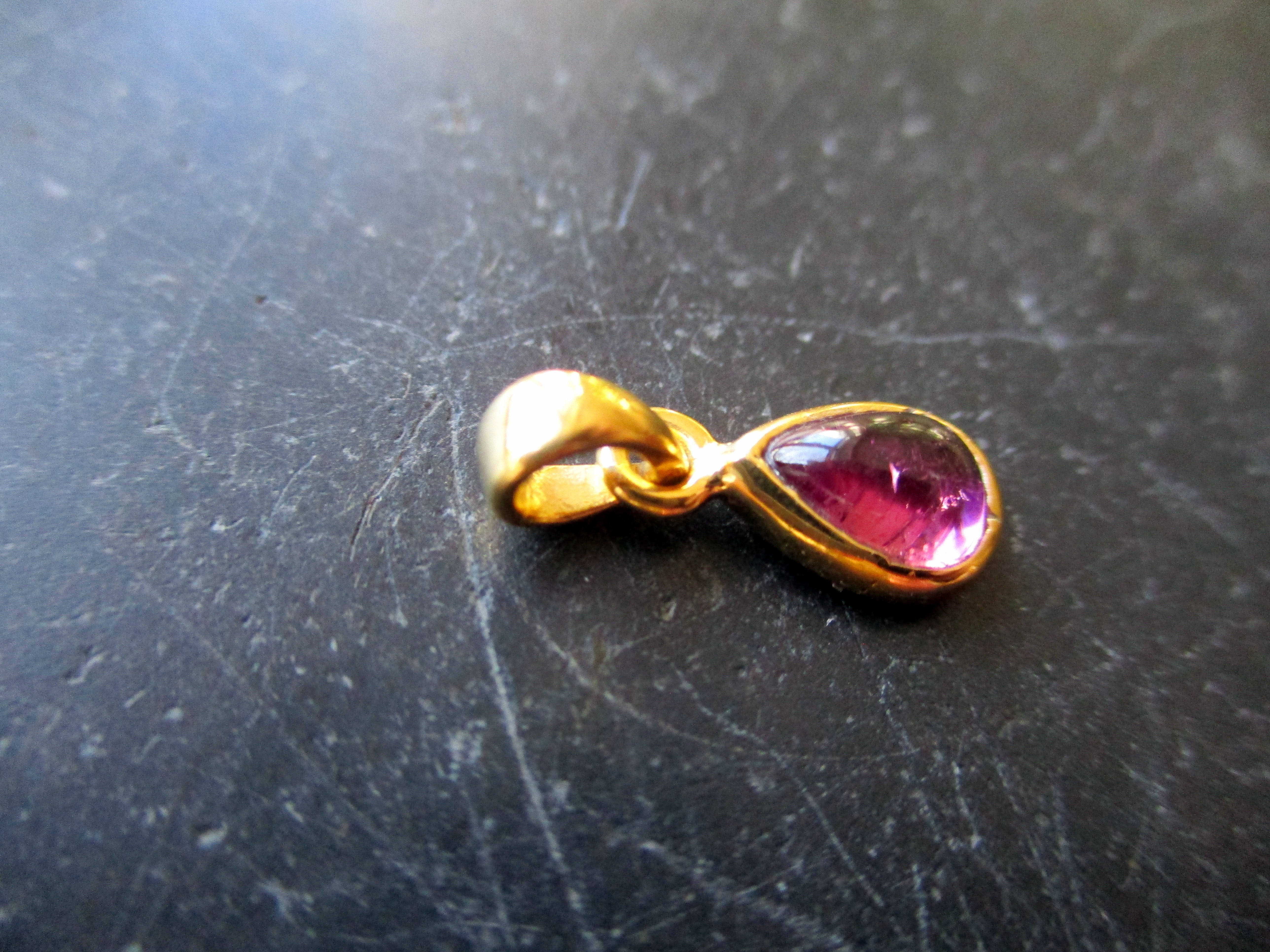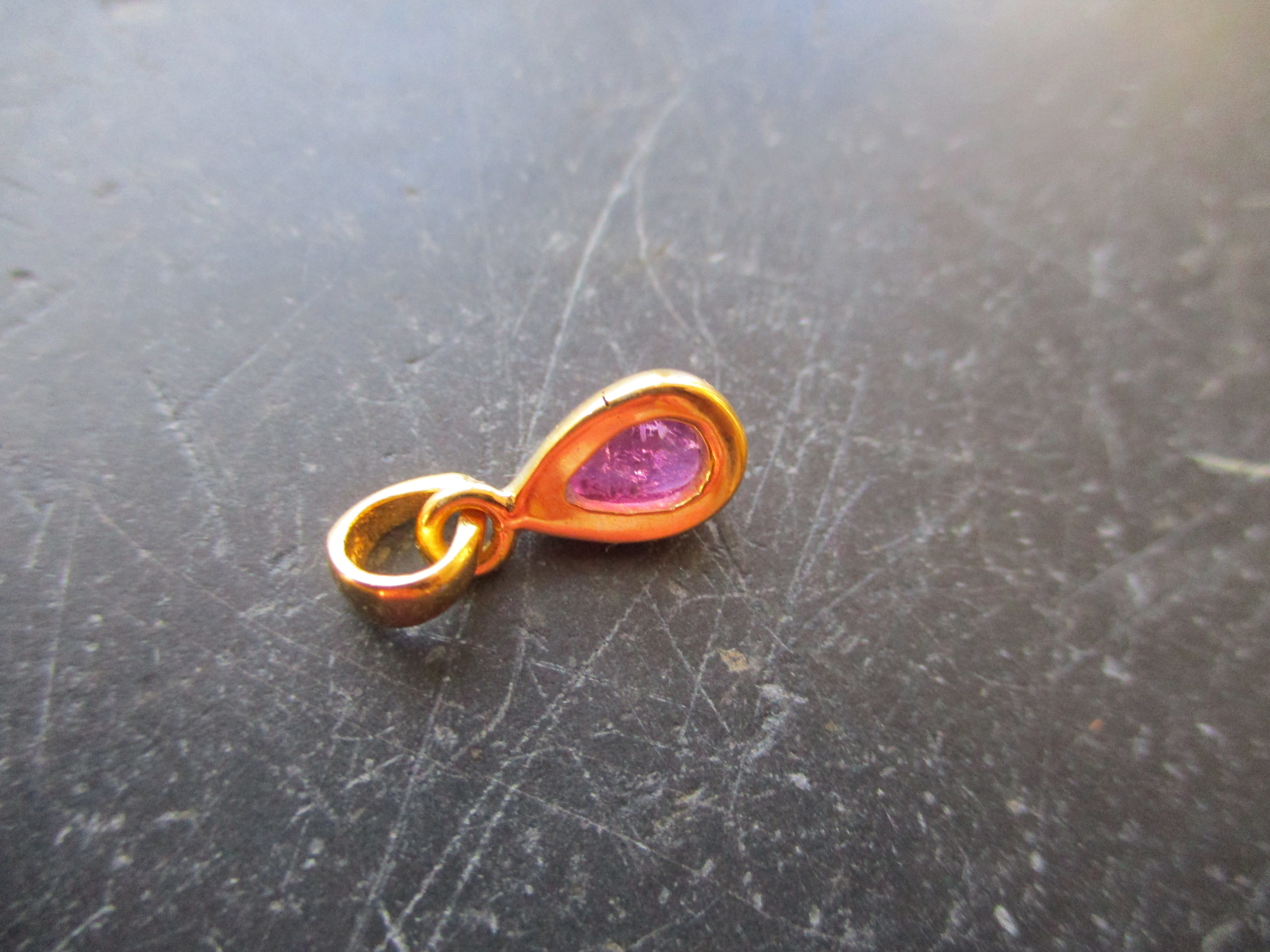 Der Anhänger ist in Form eiens Tropfen, der Stein