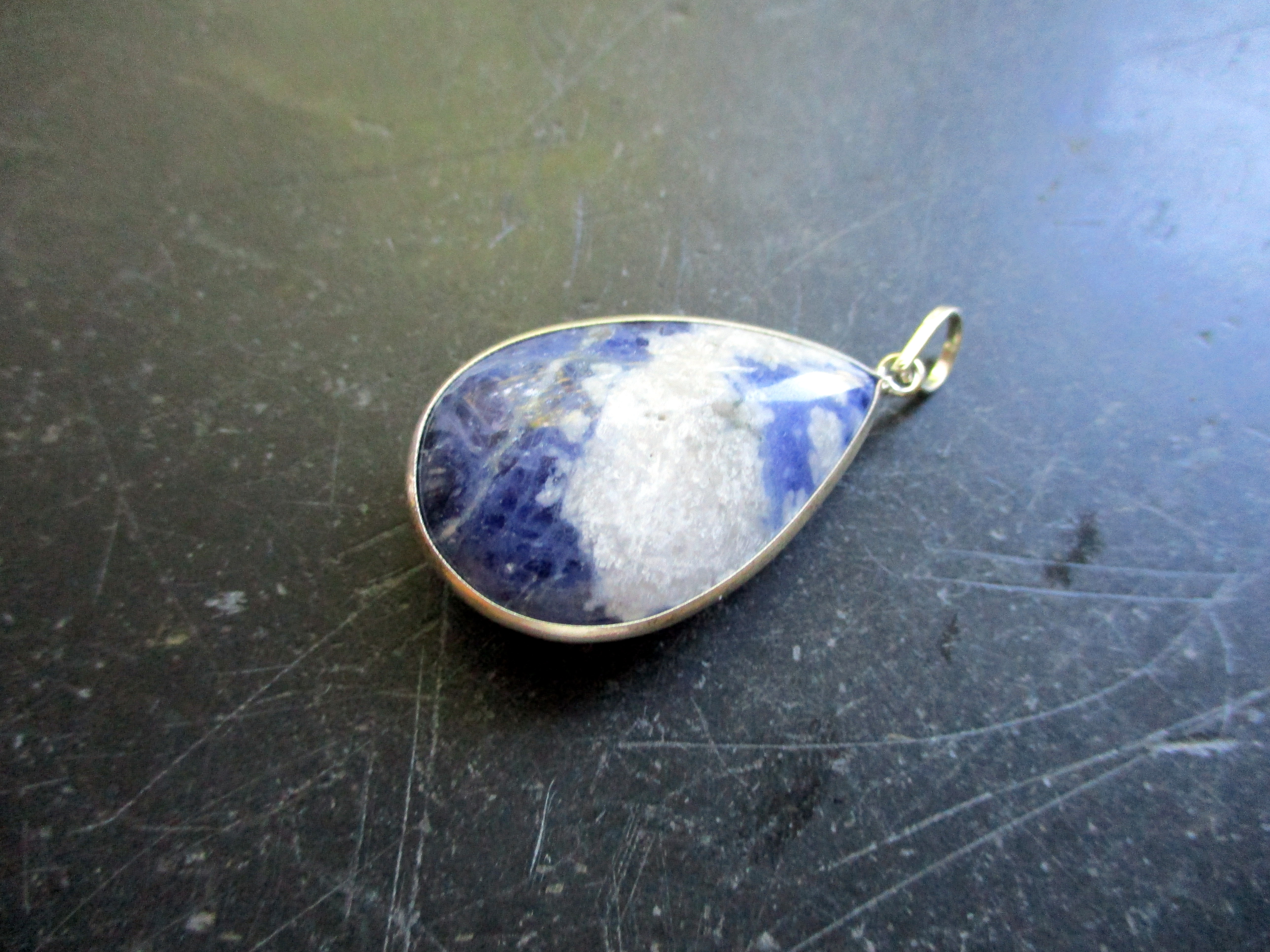 Oval ist dieser Ahänger aus blauem Sodalith,
