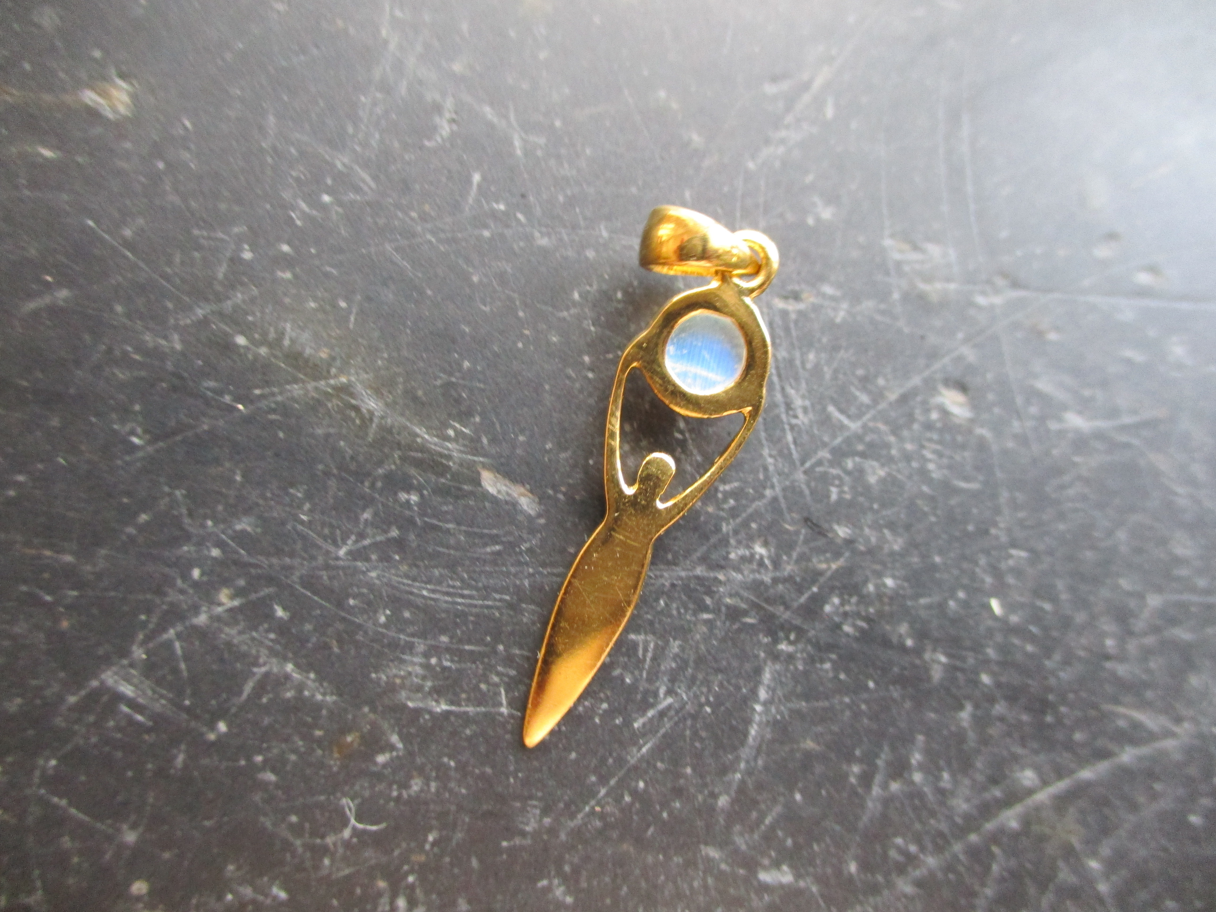 Göttin, Gaja, Erdmutter, Sterlingsilber, vergoldet, Mondstein, Schmuck, Muttergöttin, klein