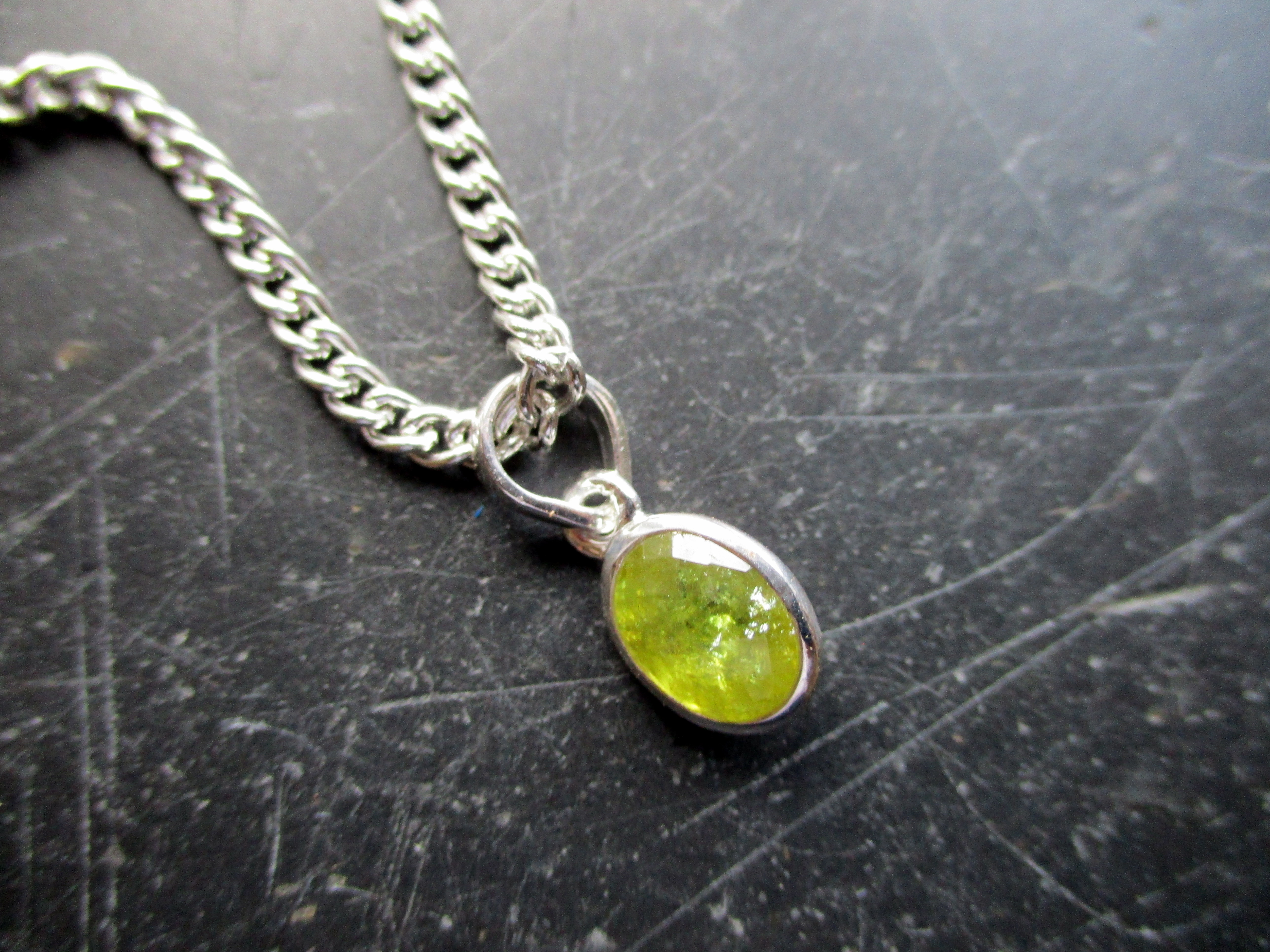 Dieser feine Grossular ist besonders gefasst in Sterlingsilber.