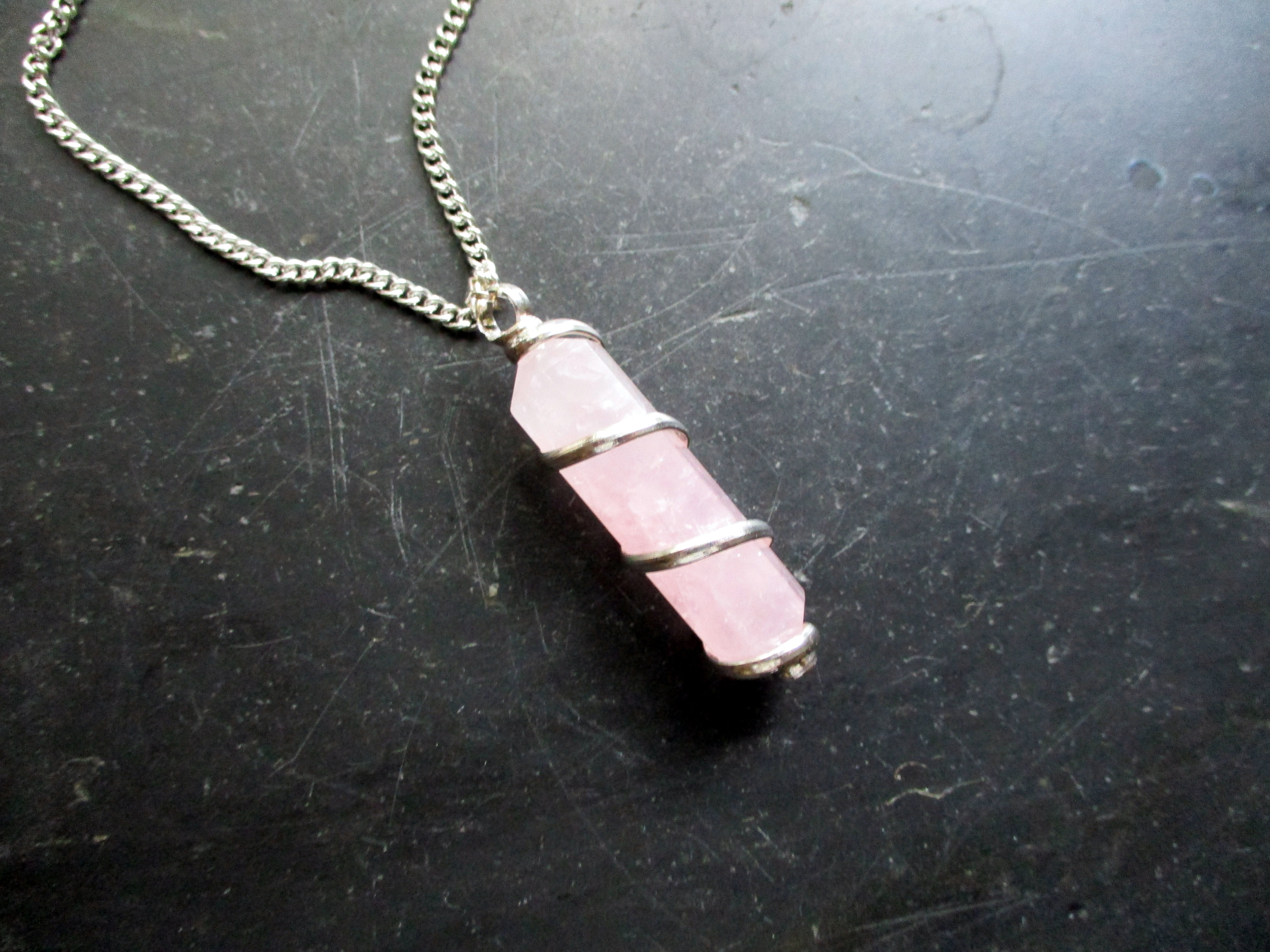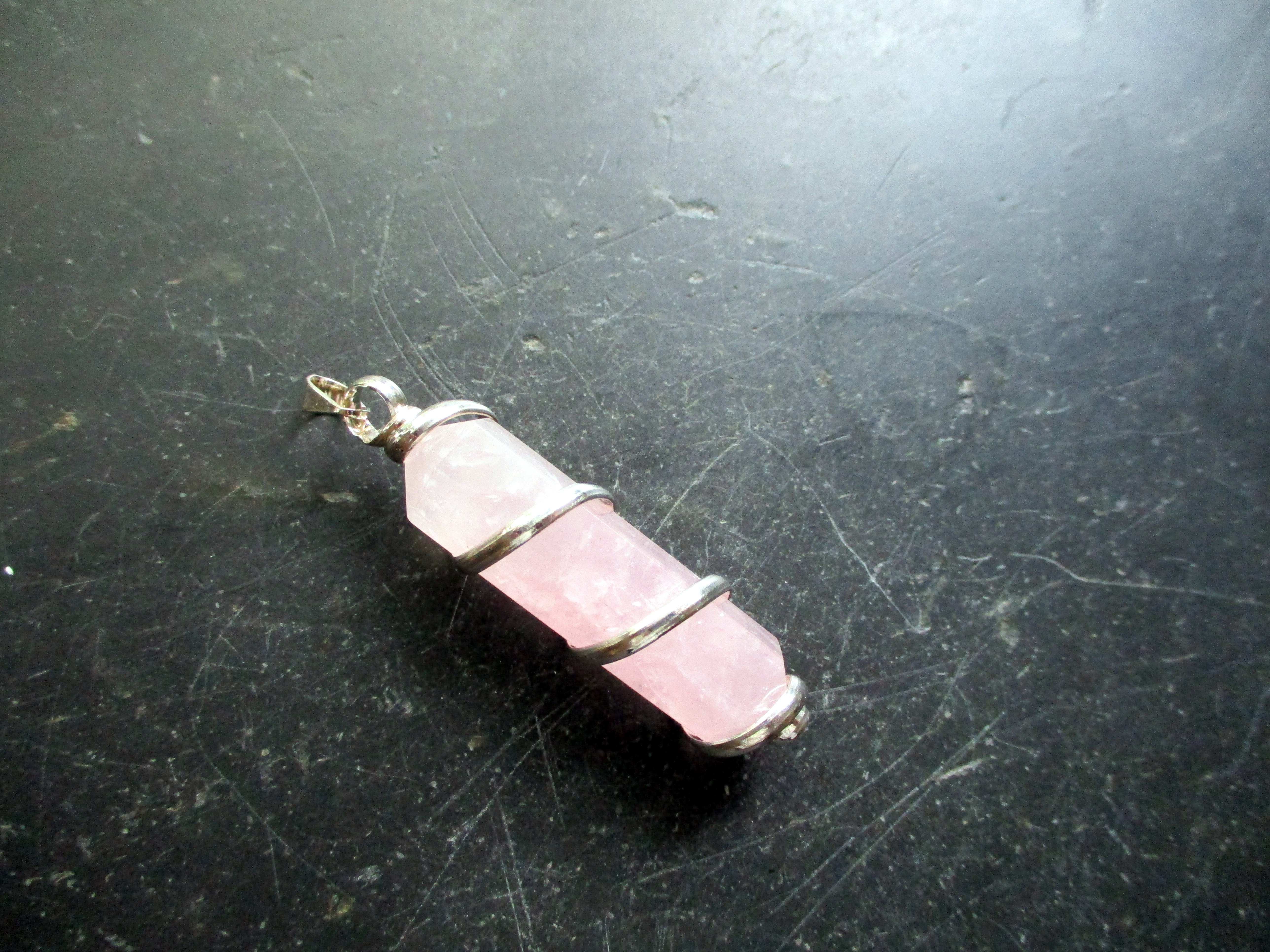 hellem Rosenquarz. Es passt an eine Silberkette oder