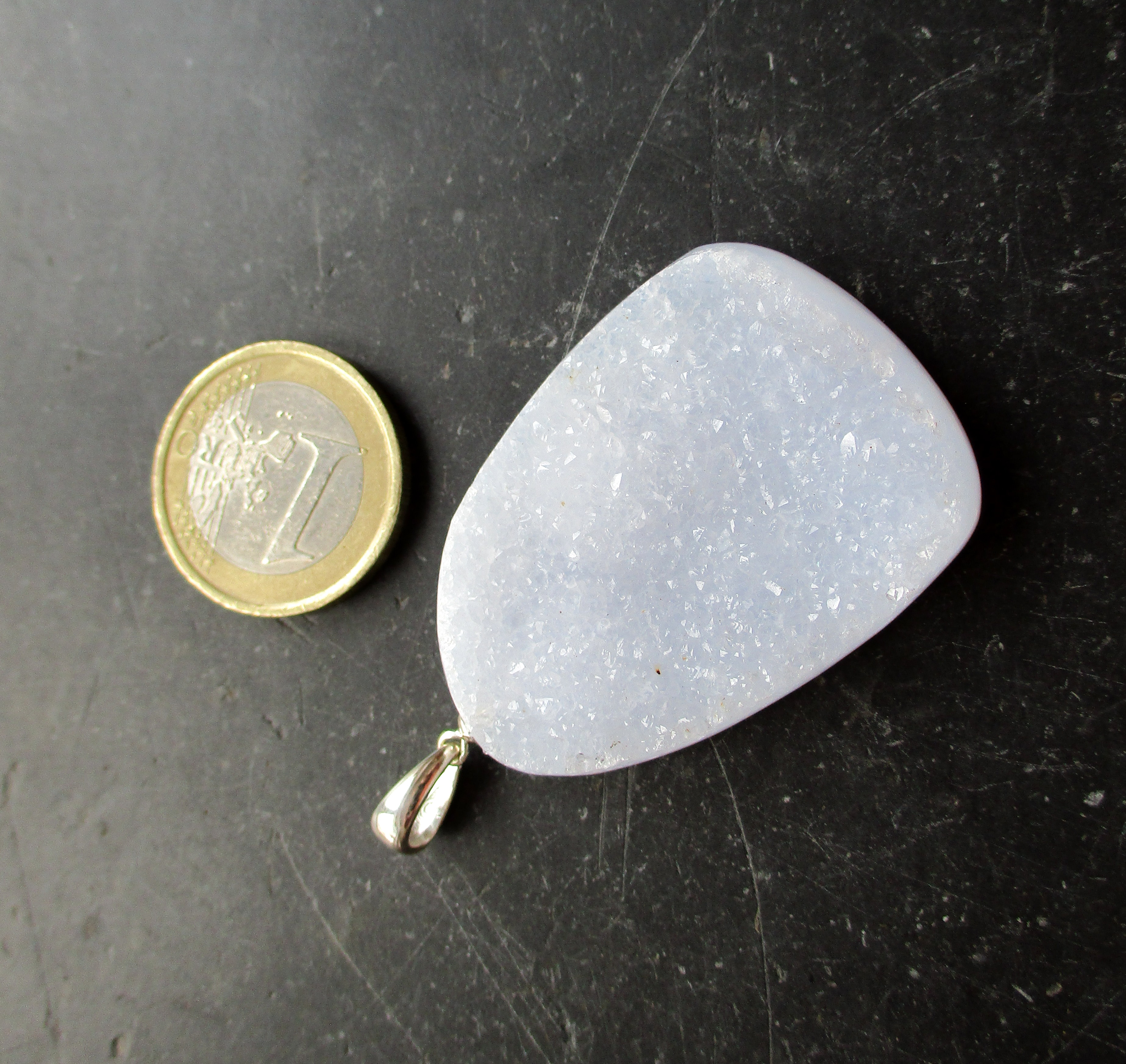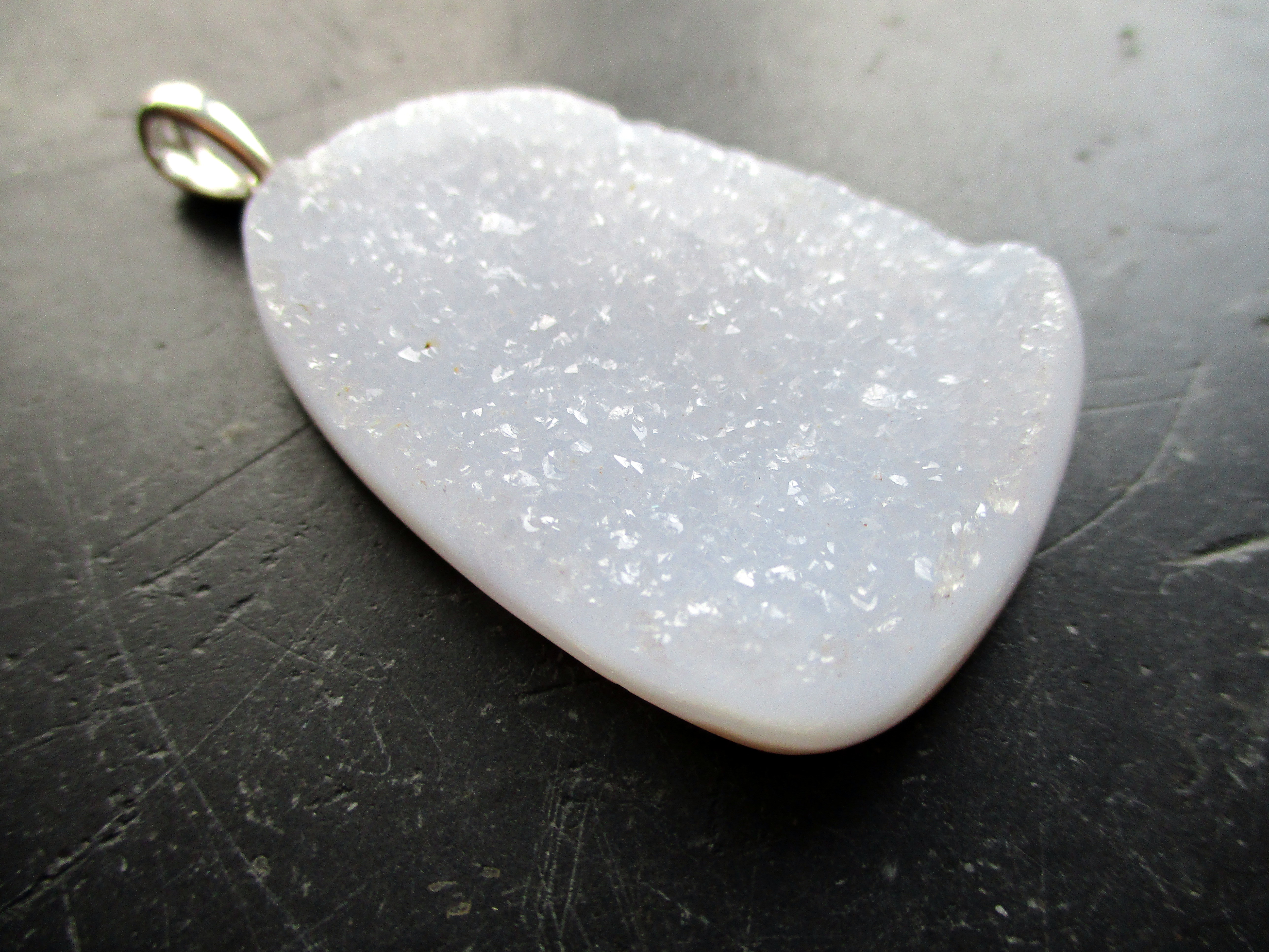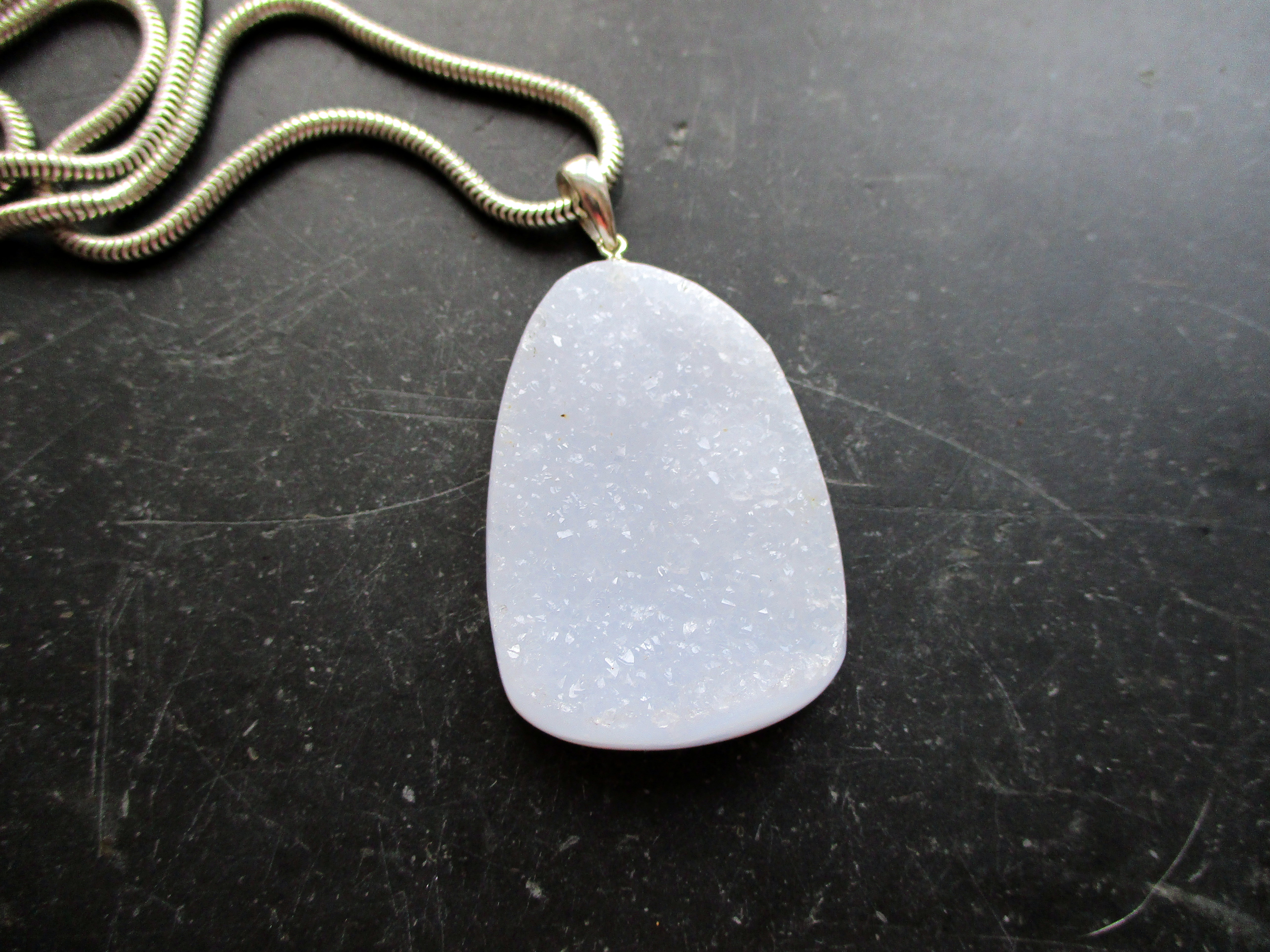 Anhänger, Chalcedon, Druse, Druzy, Sterlingsilber, hellblau, Schmuck, Unisex