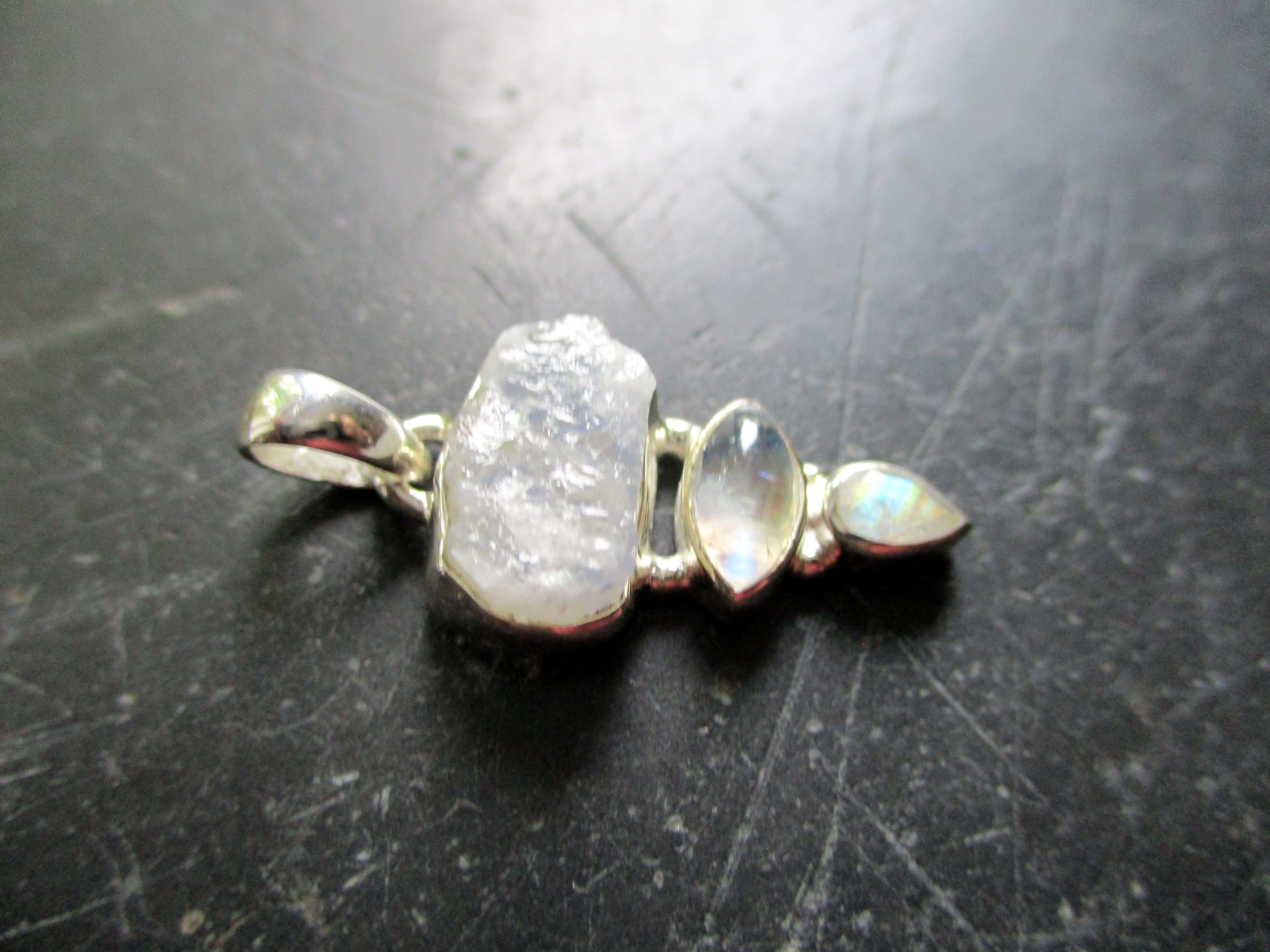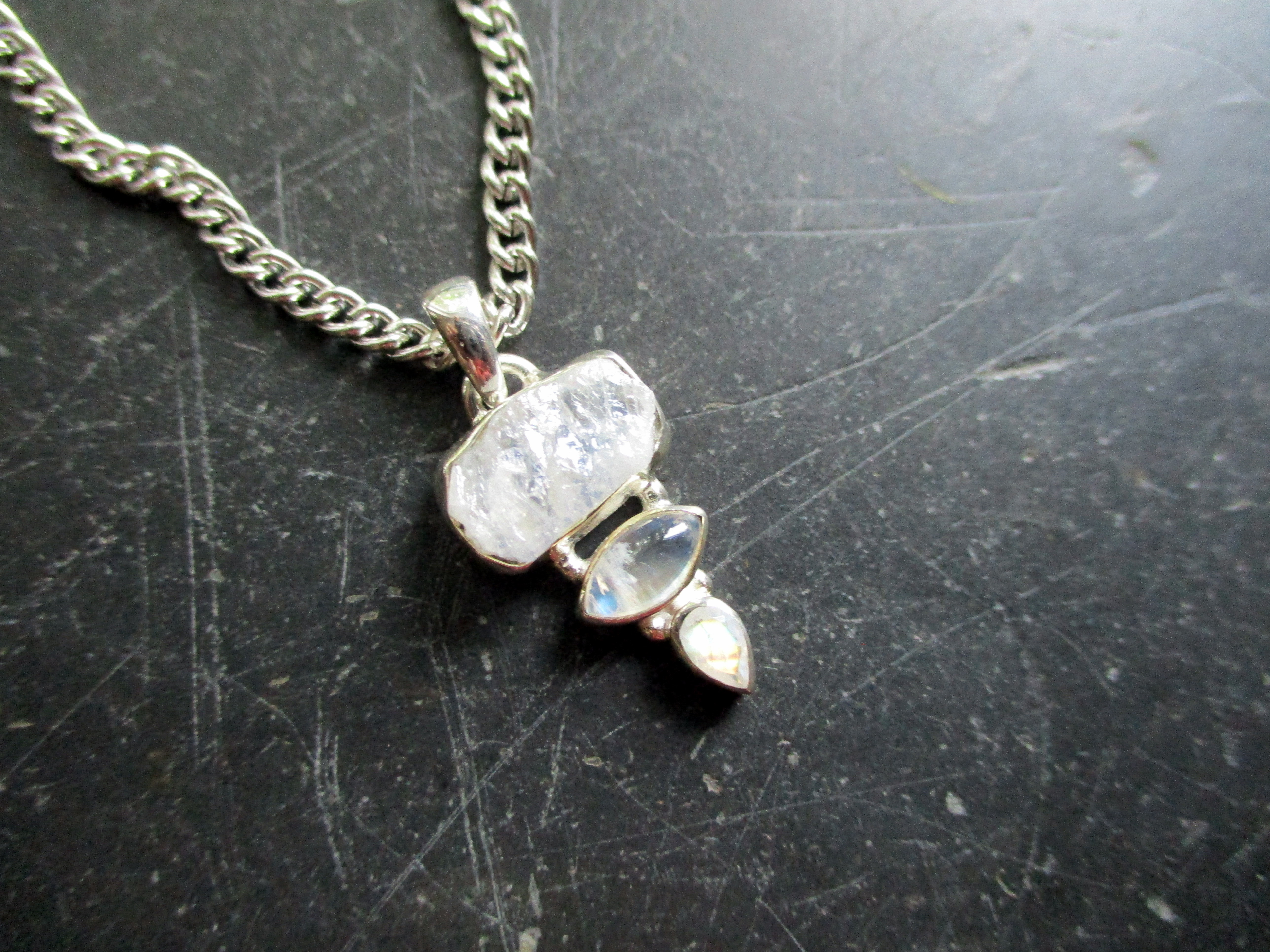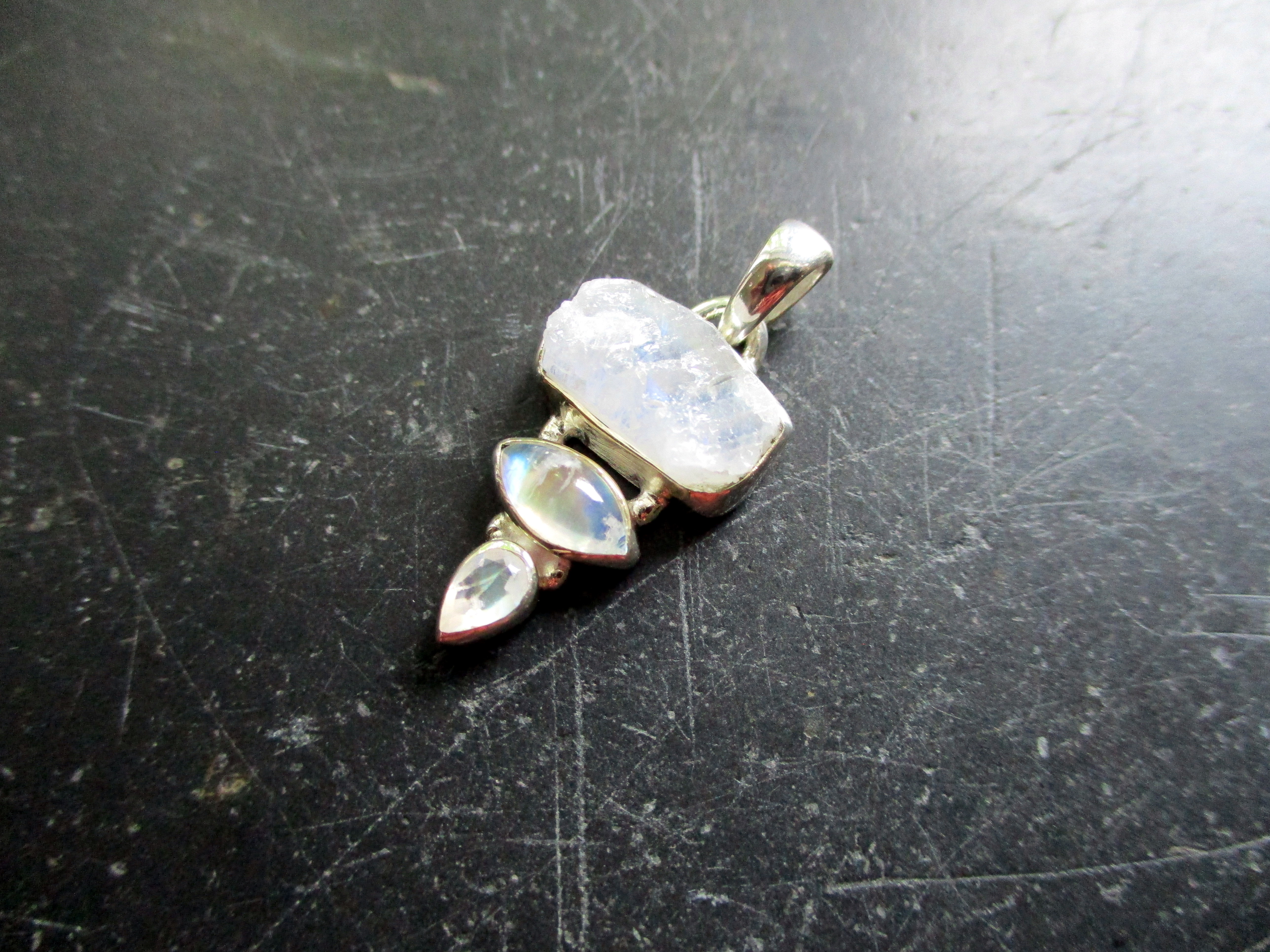 Drei Mondsteine hat dieser ausgefallene Anhänger.