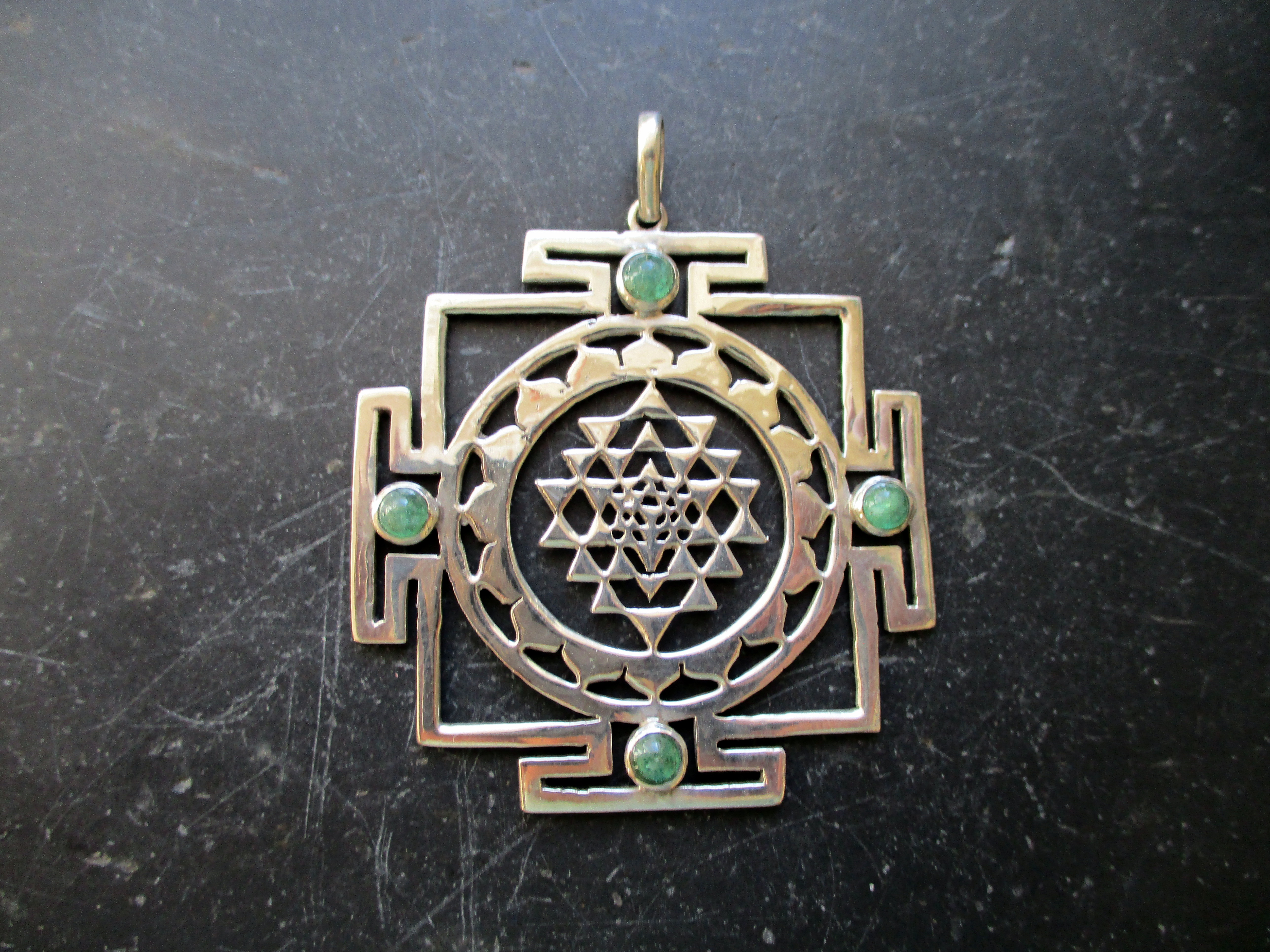 Anhänger, Yantra, Sri Yantra, Sterlingsilber, Smaragd, Esoterik, Schutz, Heilung, Indien