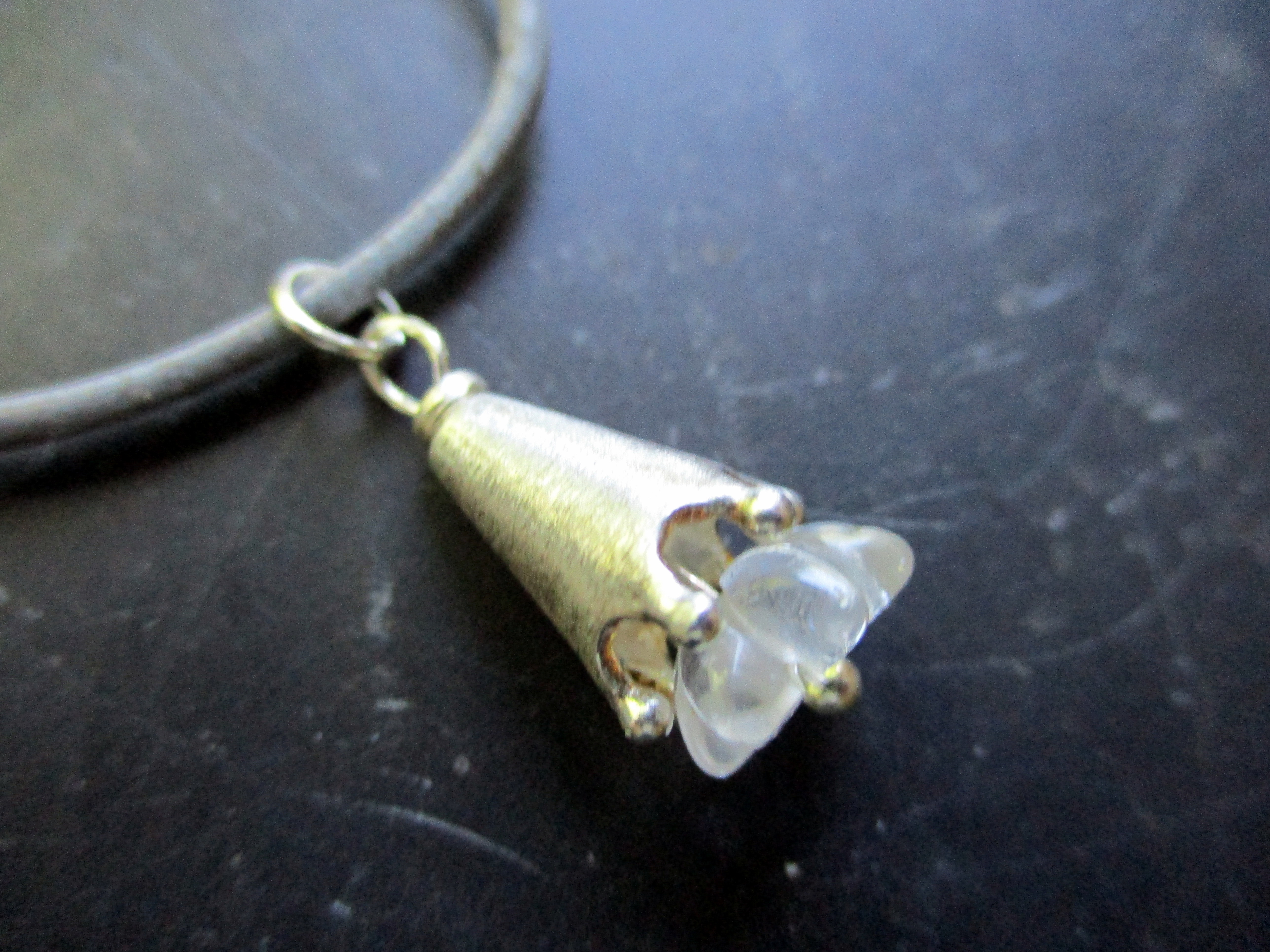 Anhänger, Sterlingsilber, Bergkristall, Blume, Krone, Schmuck, Frauen, Mädchen, Lederband