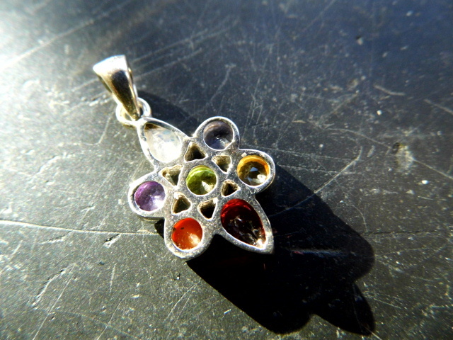 Anhänger, Sterlingsilber, Blume, Chakra, Chakrasteine, bunt, Esoterik