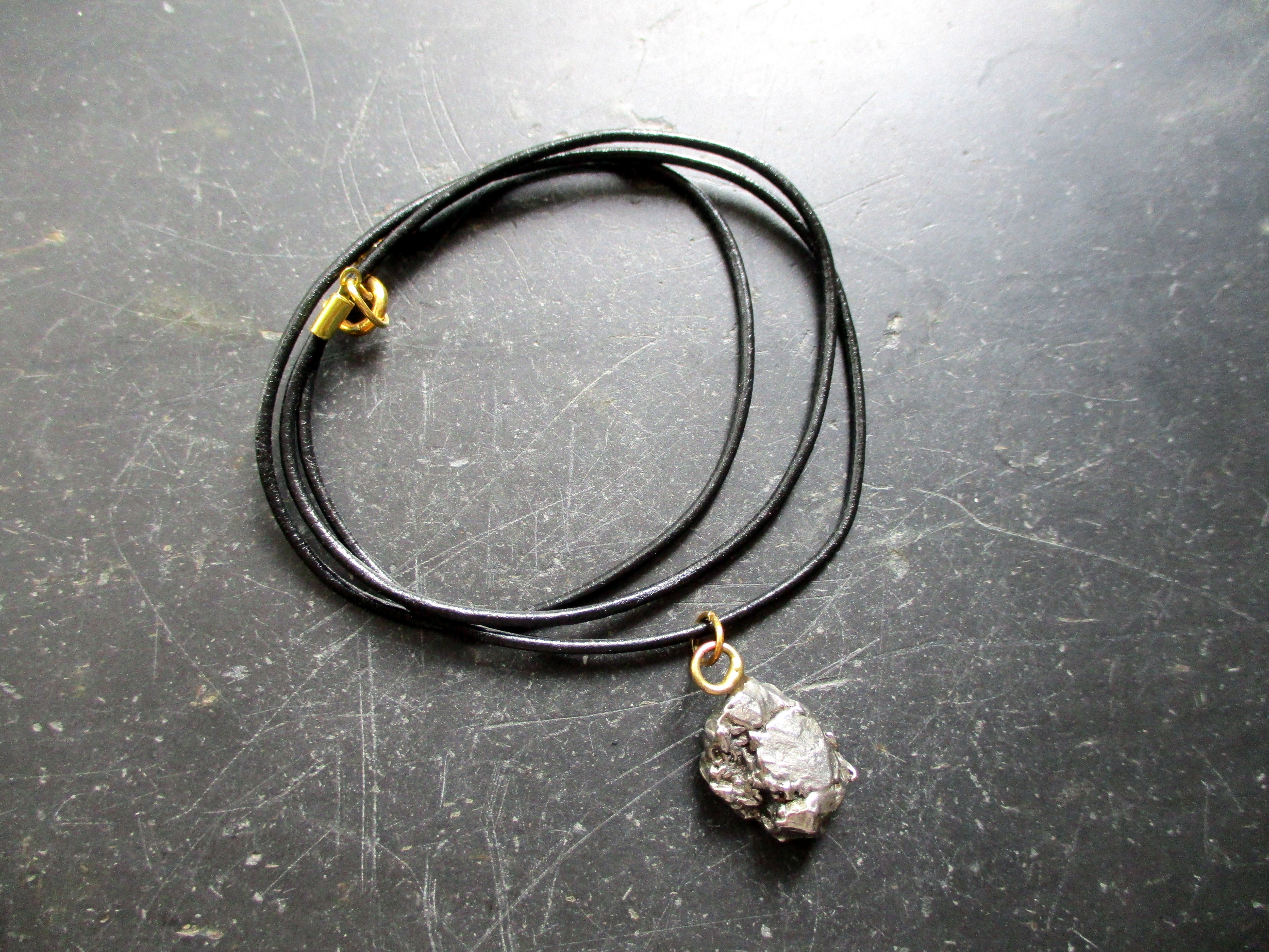 Anhänger, Meteorit, schwarz, Campo del Cielo, unbearbeitet, Unisex, Lederband