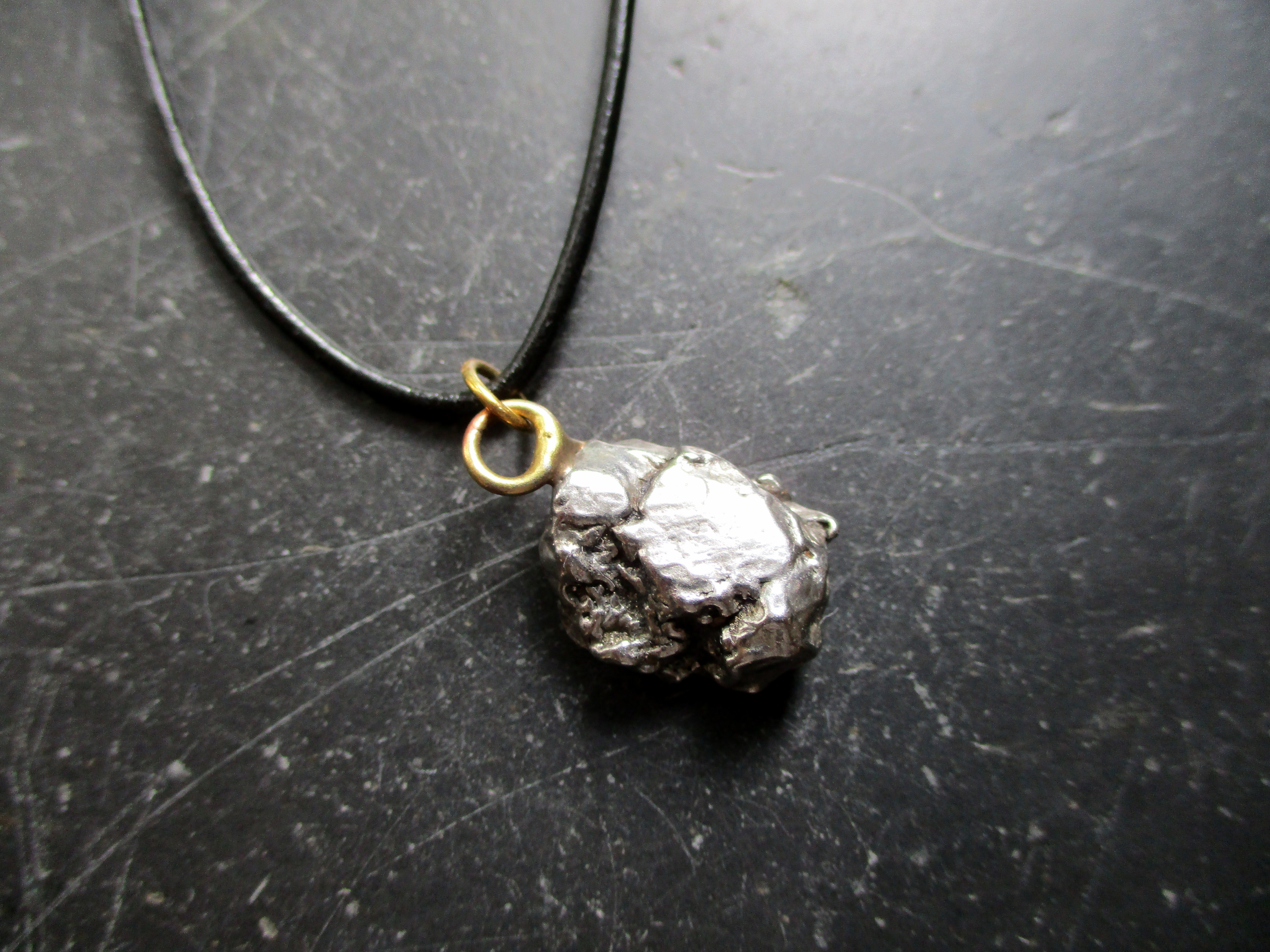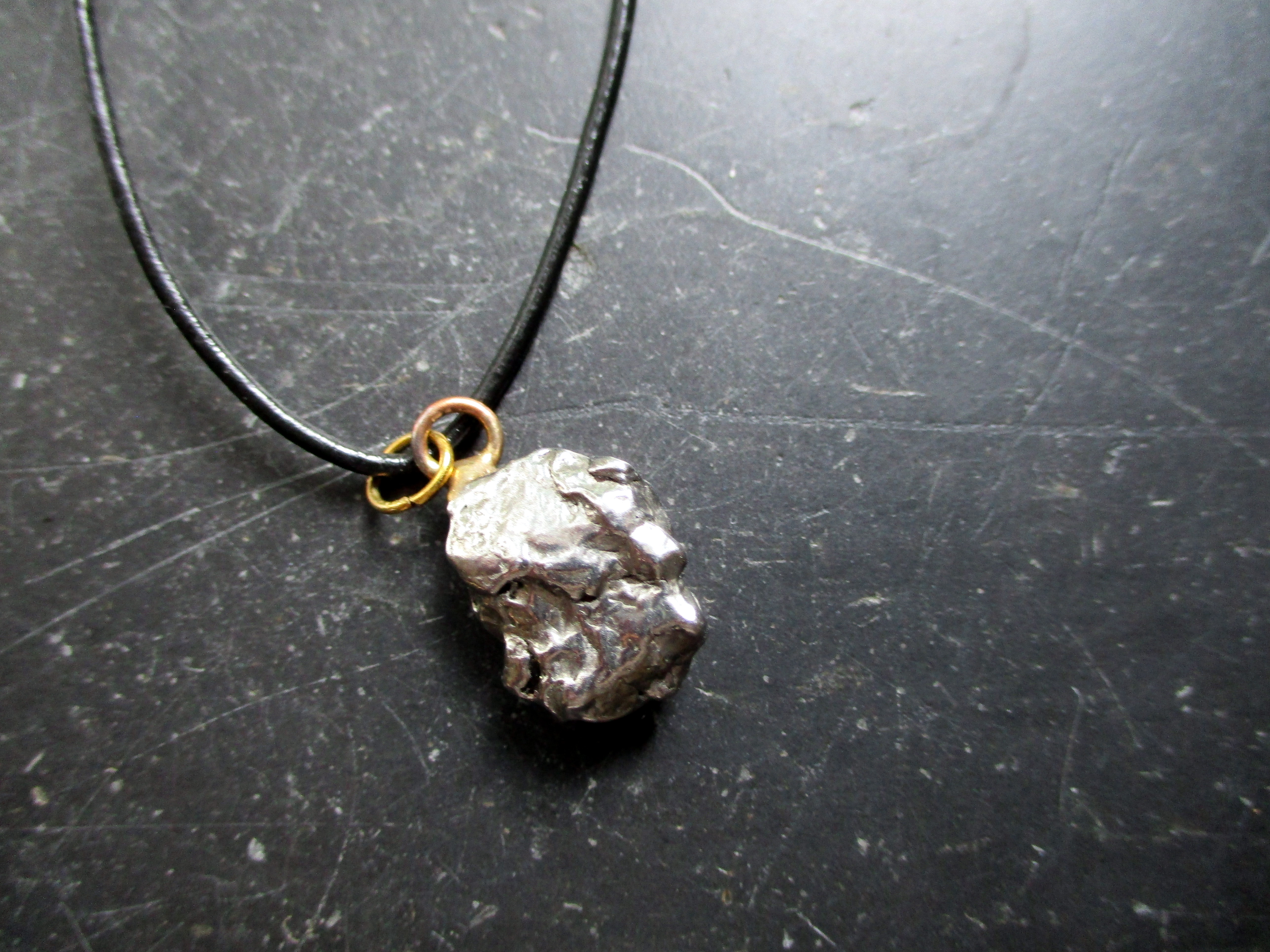 Matt schwarz glänzt dieser Anhänger aus Meteorit.