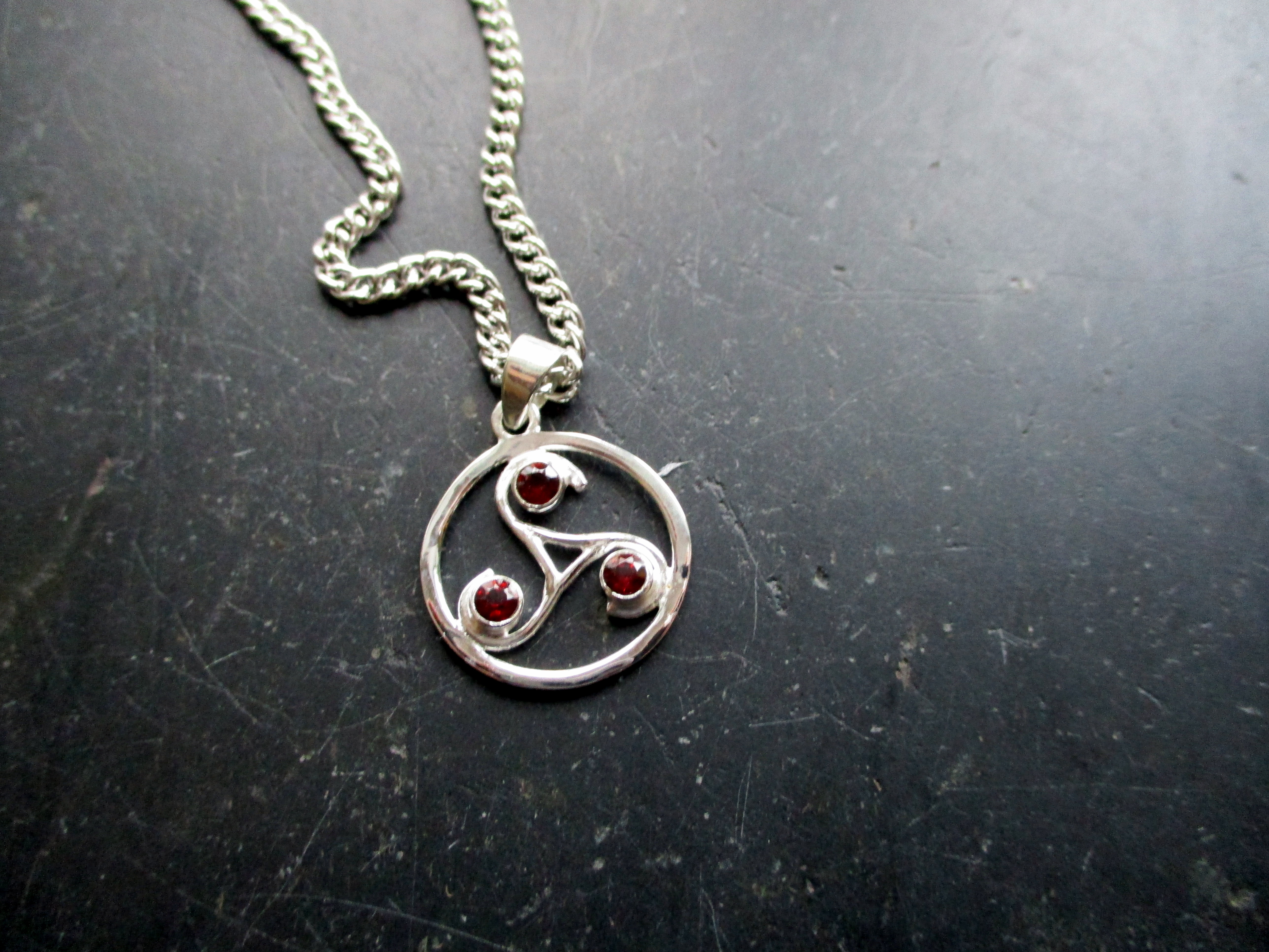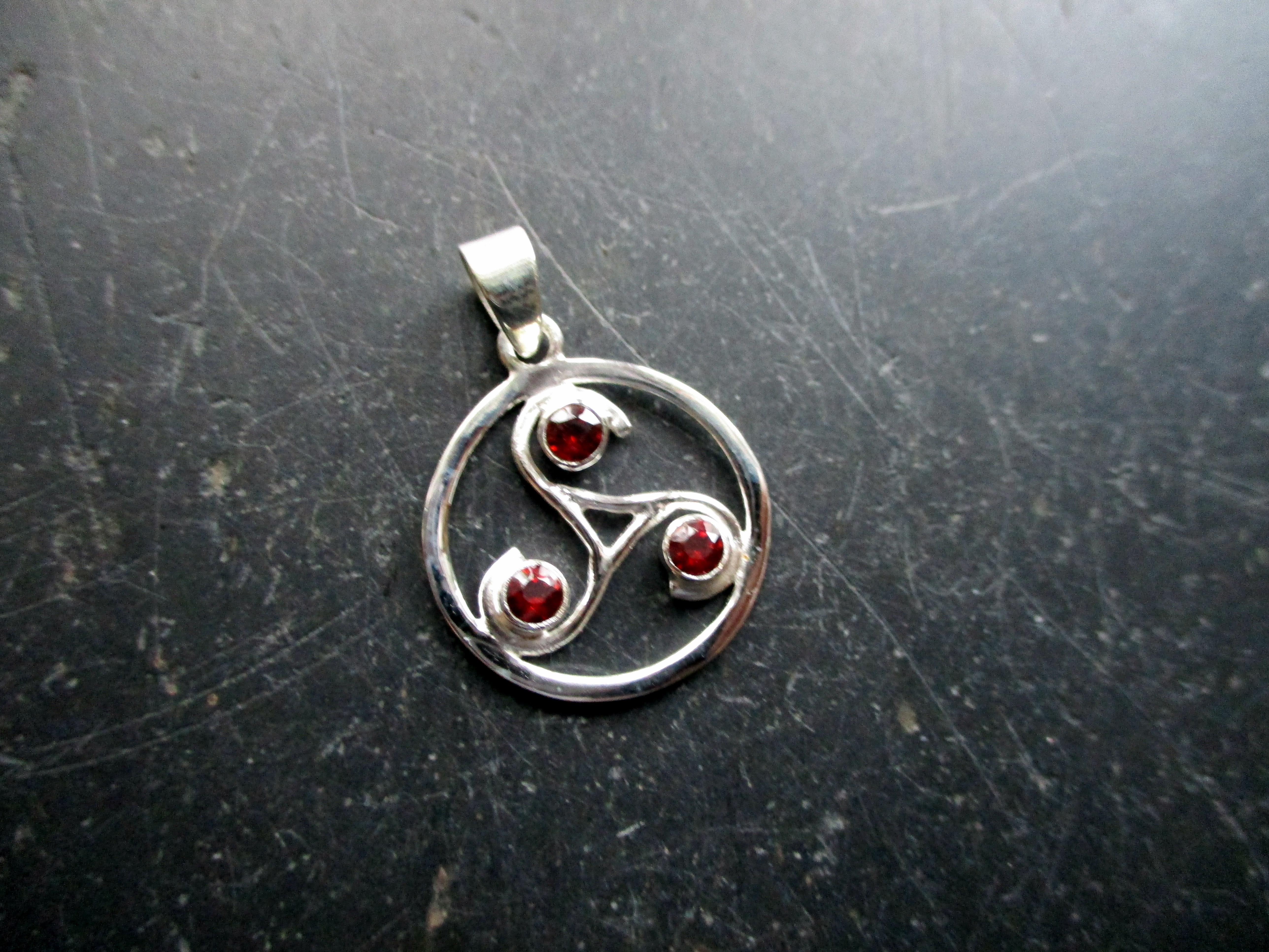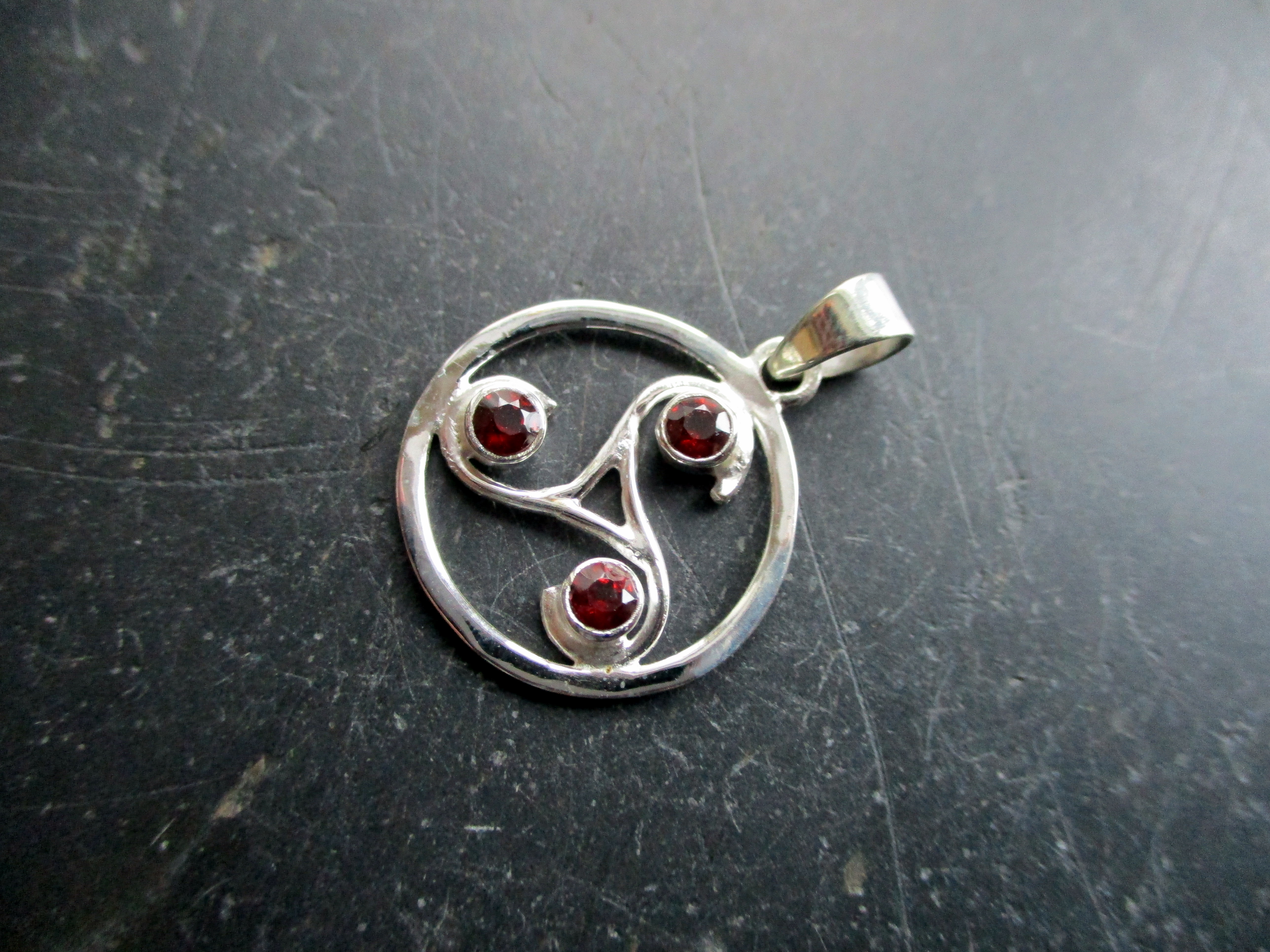 Anhänger, Triskele, im Kreis, Granat, Sterlingsilber, keltisch, Unisex