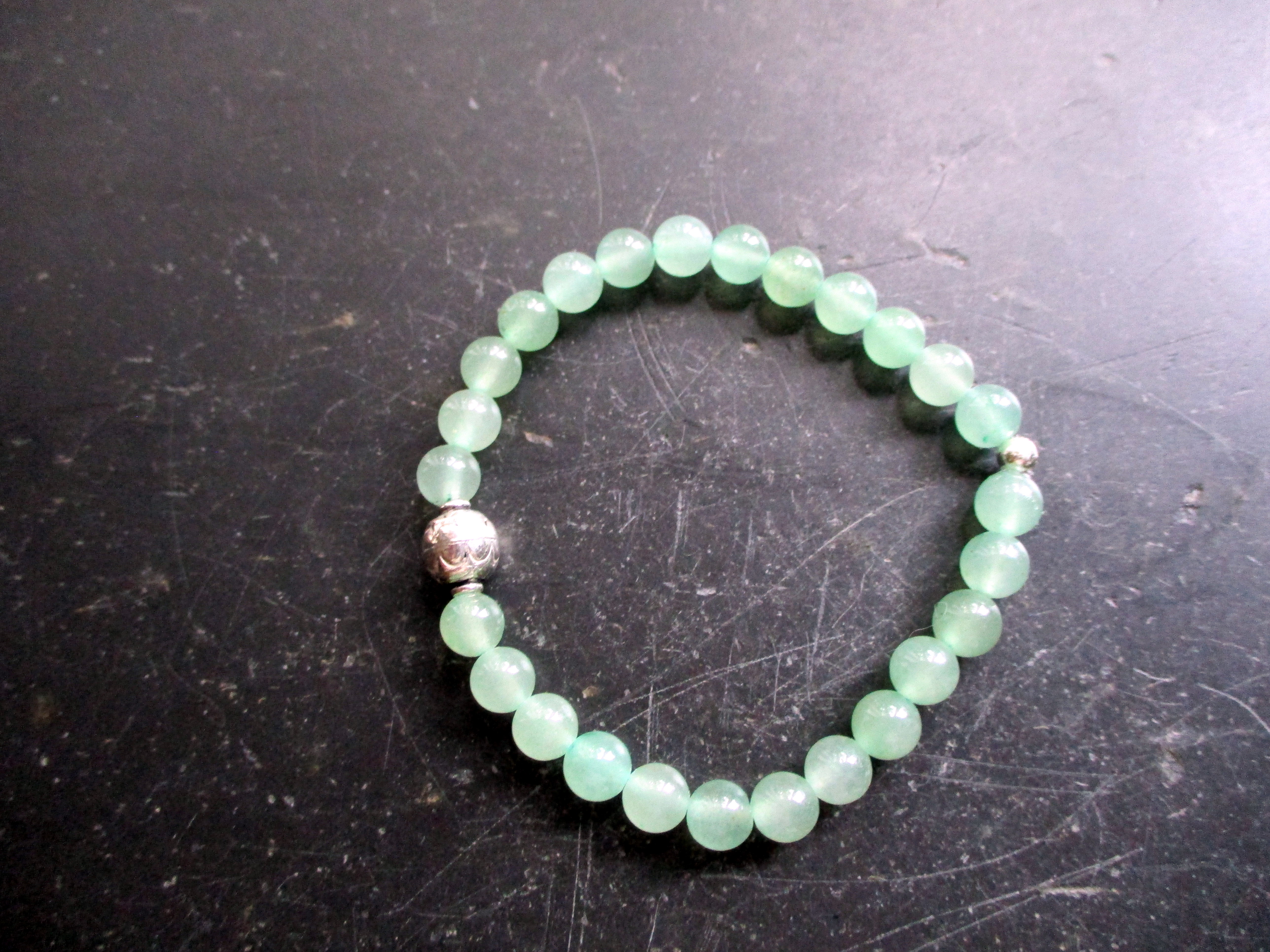 Armband aus grünen Aventurin Kugeln eigearbeitet.