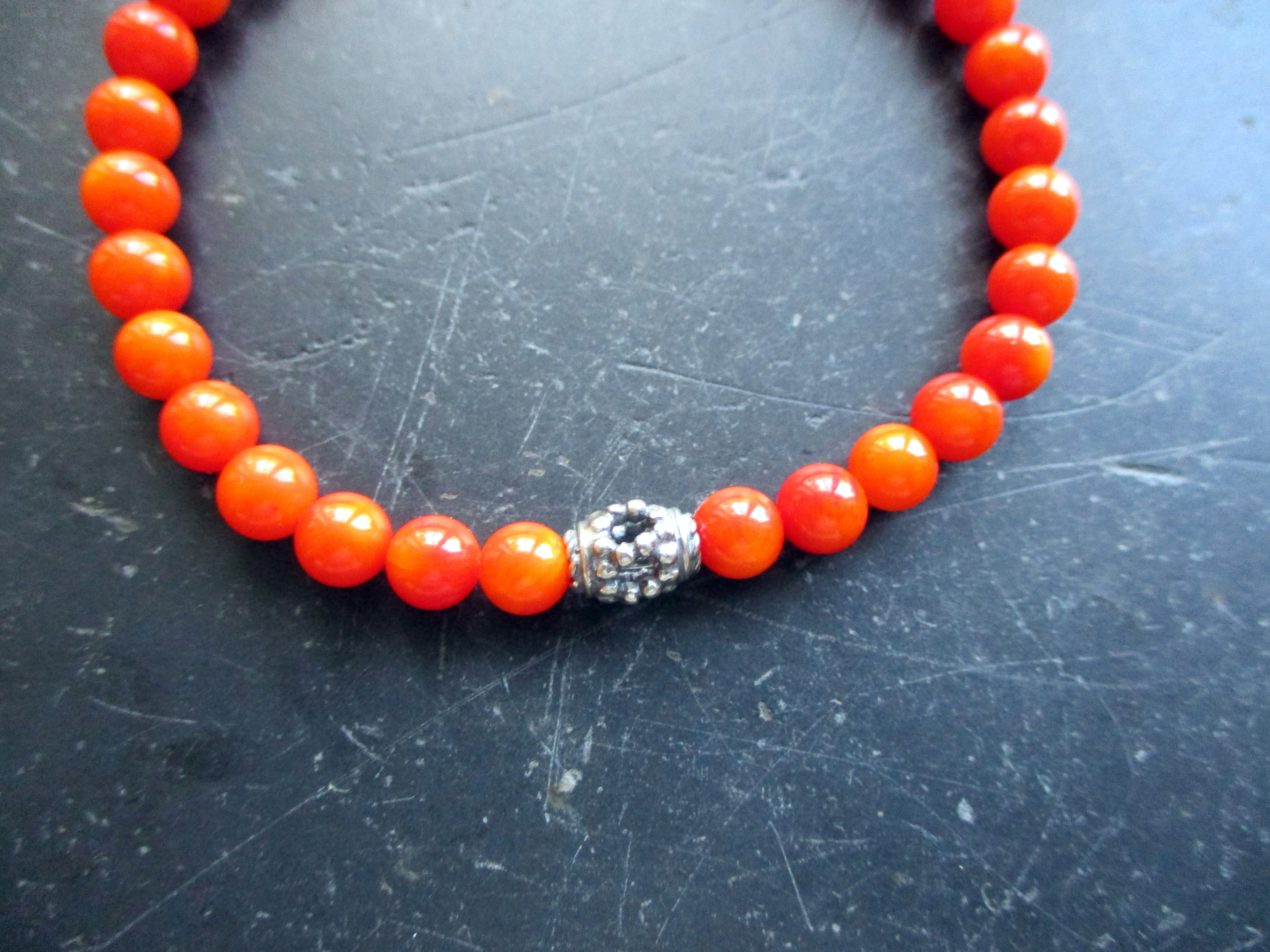 Auf elastischem Gummi aufgezogene kleine Kugeln aus Koralle