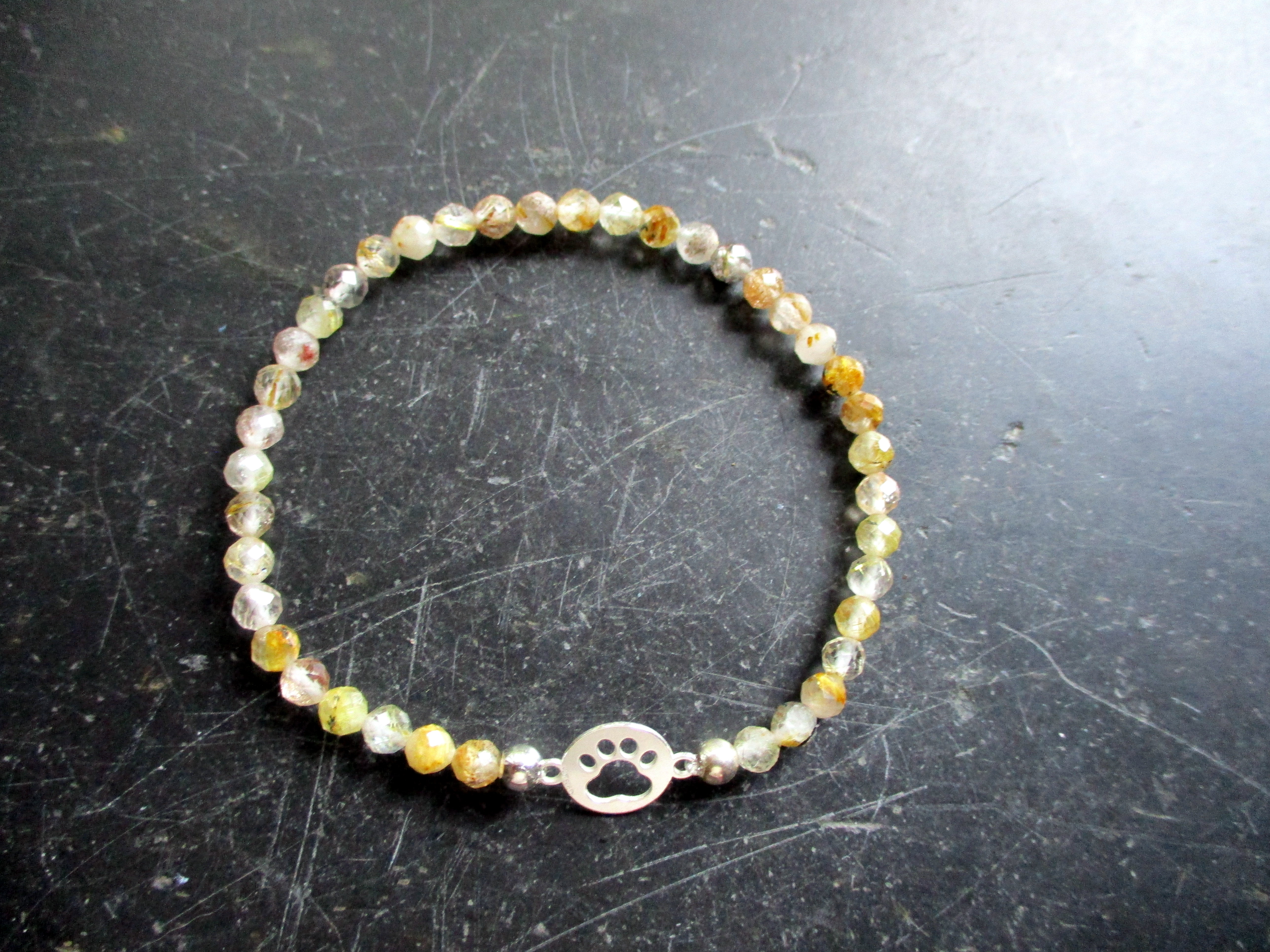 Armband, Rutilquarz, beige, Silber, Pfote, Schmuck, Symbolarmband