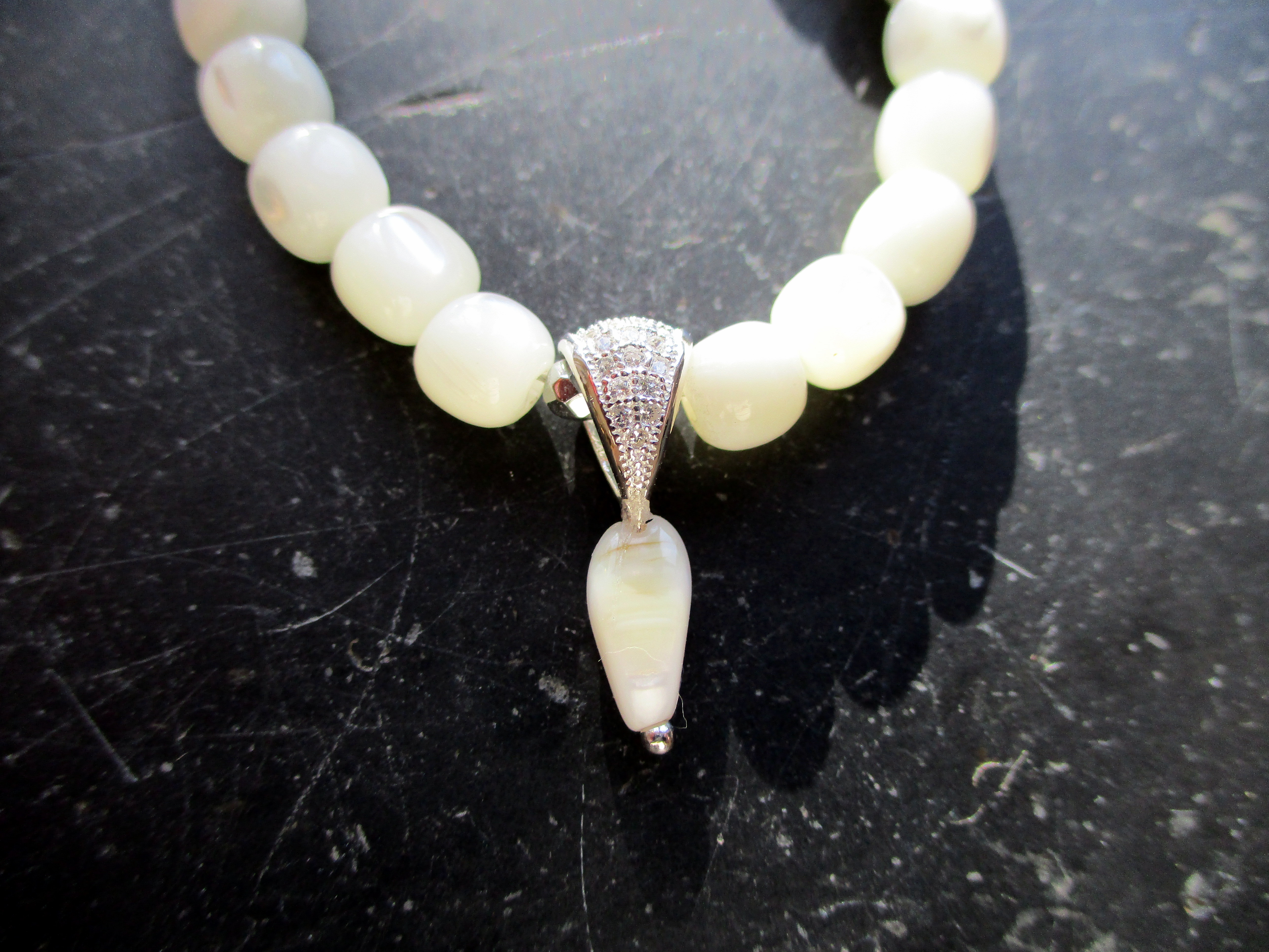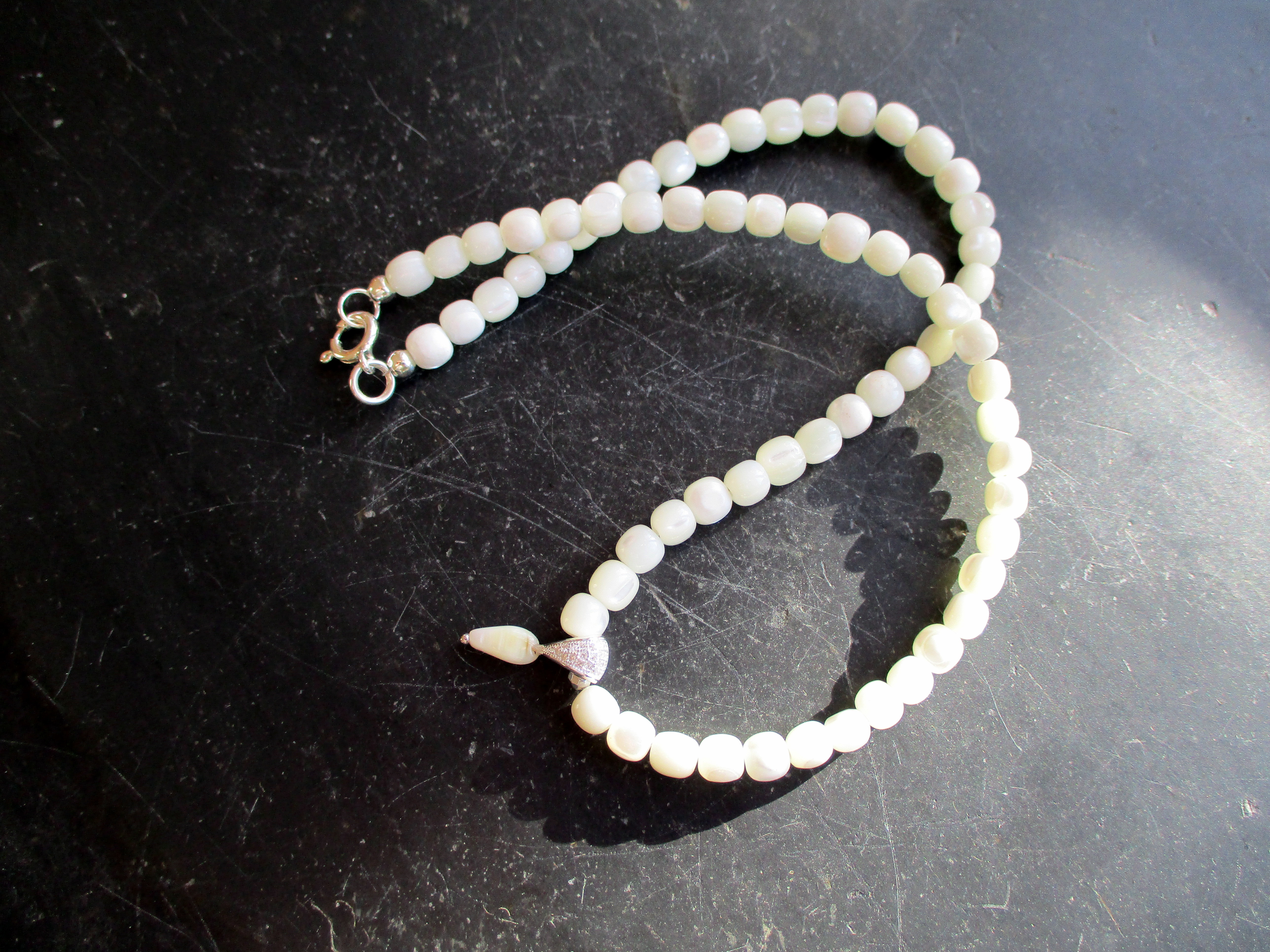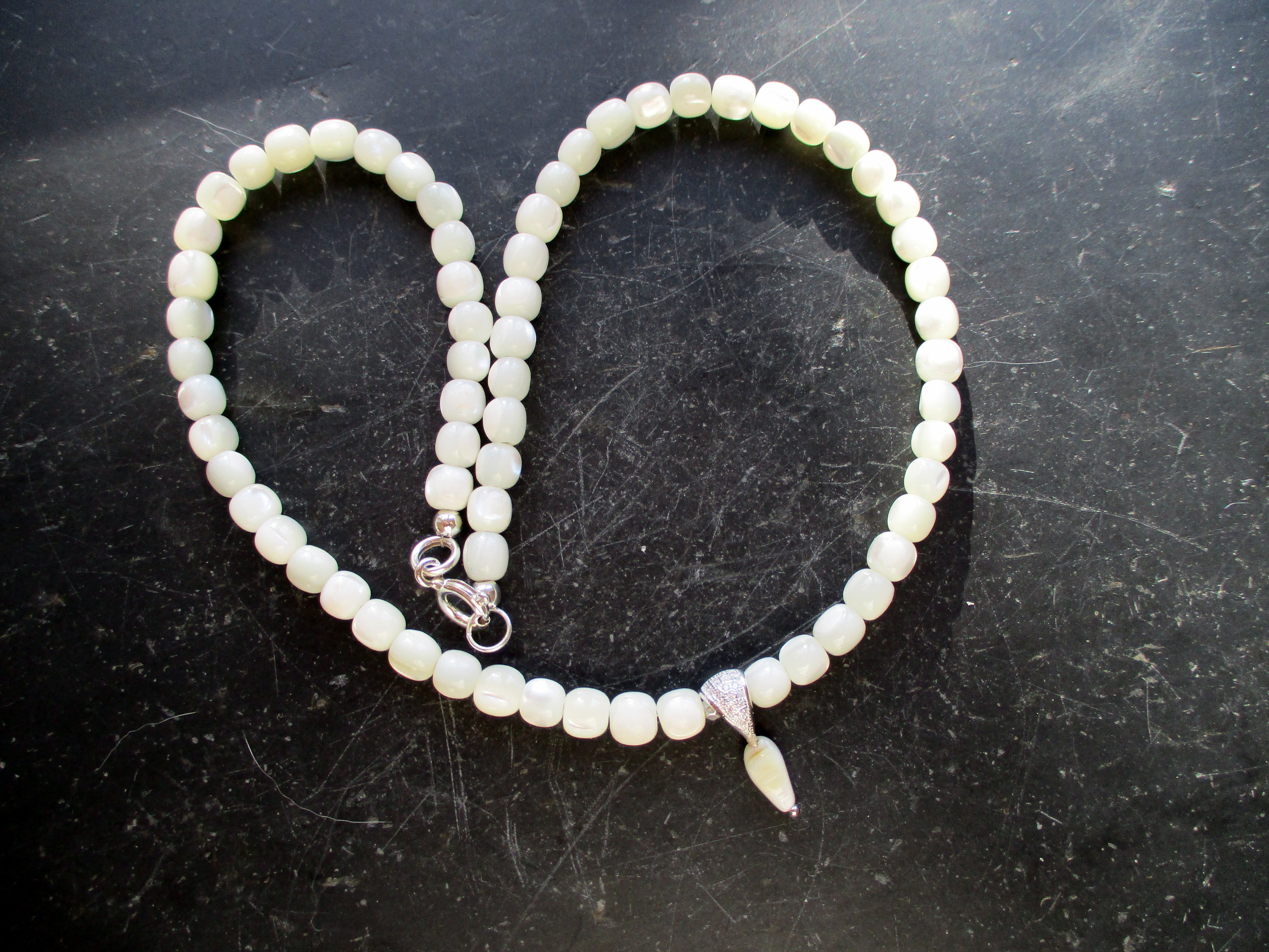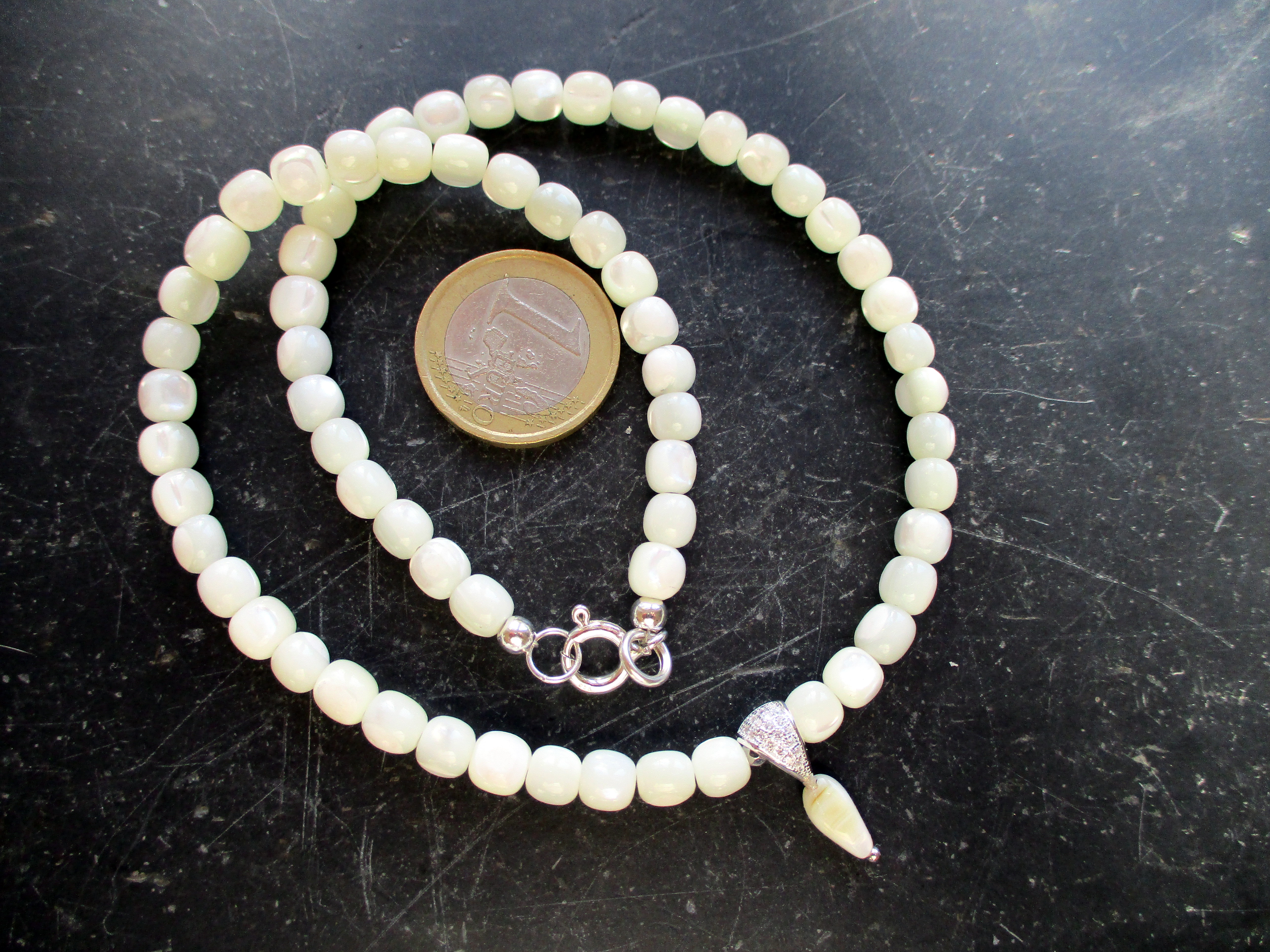 Schlicht und doch elegant ist diese Kette aus Perlmutt,