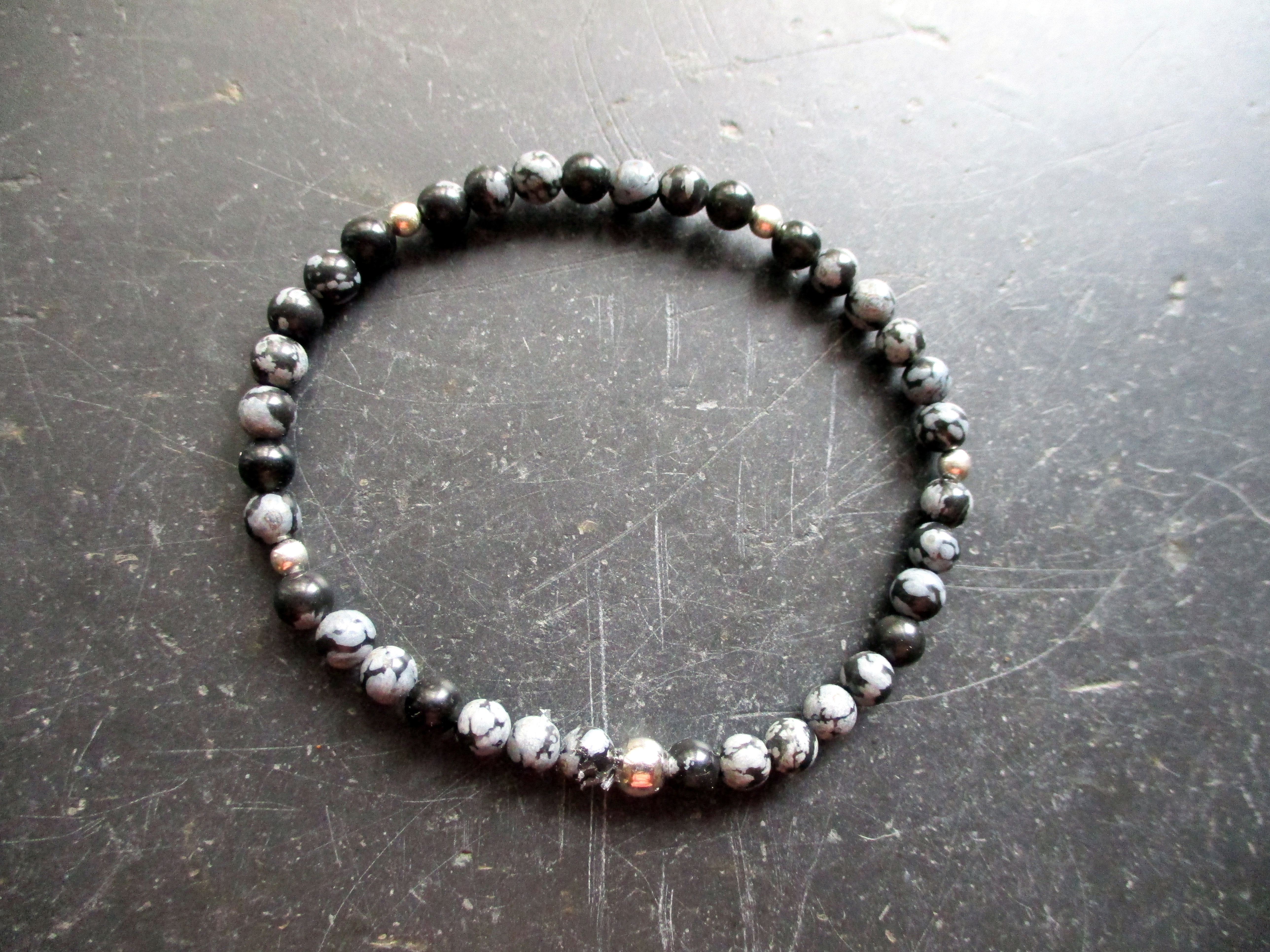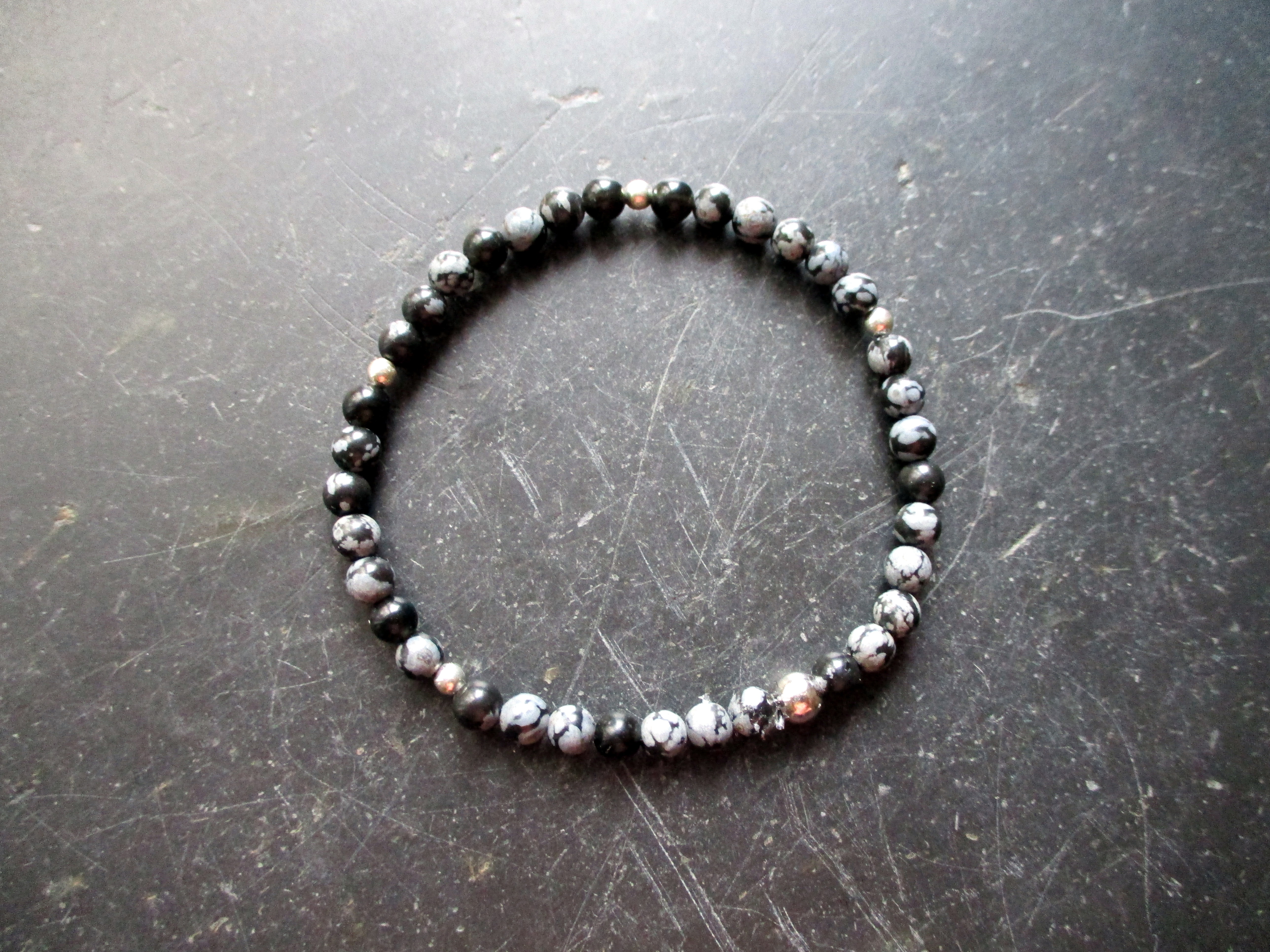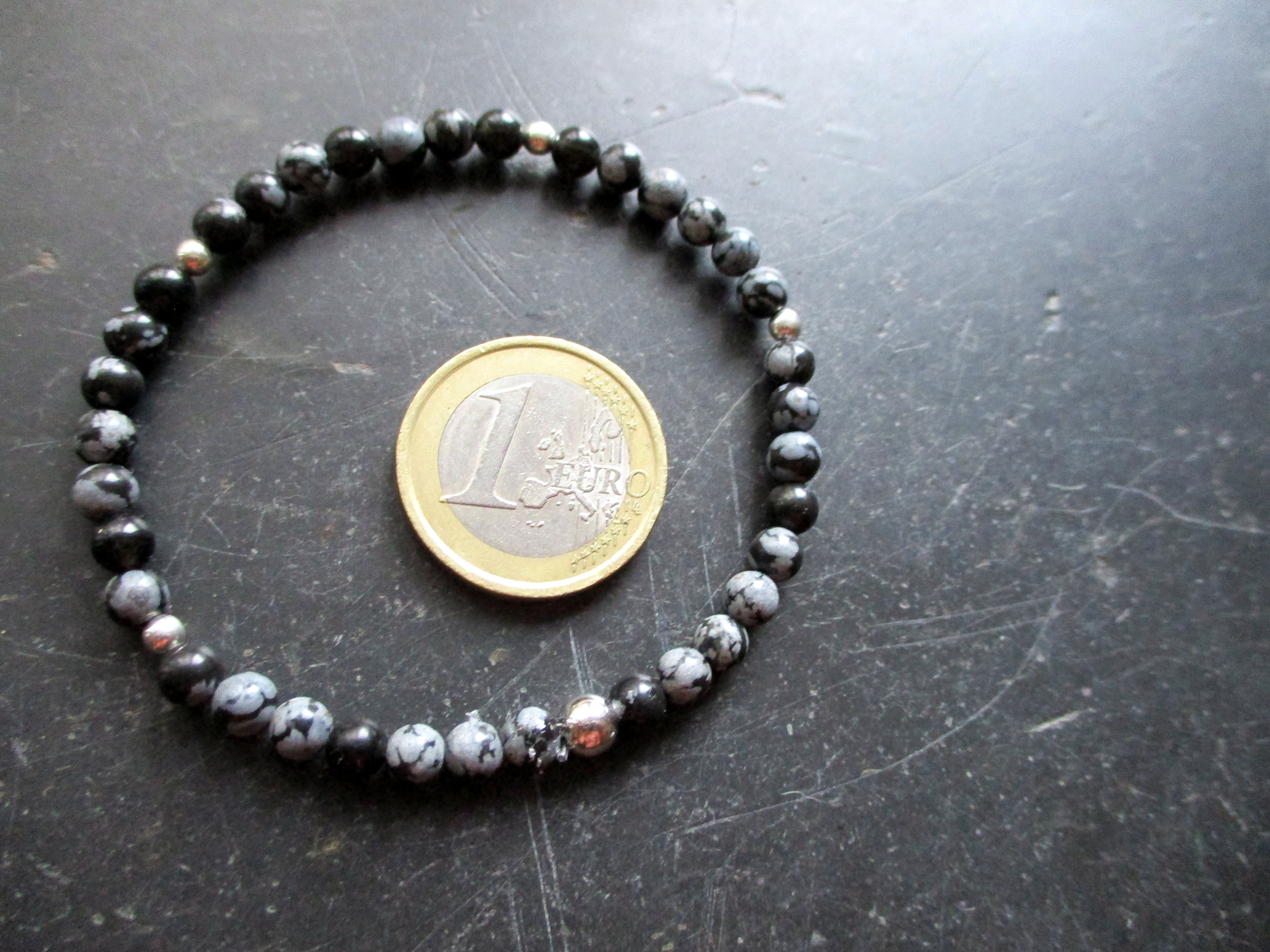 Armband, Obsidian, Schneeflockenobsidian, schwarz, weiß, Silber