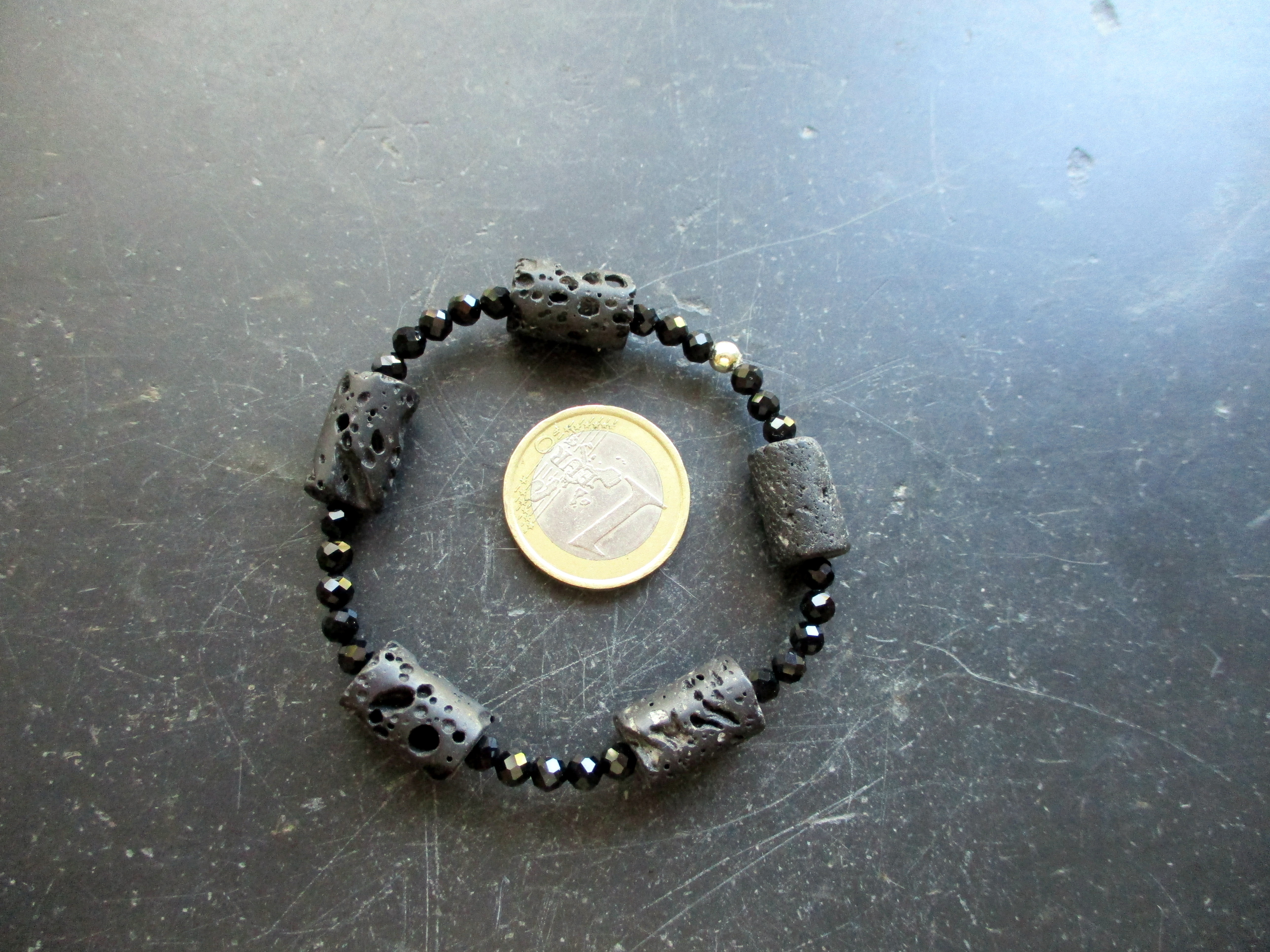 schwarzer Lava. Aufgezogen ist das Armband auf Gummi.