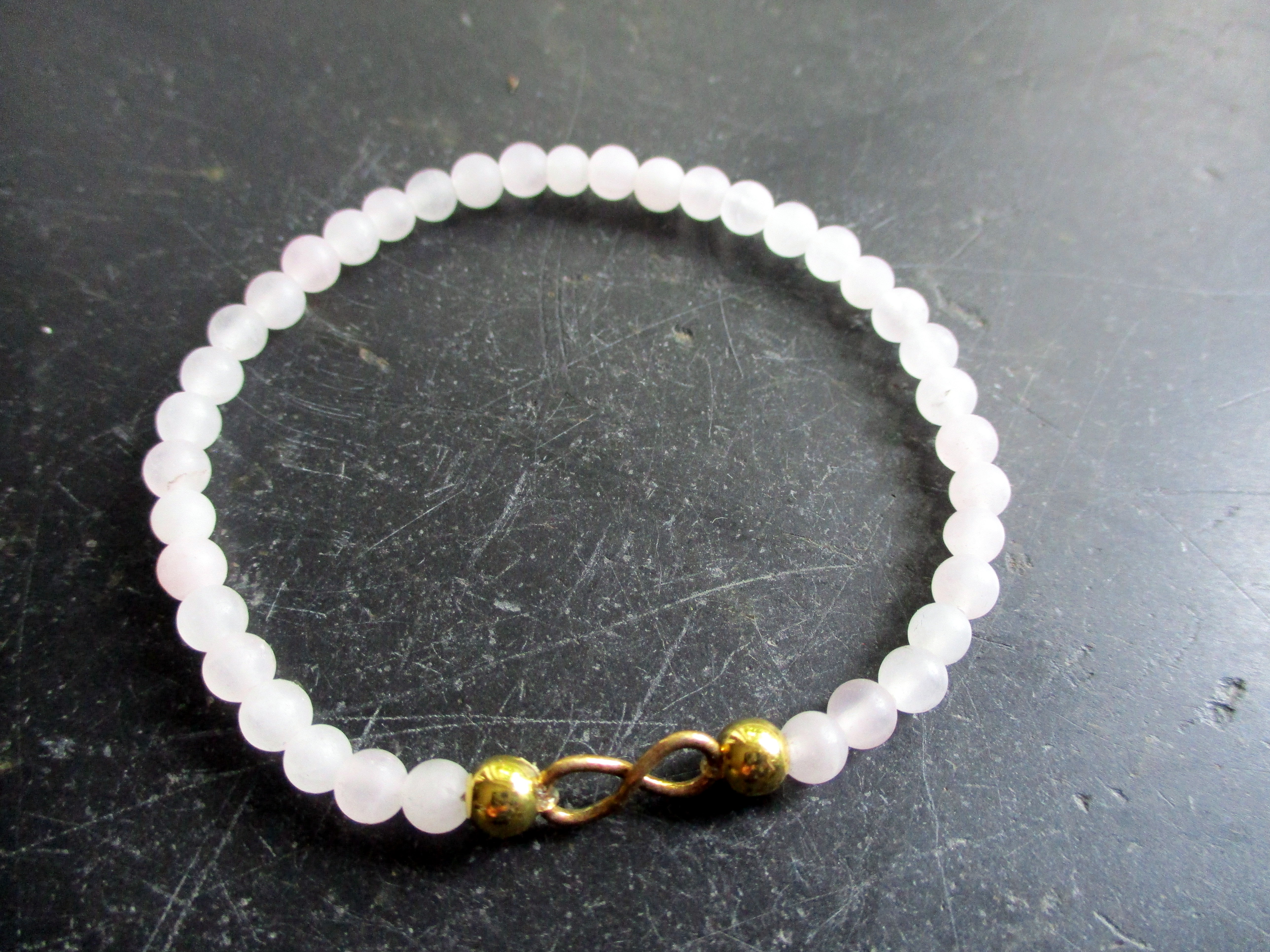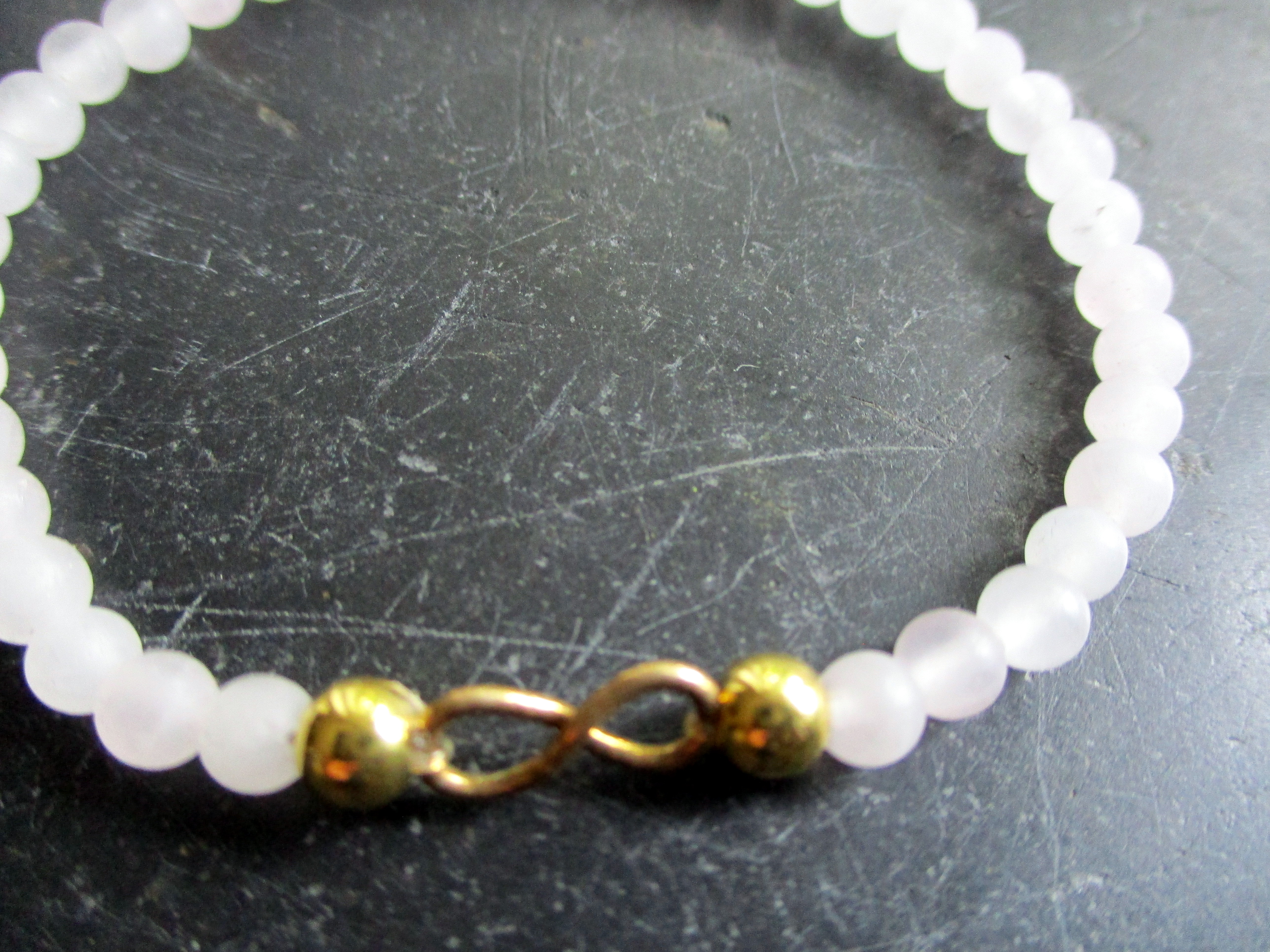 Armband, Rosenquarz,matt, Infinity, Silber, vergoldet, Symbolarmband