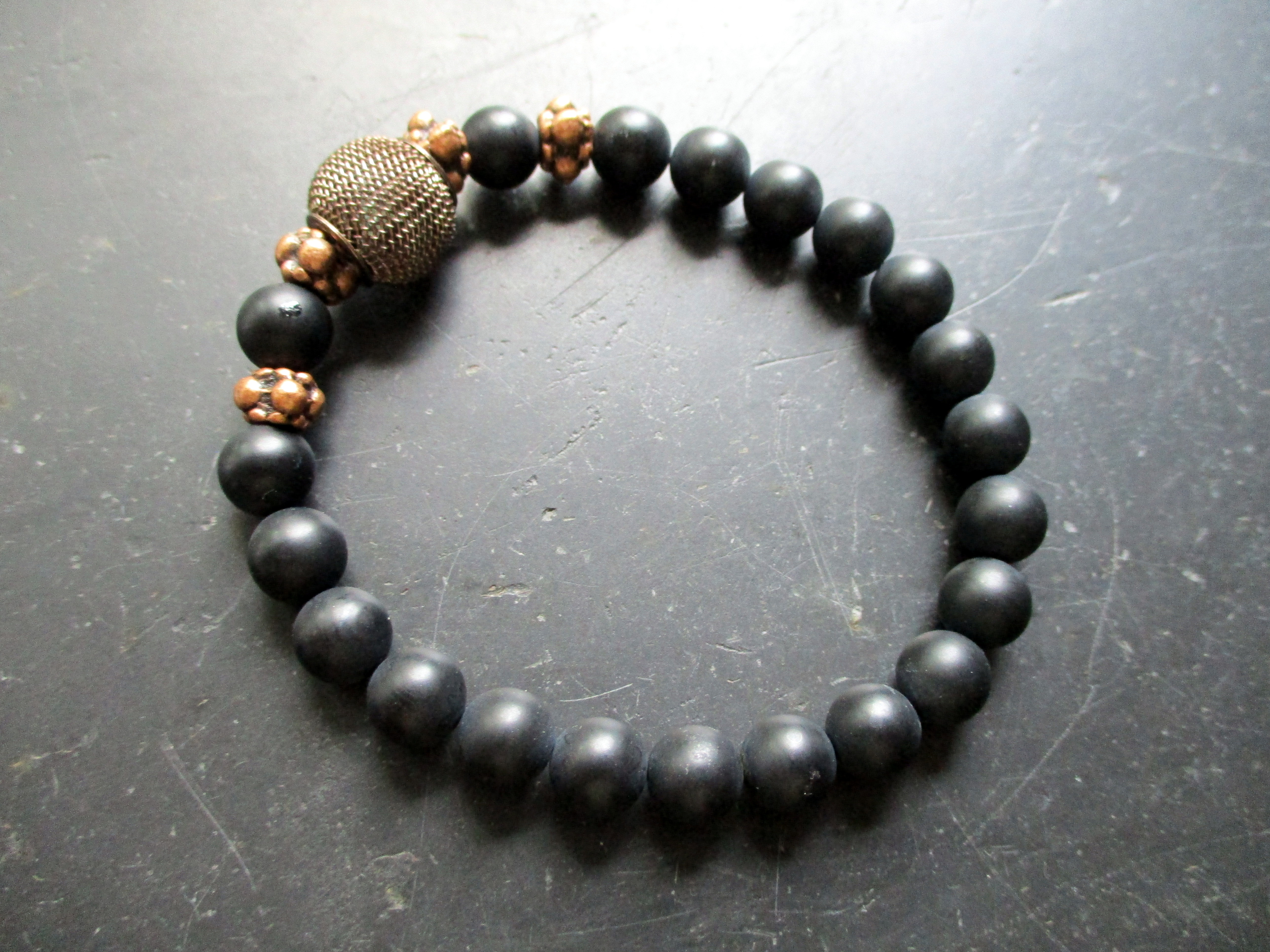 Armband, Onyx, schwarz, Drahtkugel, Messing, Schmuck, Männer
