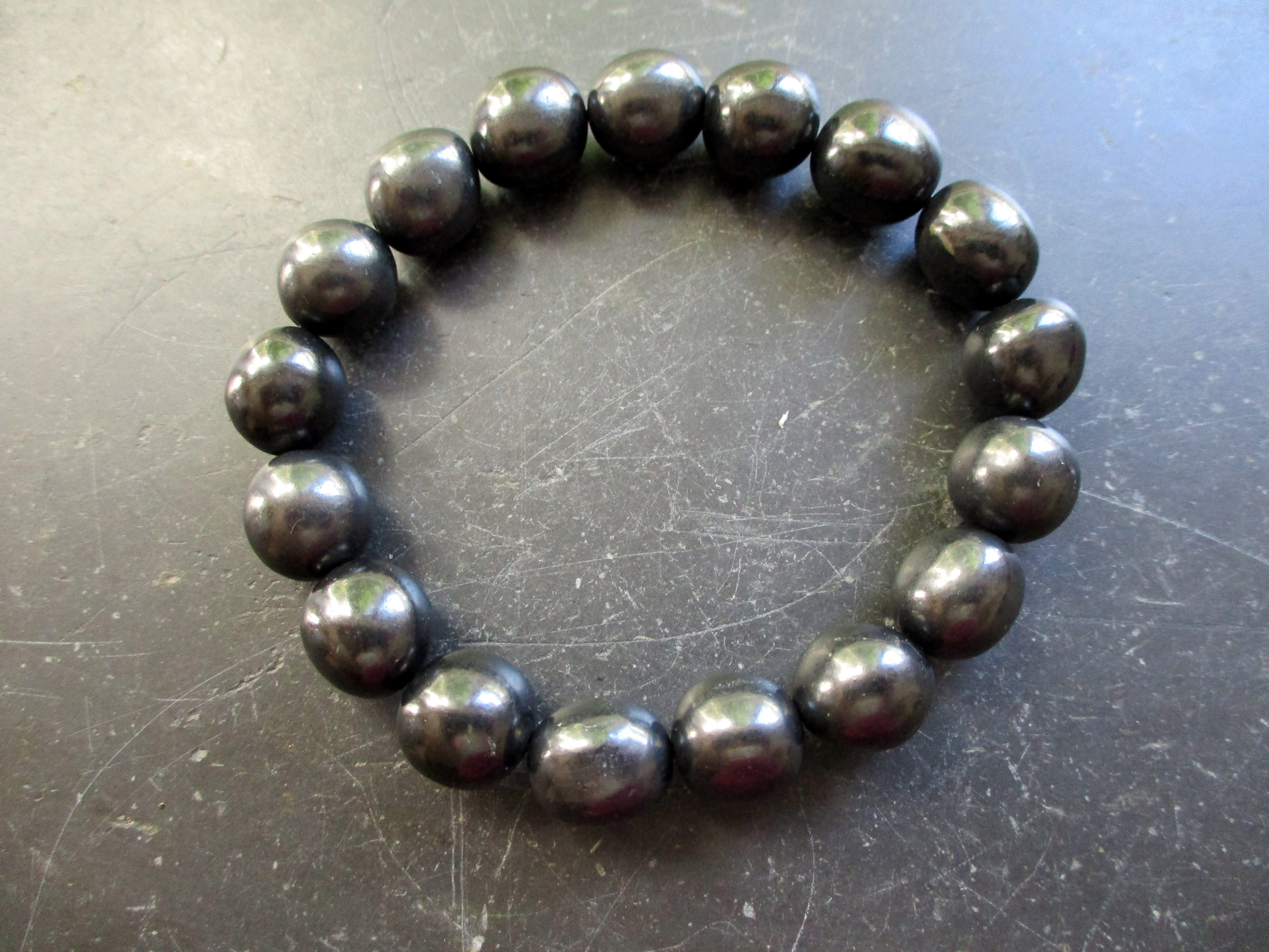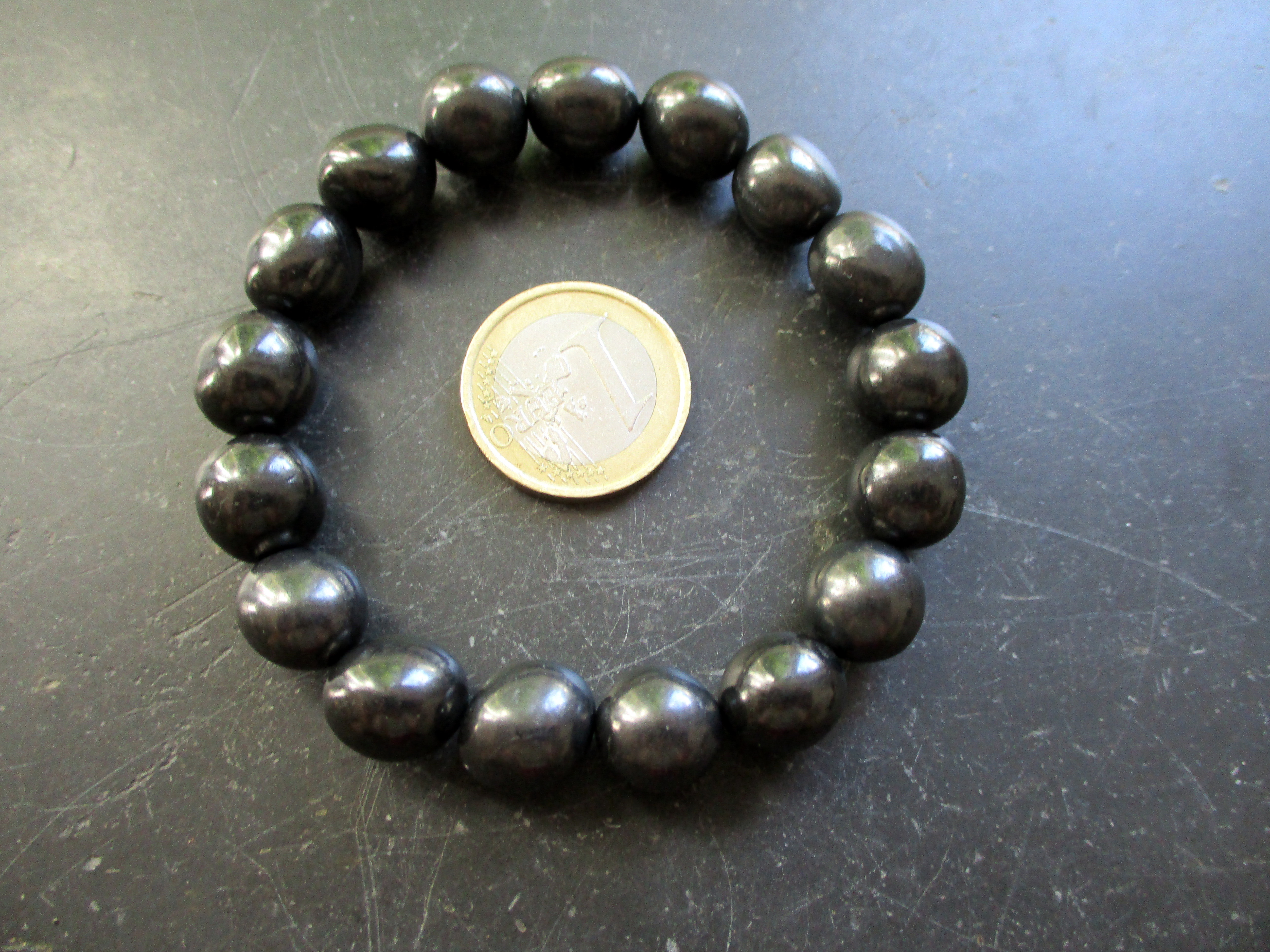 Dieses Armband aus Schungit ist auf elastischem Gummi
