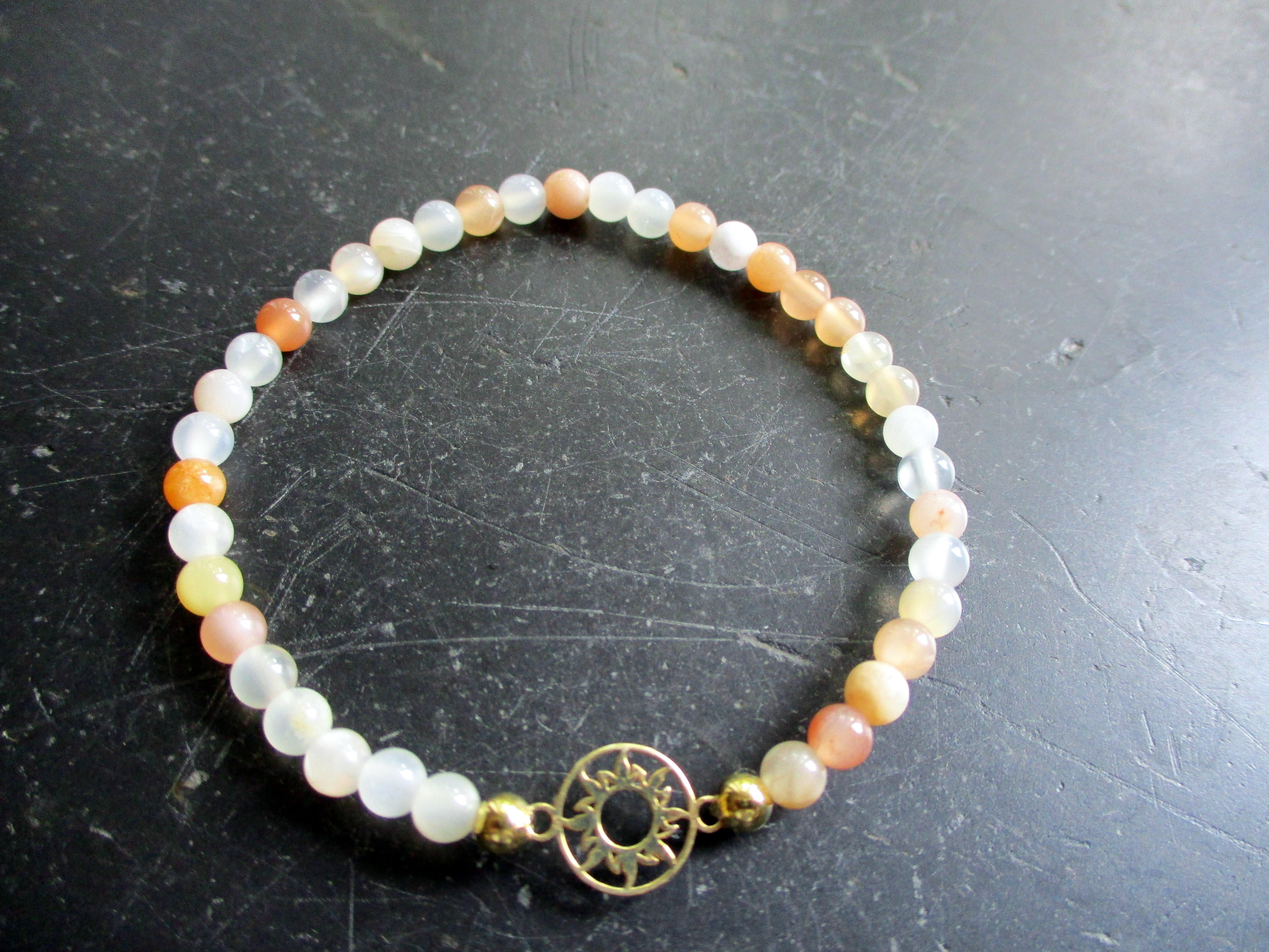 Armband, Symbolarmband, Mondstein, Sonne, Silber, vergoldet, Schmuck