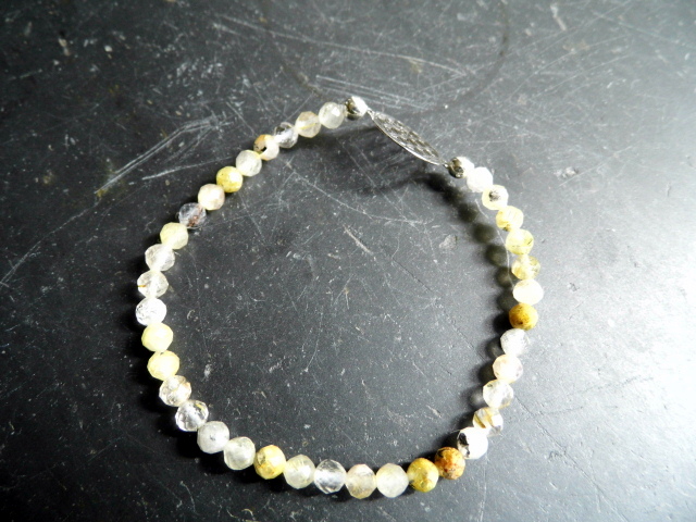 Armband, Symbolarmband, Rutilquarz, facettiert, Blume des Lebens, Silber, weiß, beige