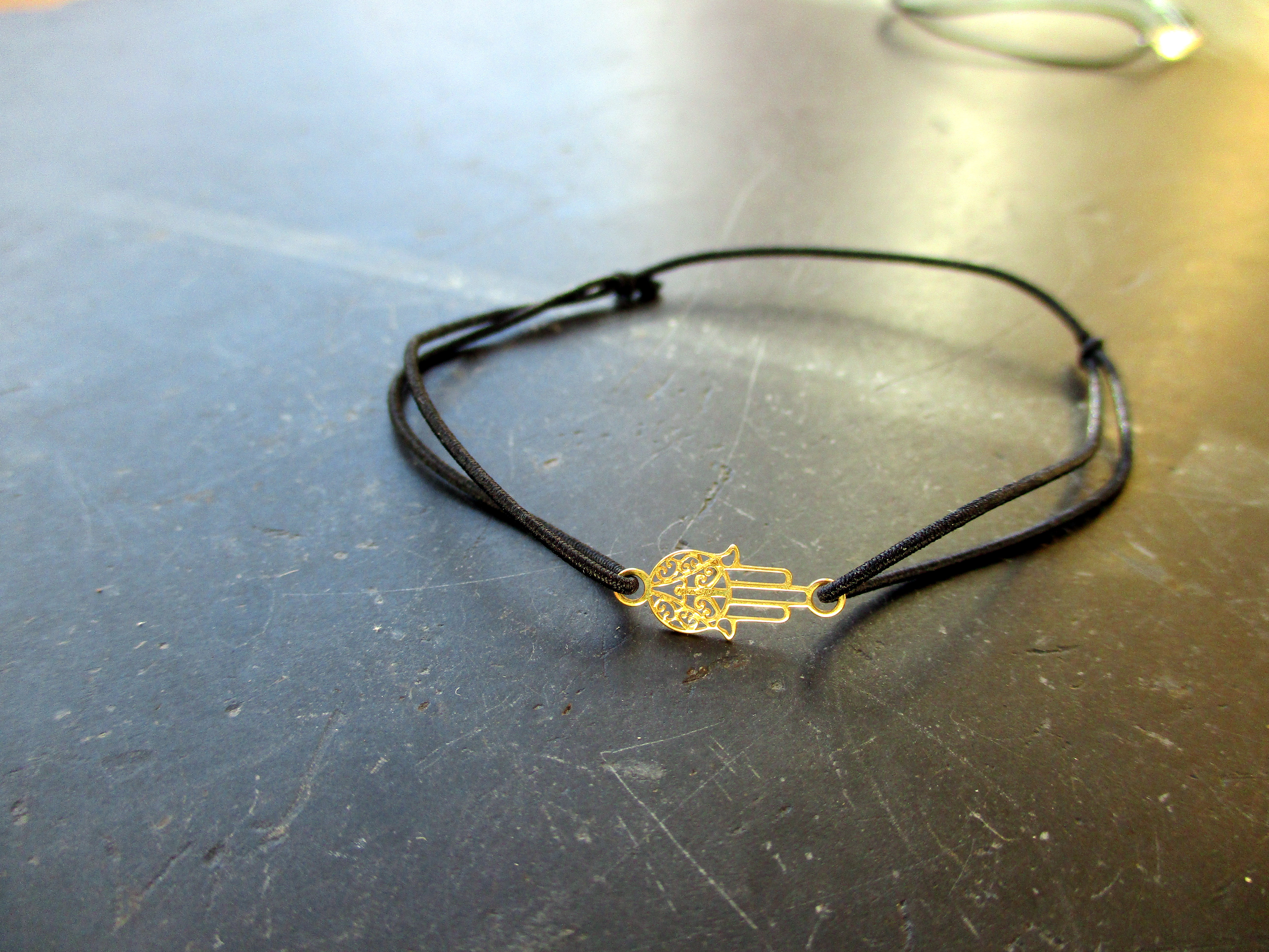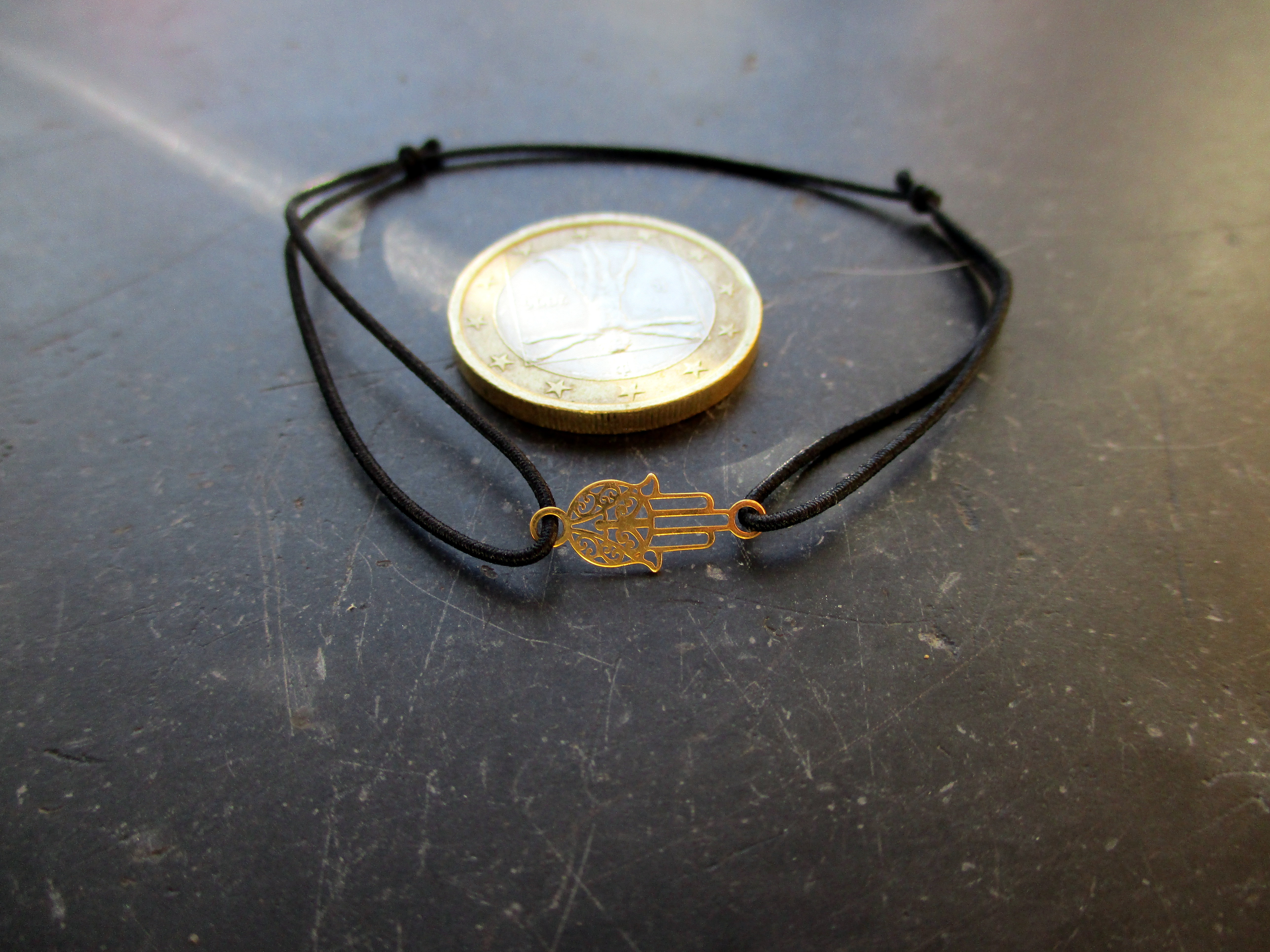 Armband, Symbolarmband, Hand von Fatima, klein, Sterlingsilber, vergoldet, Gummi, verstellbar, Frauen, Mädchen