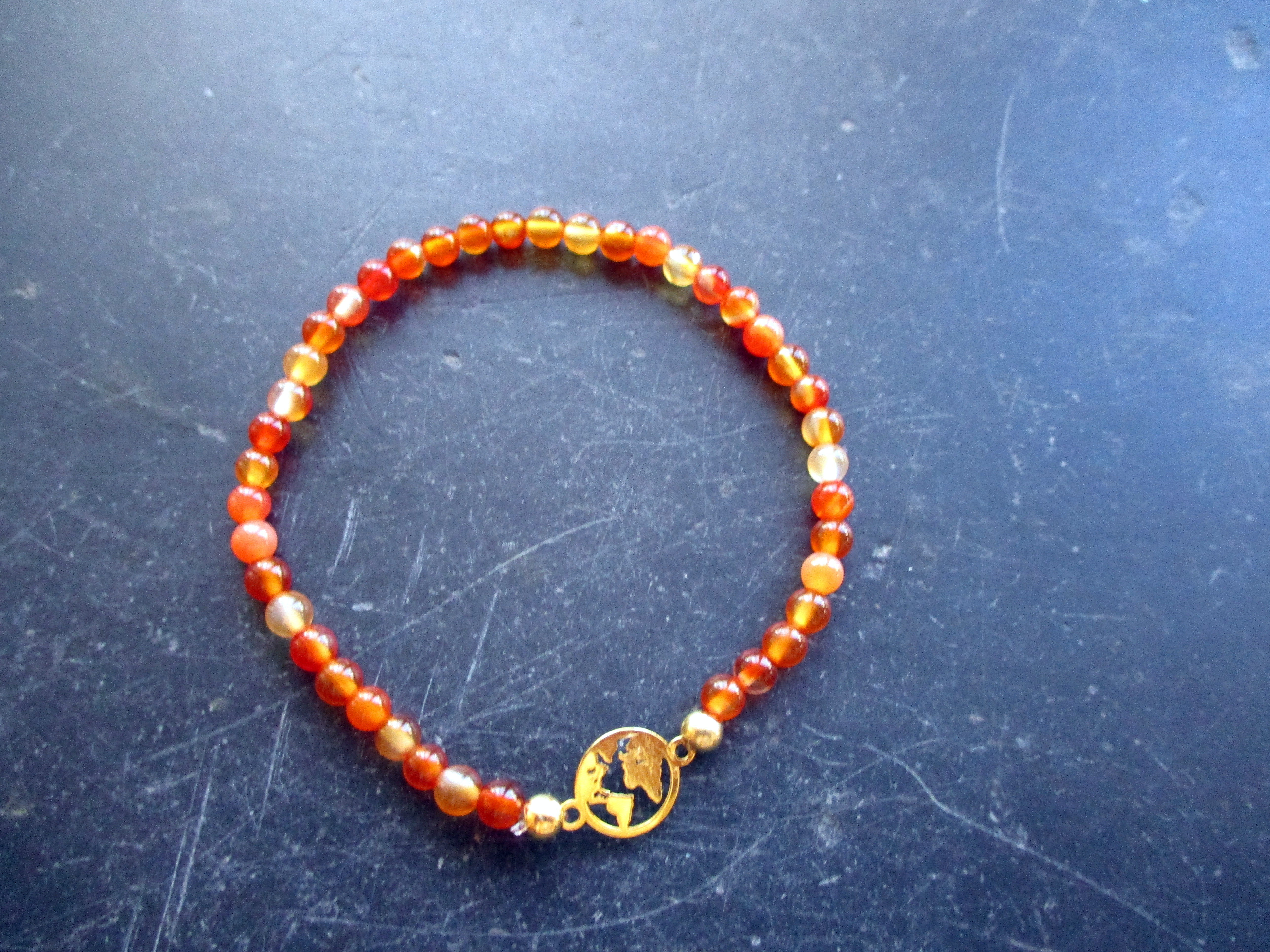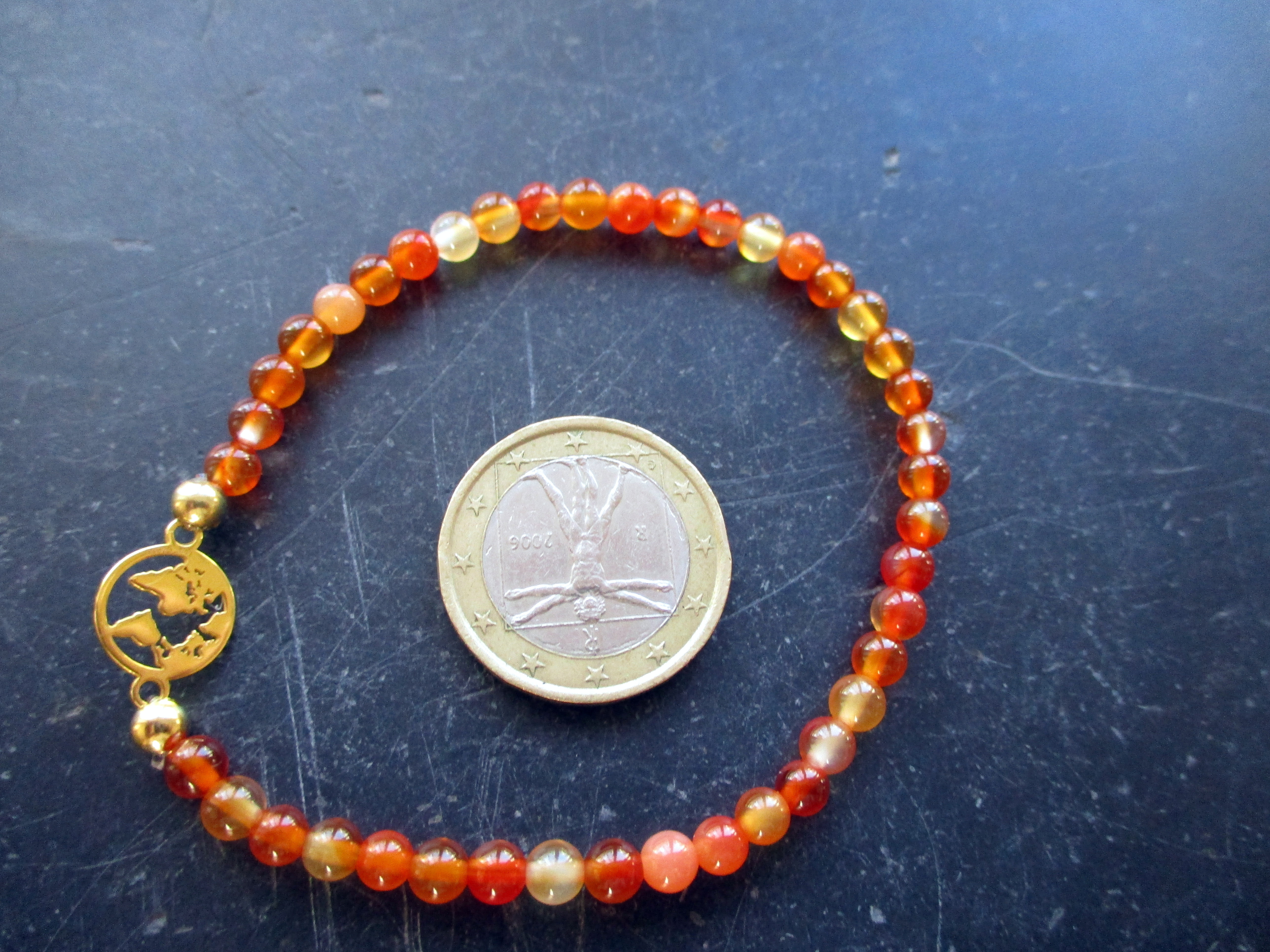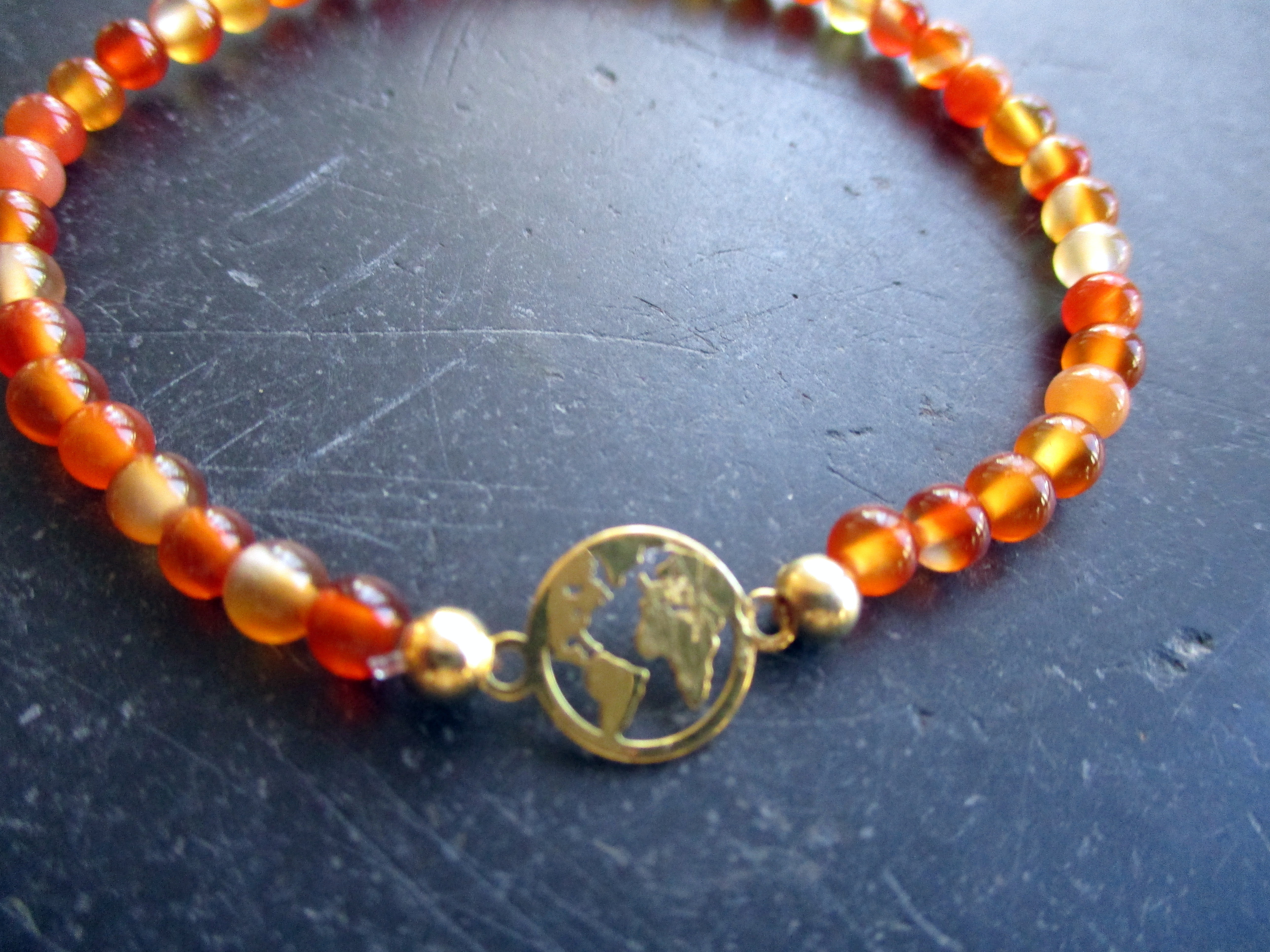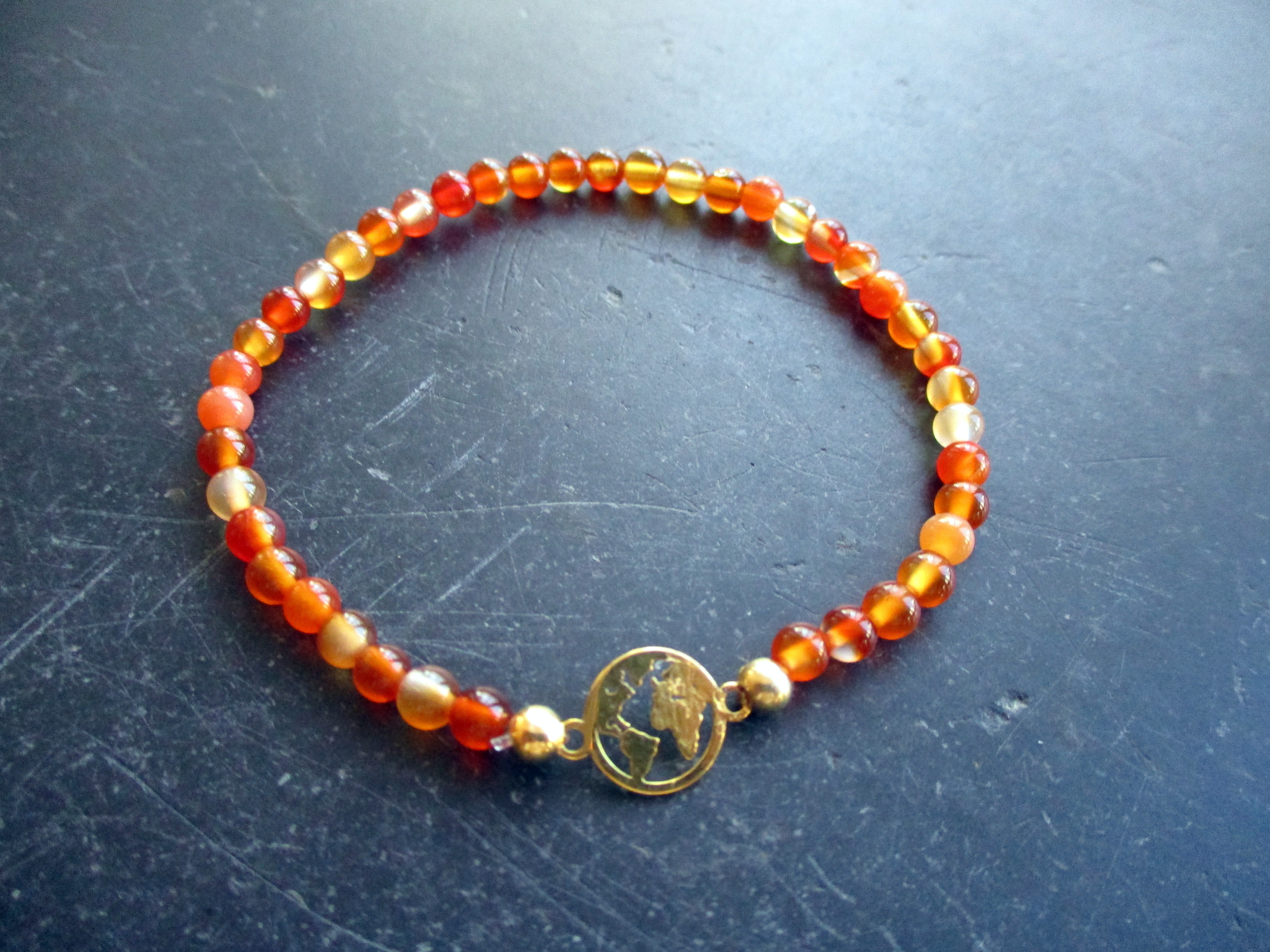 Armband, Symbolarmband, Mondstein, Weltkugel, Silber, vergoldet, orange