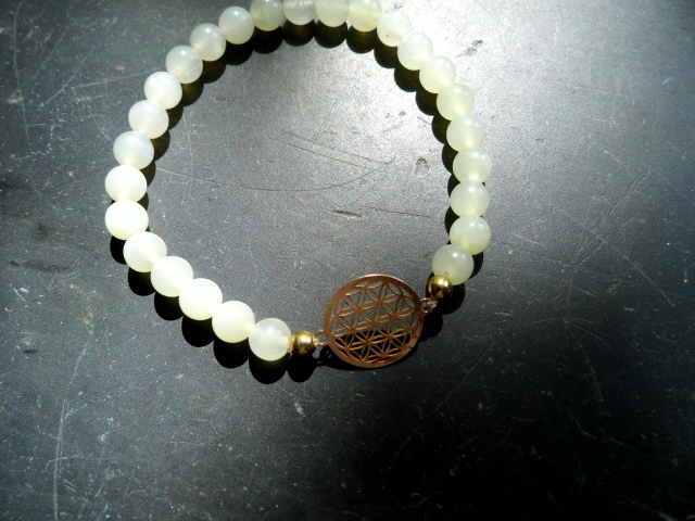 Armband, Symbolarmband, Prehnit, hellgrün, Blume des Lebens, Silber, vergoldet