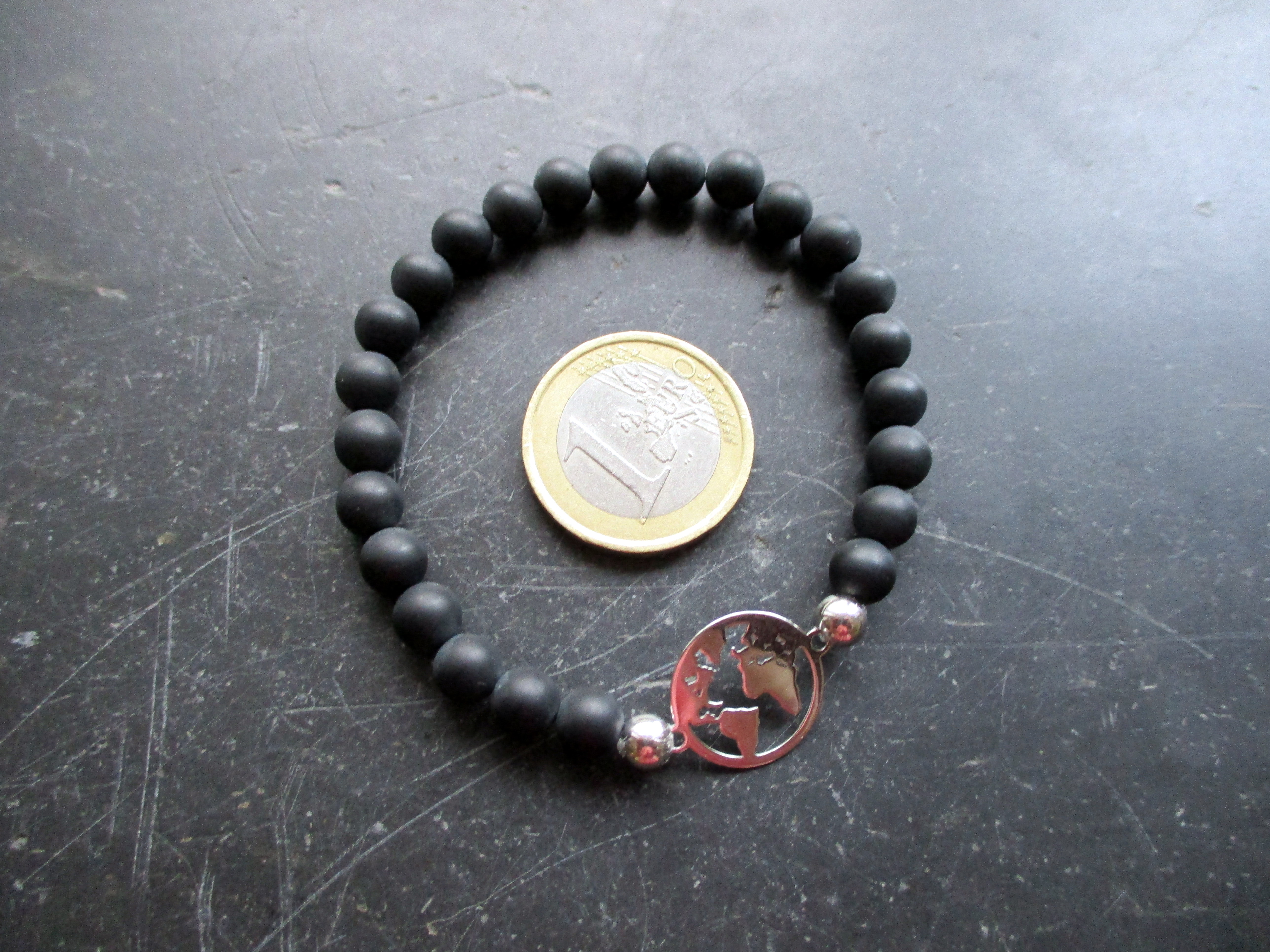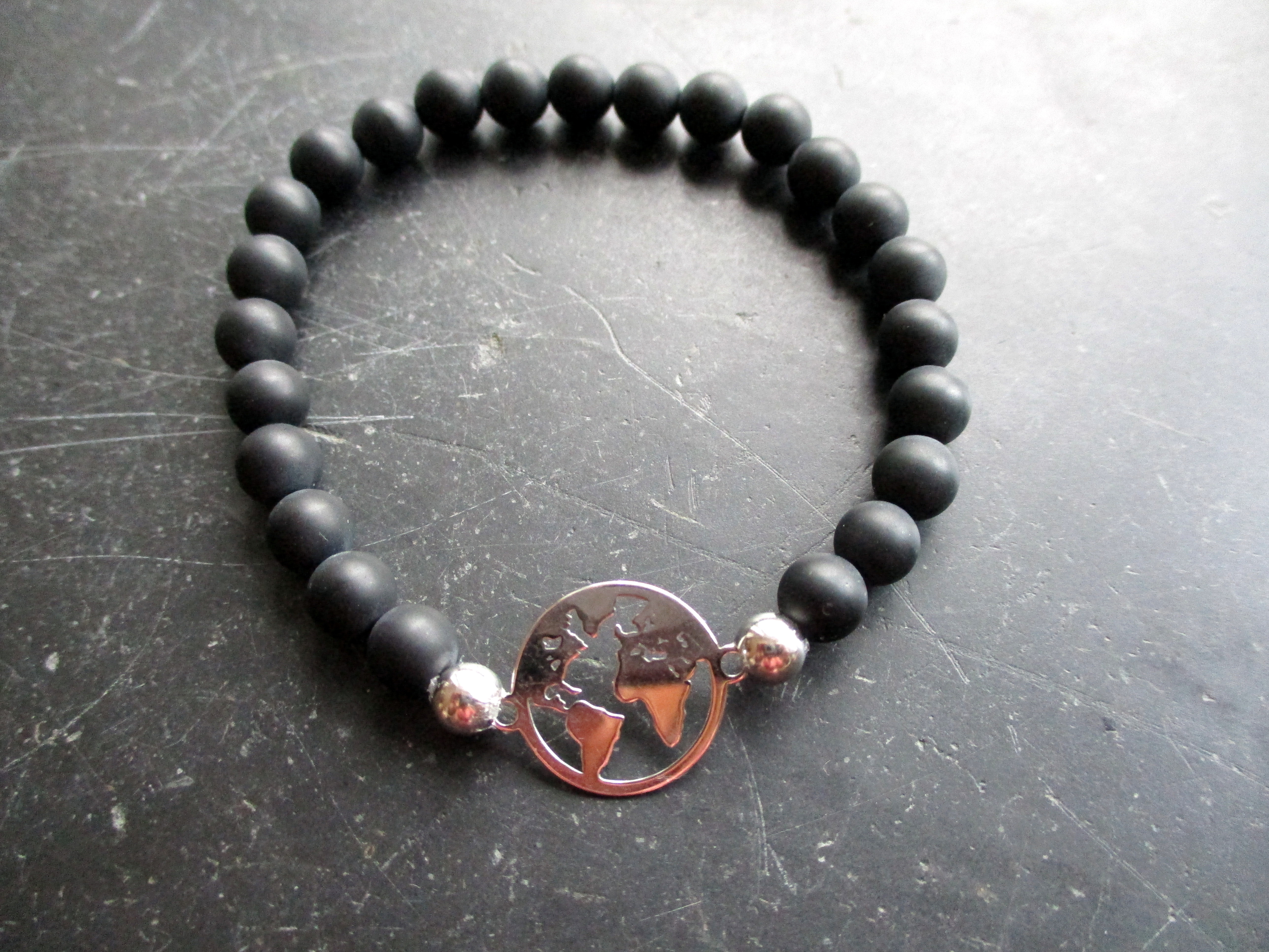 Armband, Onyx, schwarz, Weltkarte, Sterlingsilber, Schmuck, Unisex