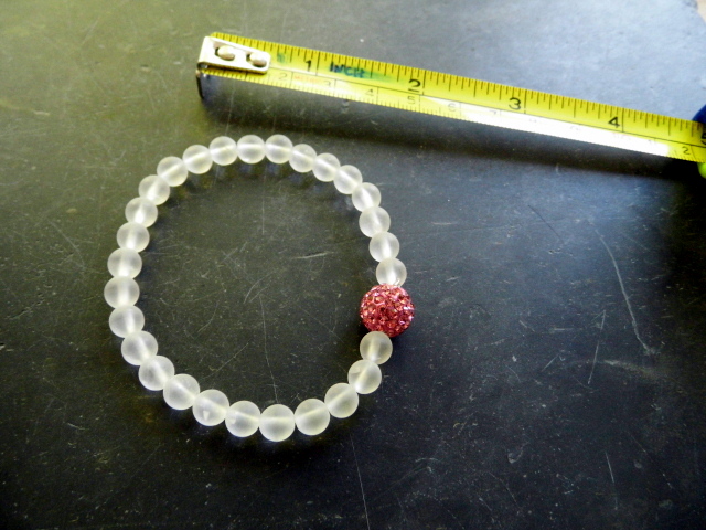 Das Armband ist auf Gummi aufgezogen, dehnbar.