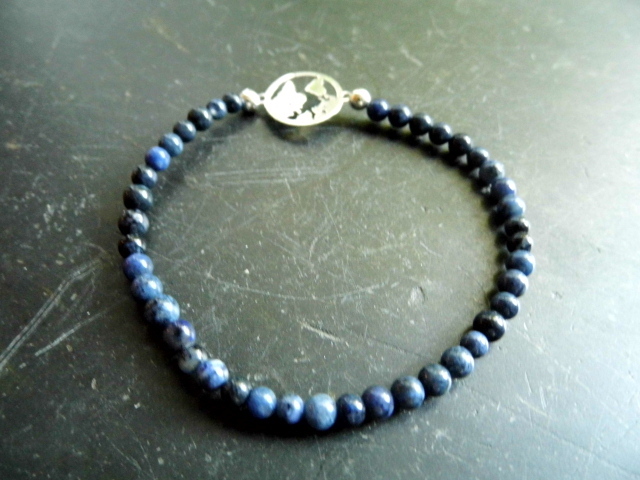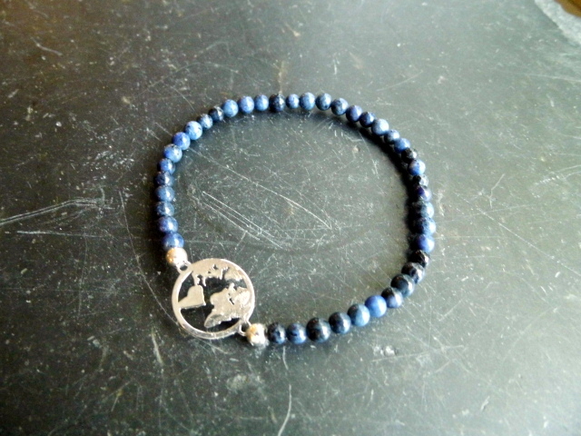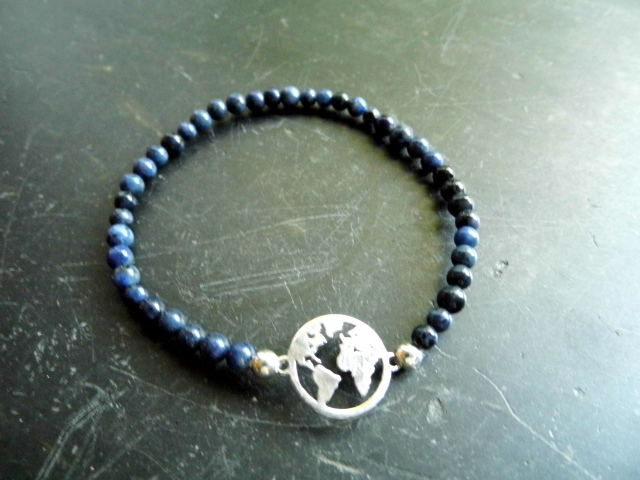 Armband, Welt, Weltkugel, Sterlingsilber, Dumortierit, blau, Symbolarmband, Schmuck