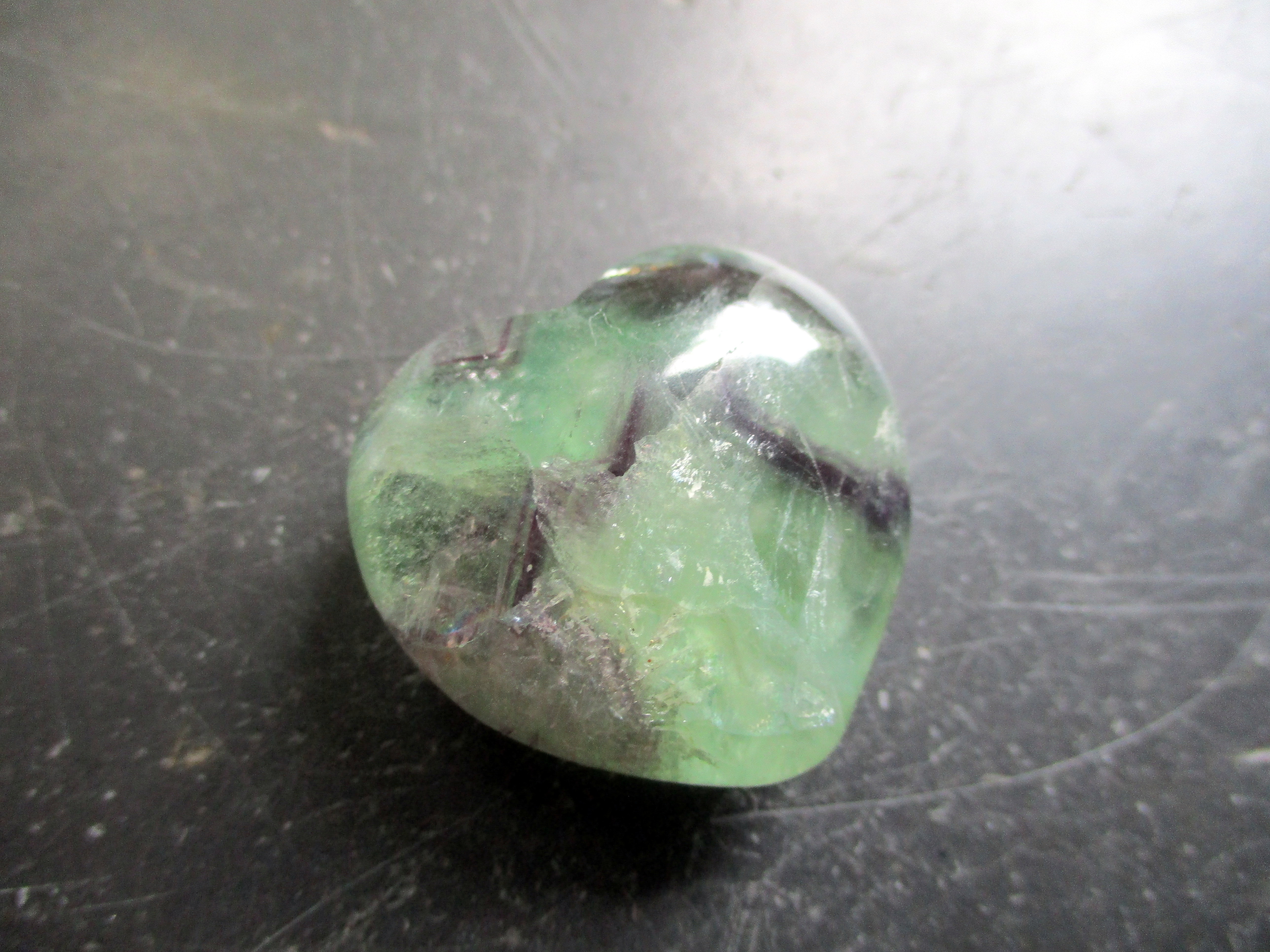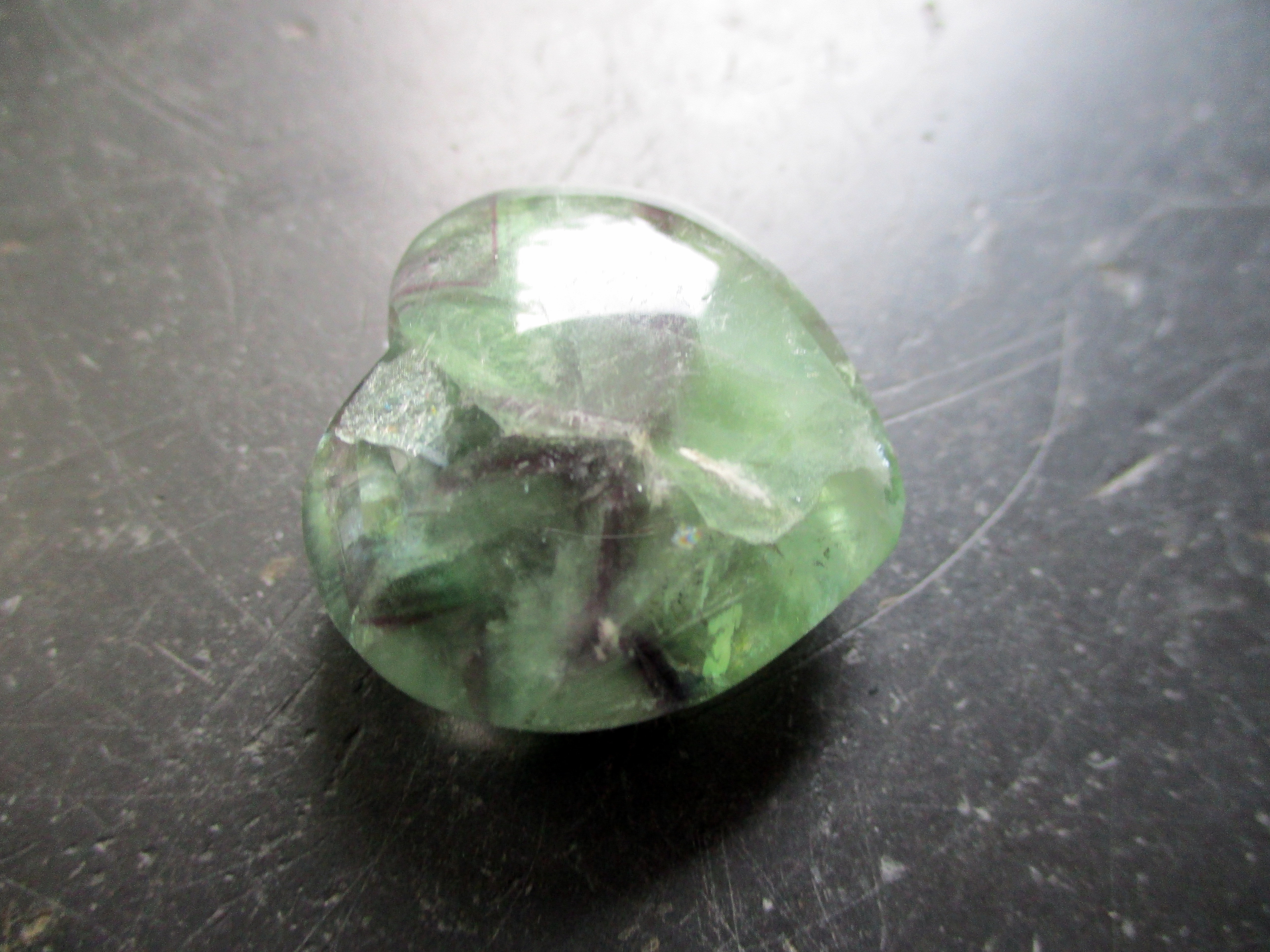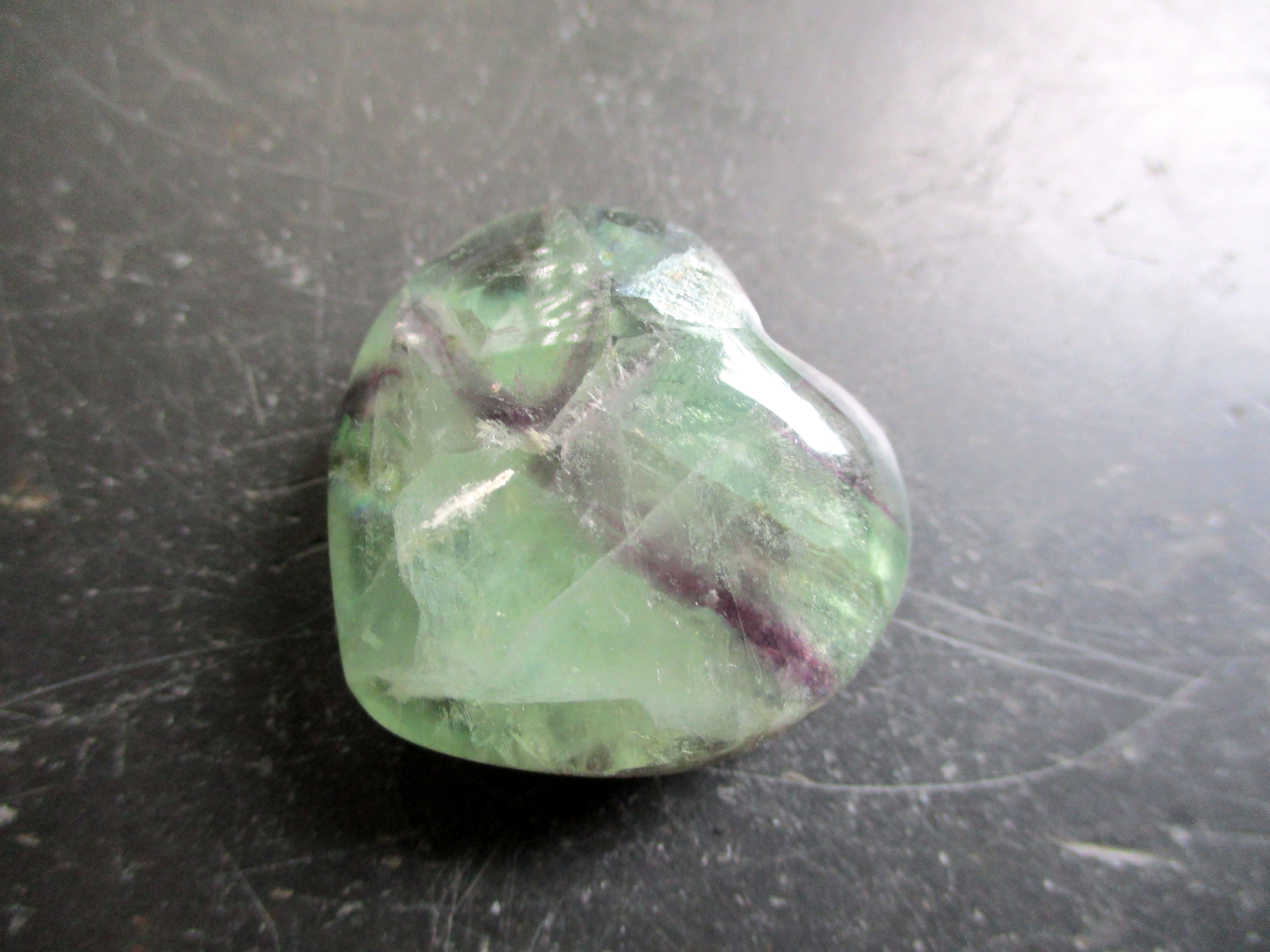 Ein schönes Geschenk ist so ein Herz aus Regenbogenfluorit.
