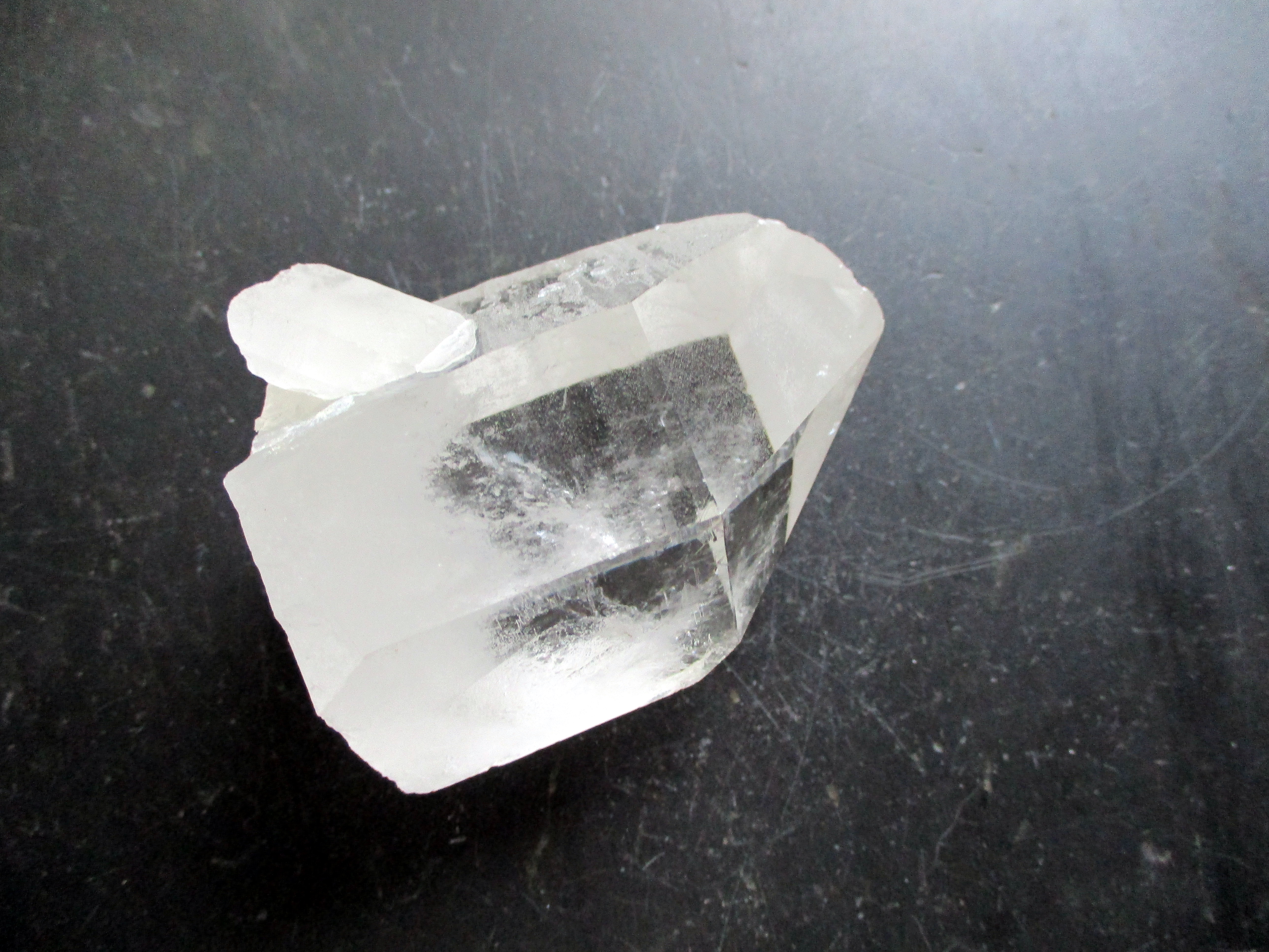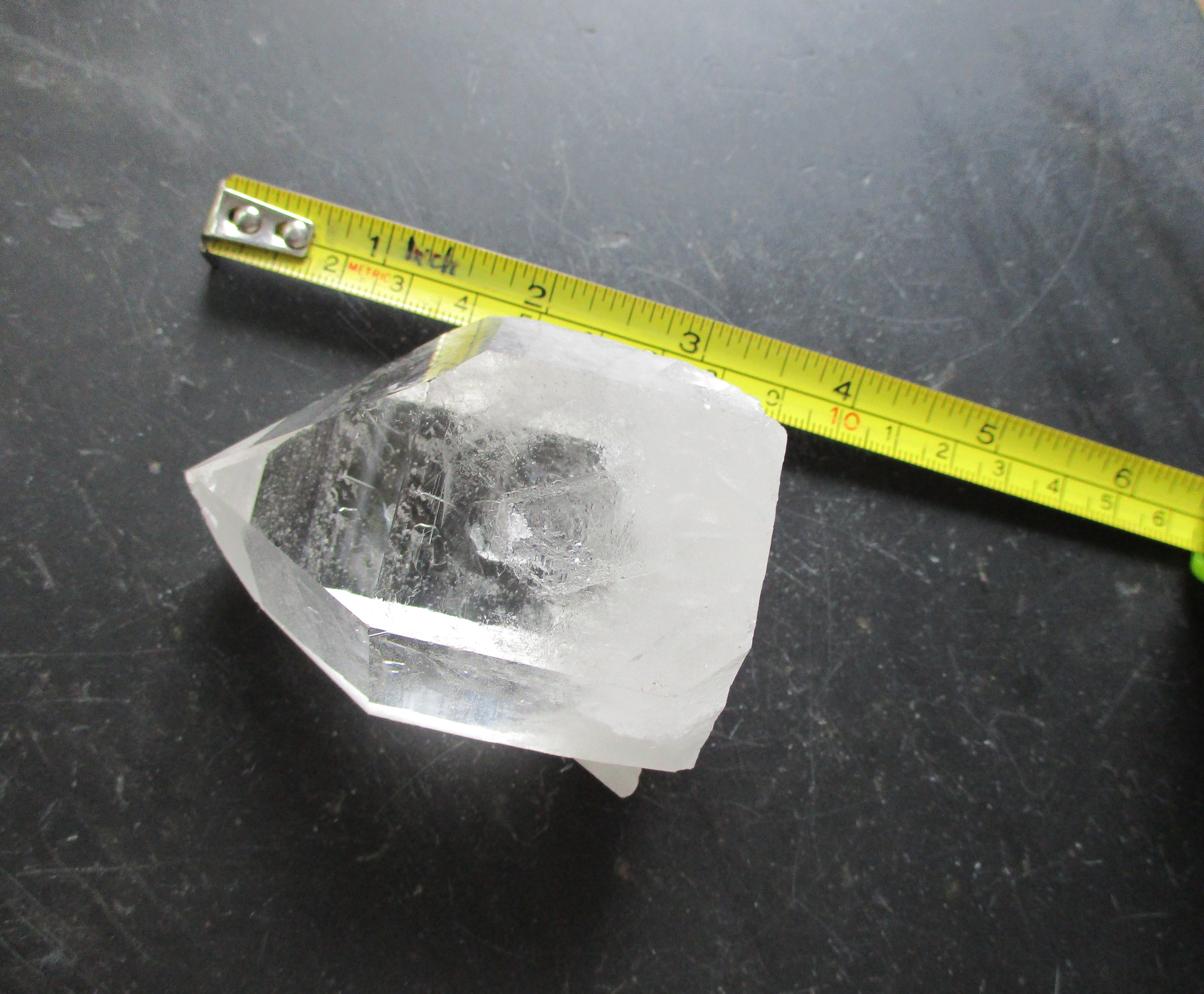 Der Bergkristall ist 8 cm hoch, die Standfläche ist 4.5x5 cm