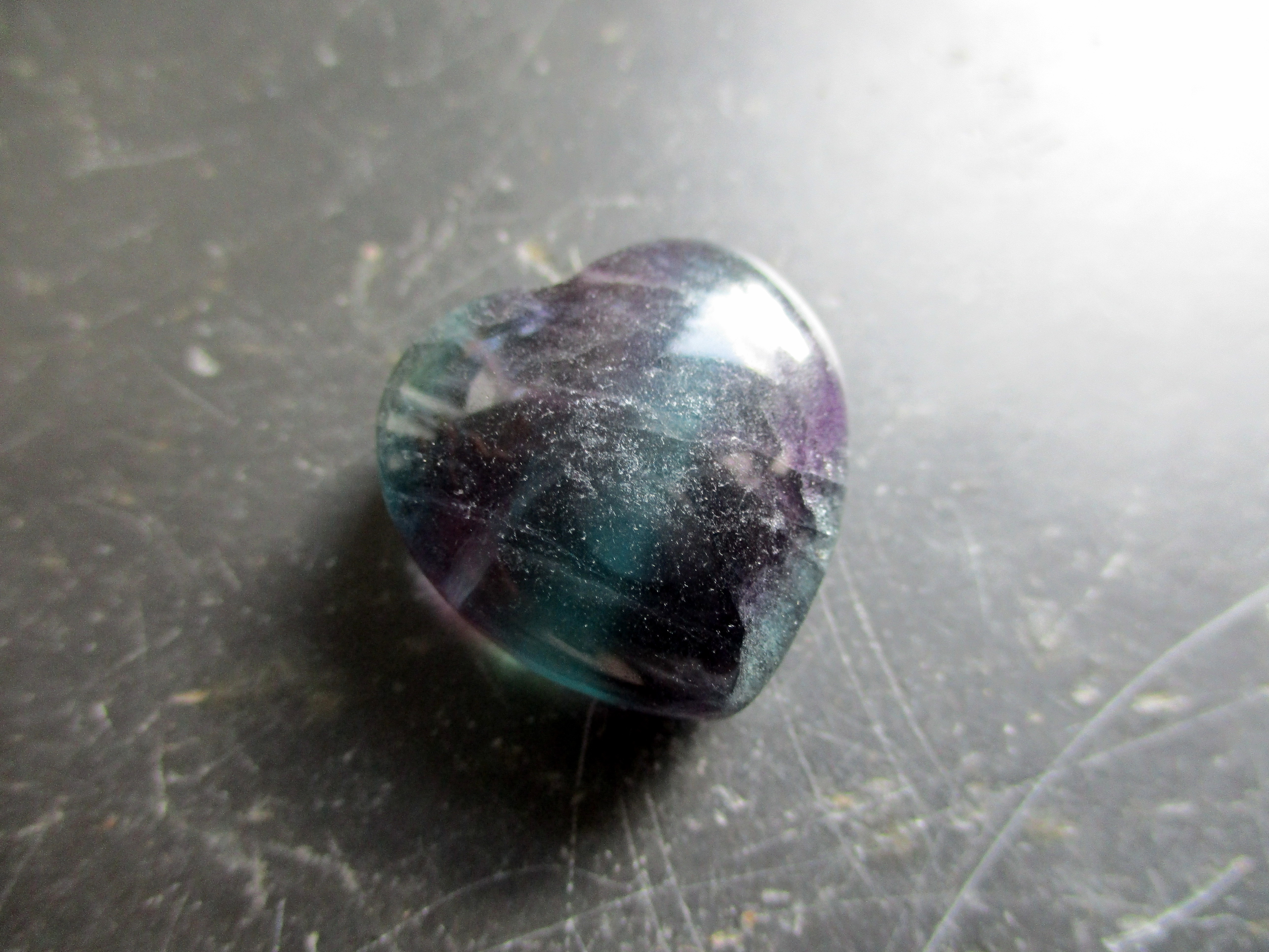 Herz, Edelsteinherz, Deko, Geschenk, Regenbogenfluorit, Fluorit, dunkel