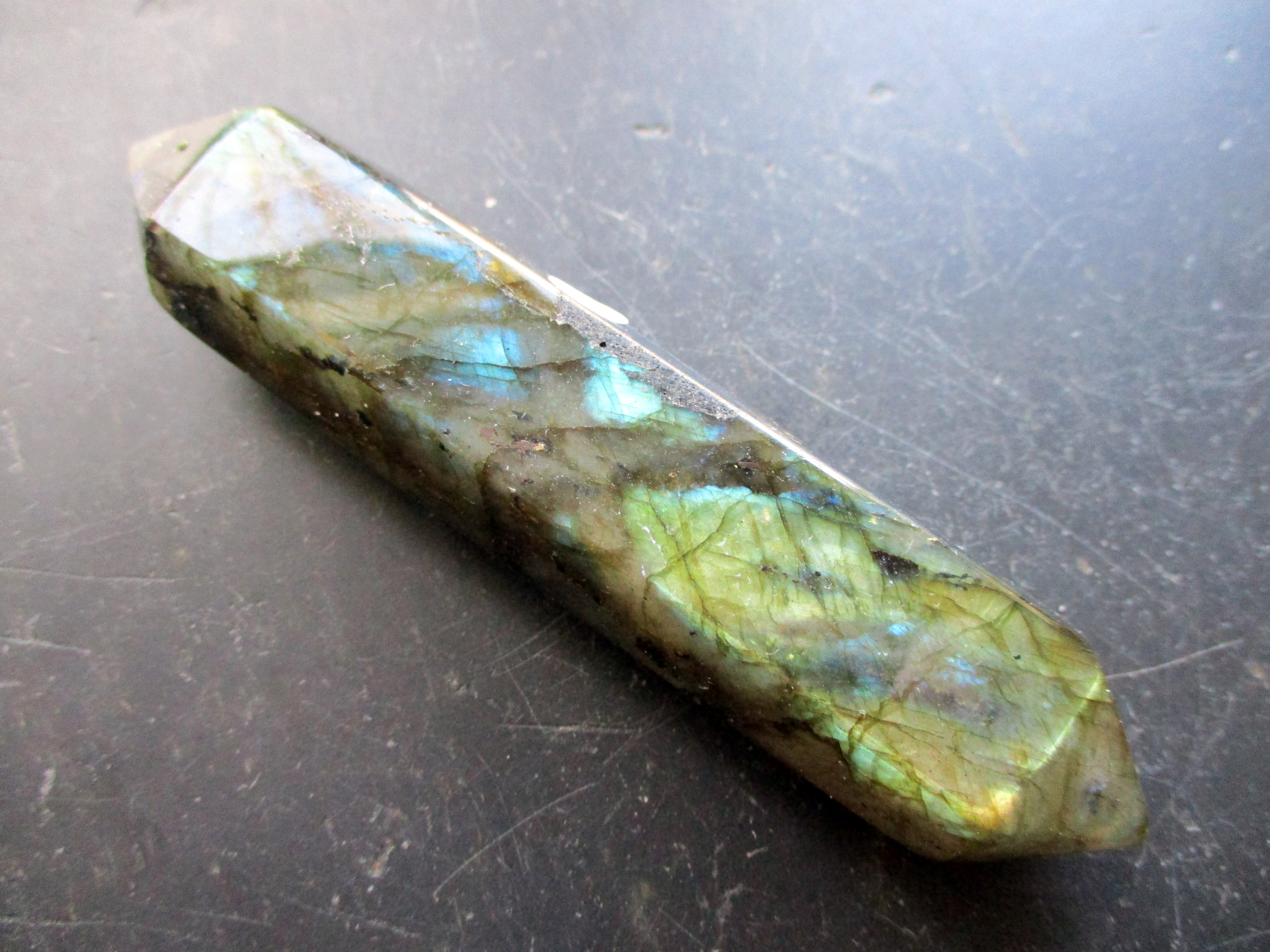 Edelstein, Labradorit, Doppelender, Meditation, Akupunktur, Massage, bunt schimmernd