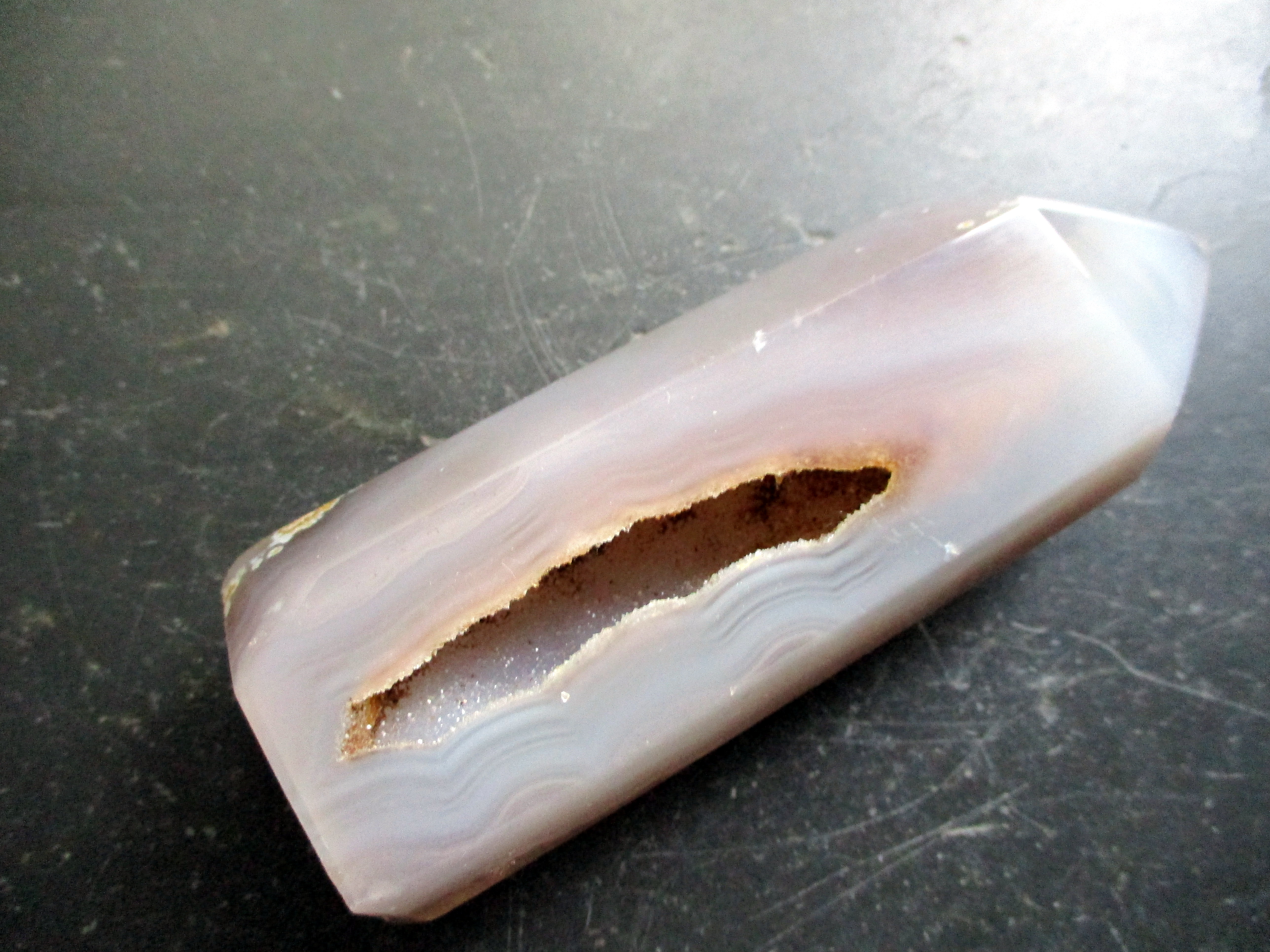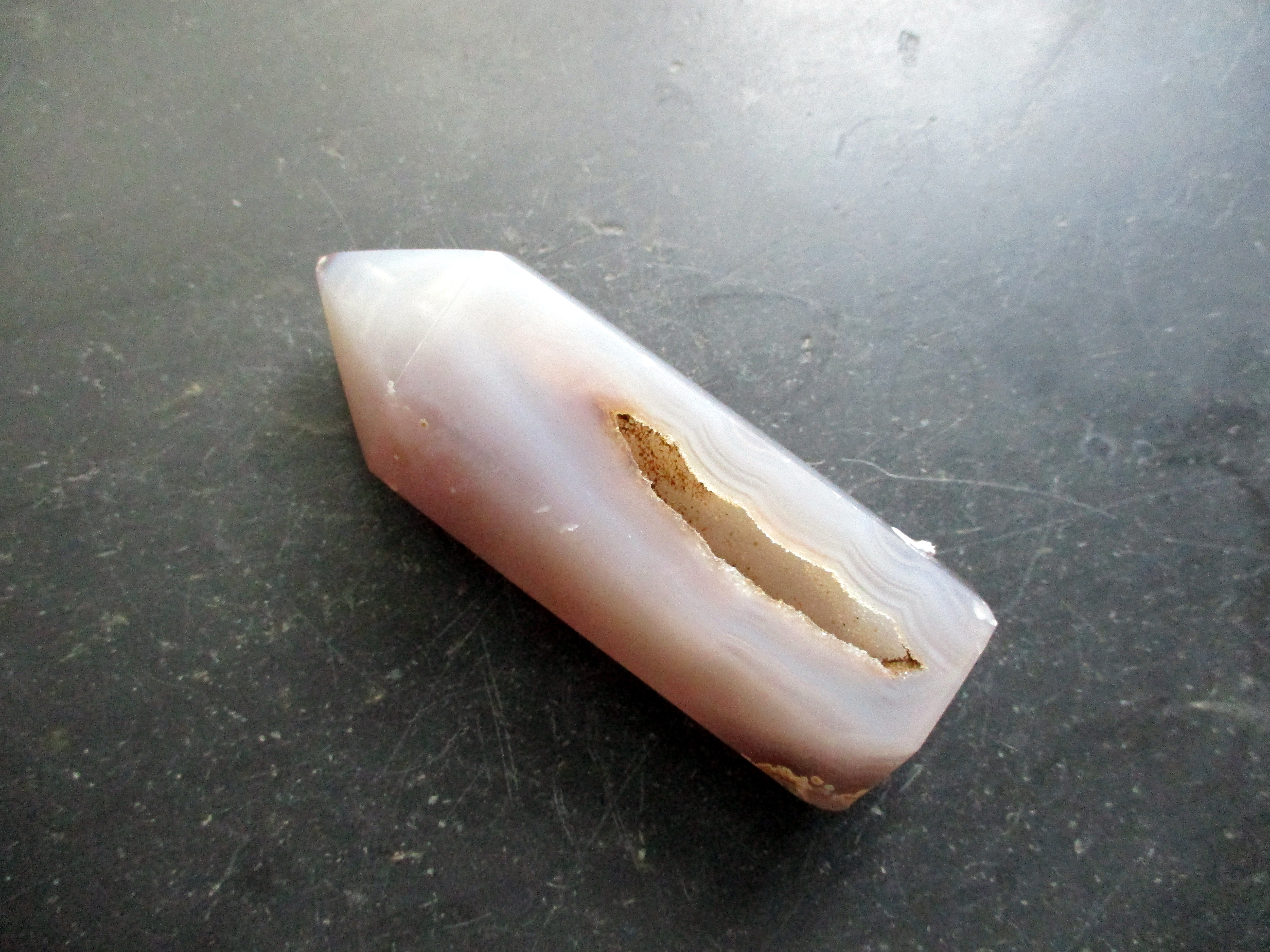 Eine Spitze aus Achat, mit einem Drusen Einschluss.