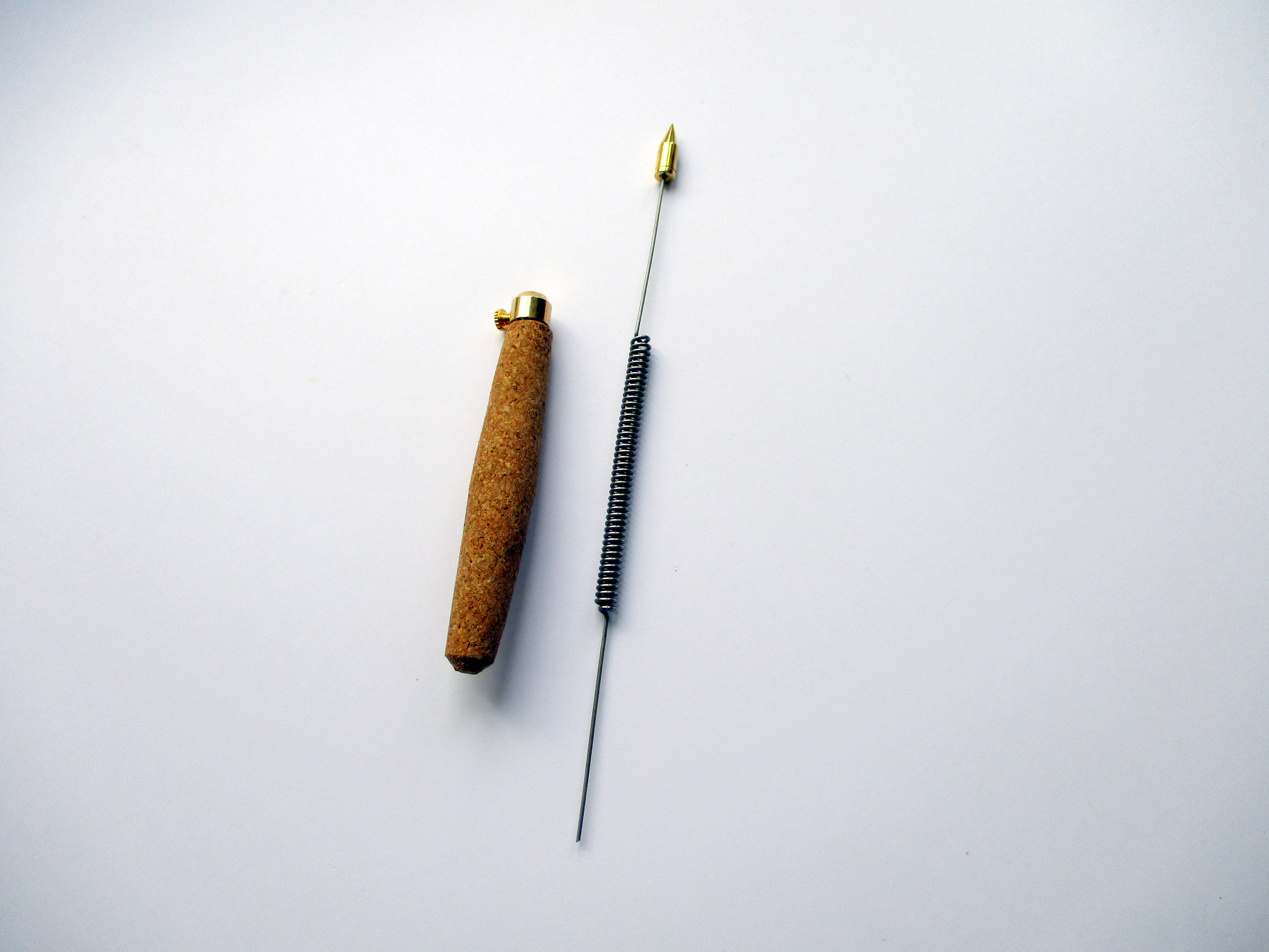 Einhandrute, Tensor, Wünschelrute, Kork, Messingspitze, Spiraldraht, zerlegbar