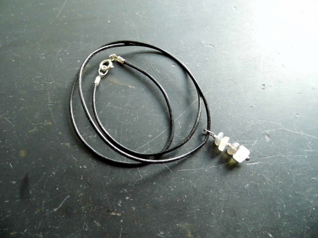 Kette, Anhänger, Cairn, Lederband, Mondstein, Labradorit, Silber, Schmuck, grün, weiß