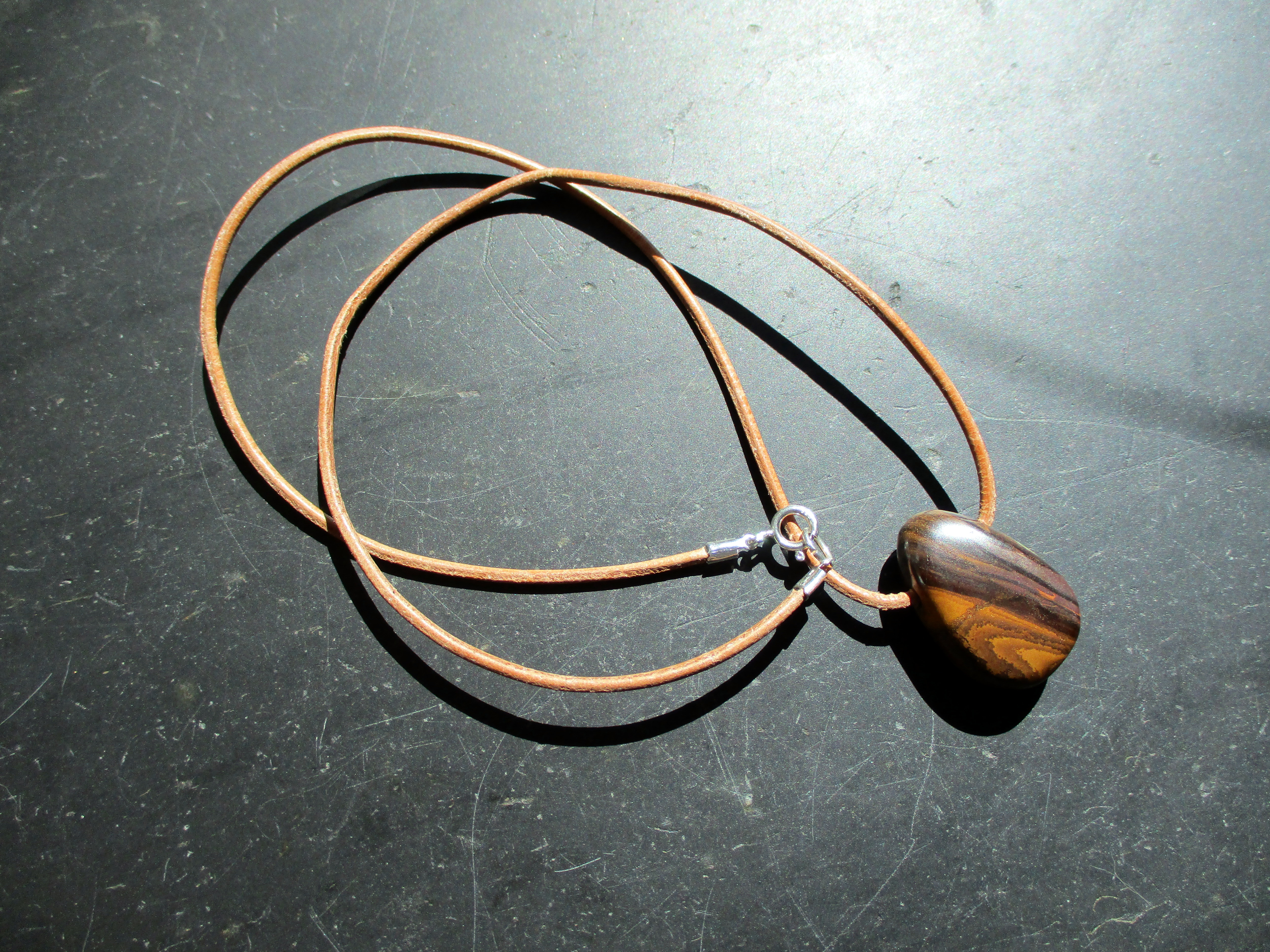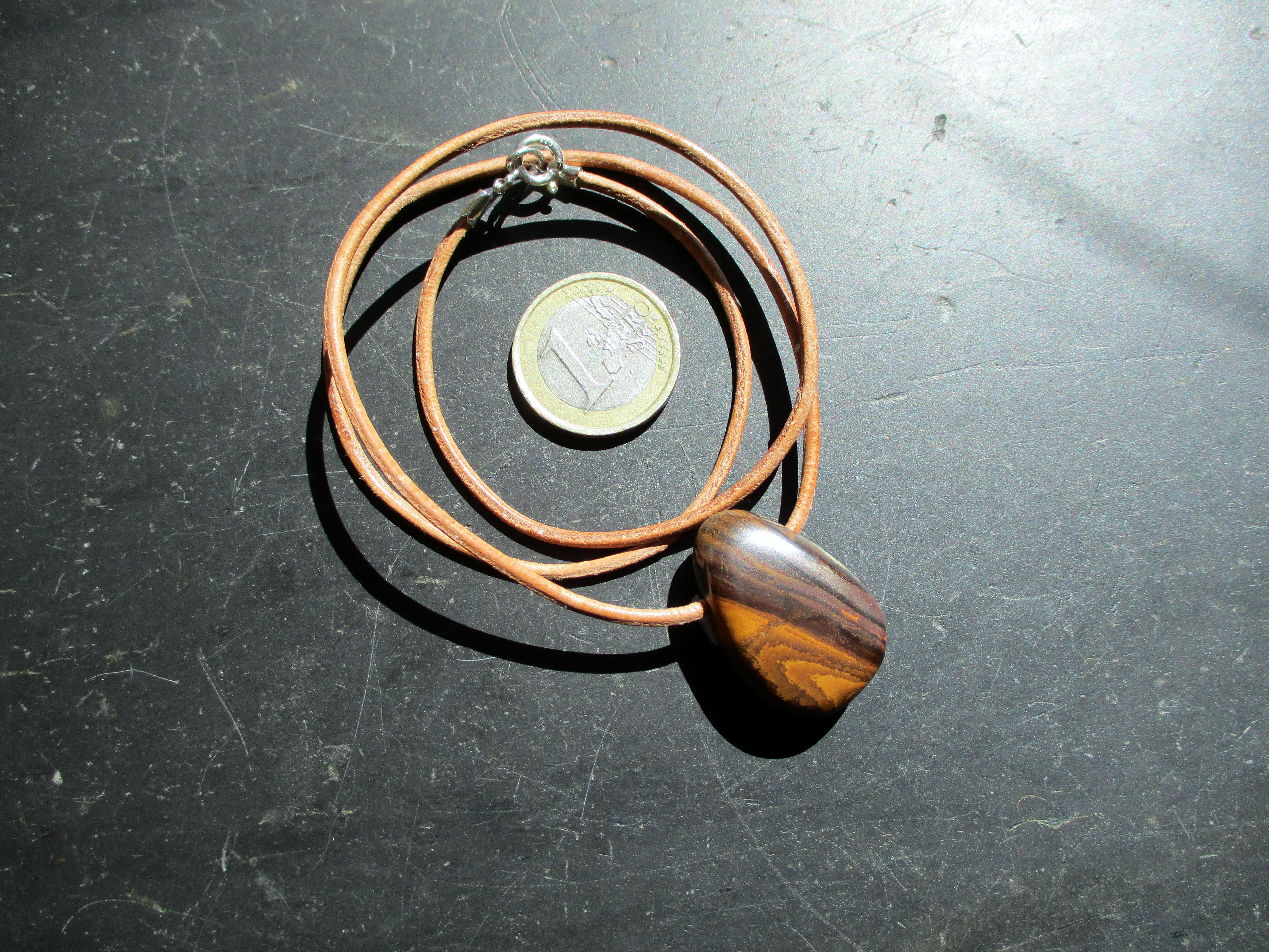 Kette, Anhänger, Lederband, Tropfen, Opal, braun, Schutz, Unisex