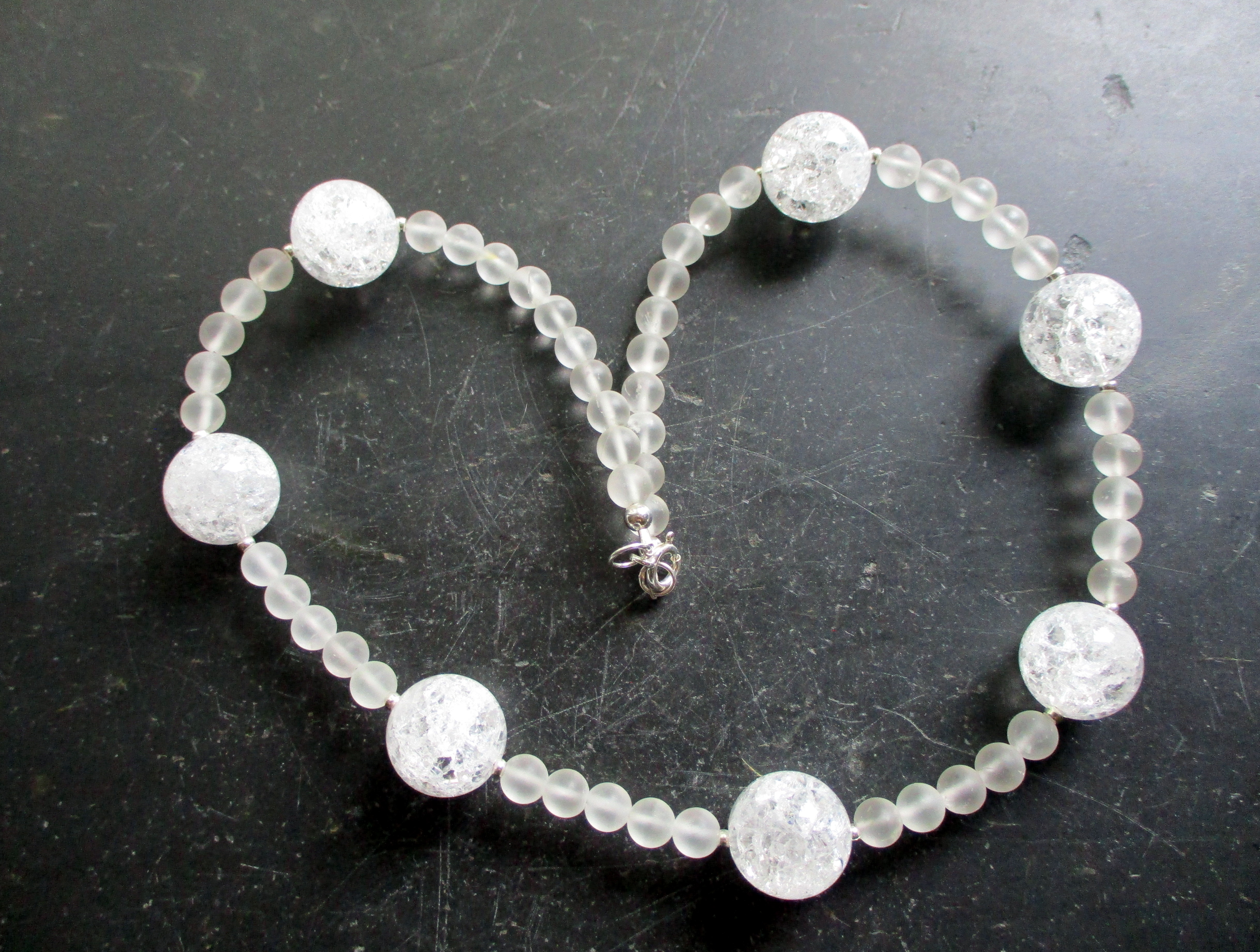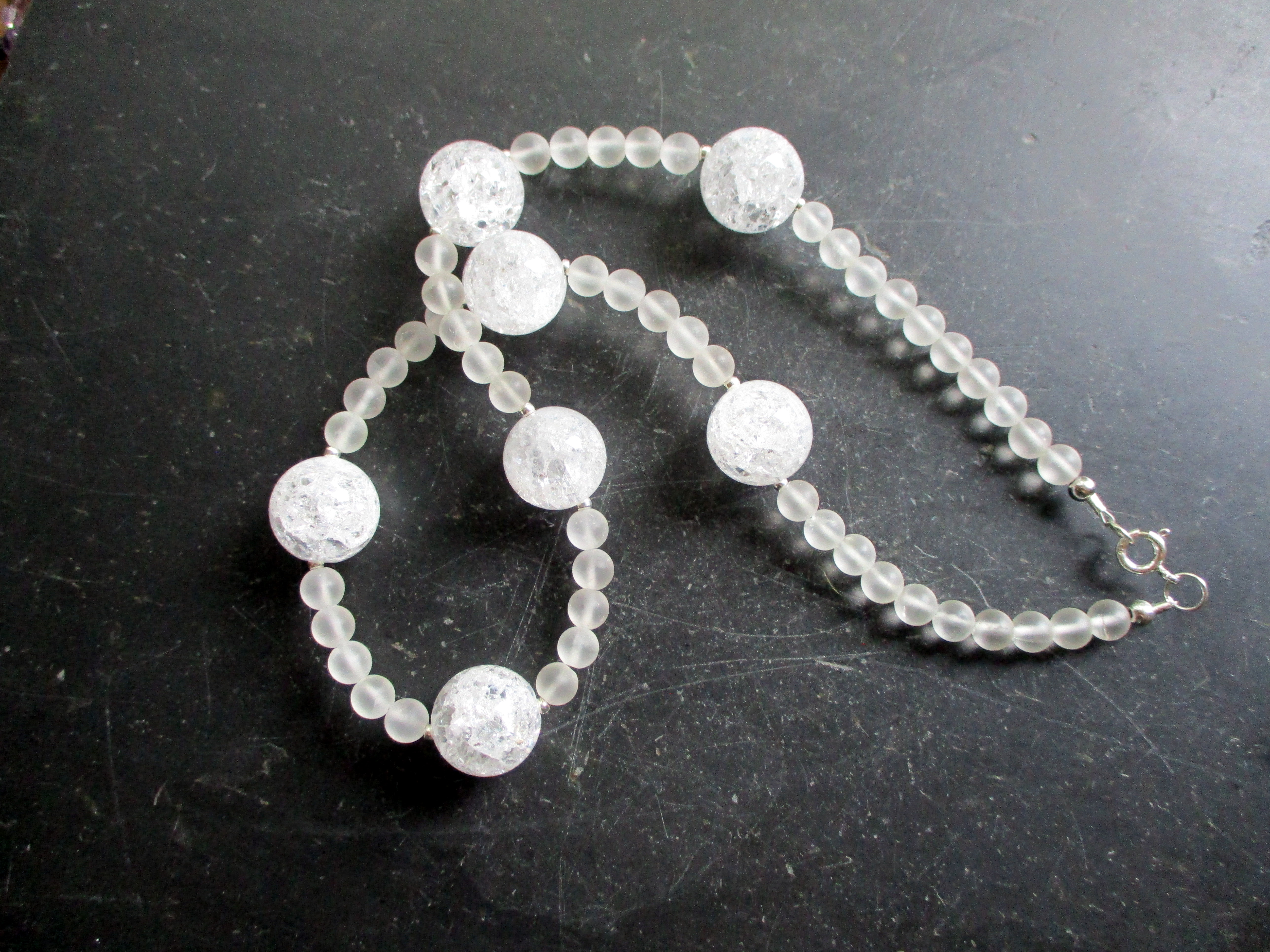 Kette, Bergkristall, große Kugeln,Sterlingsilber, Braut, Schmuck