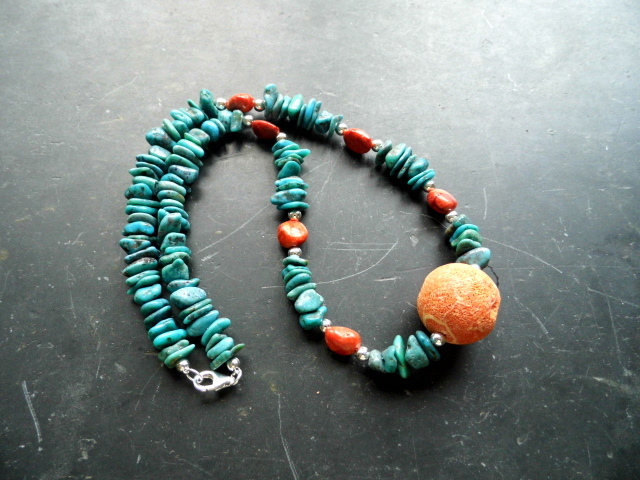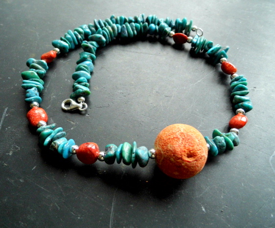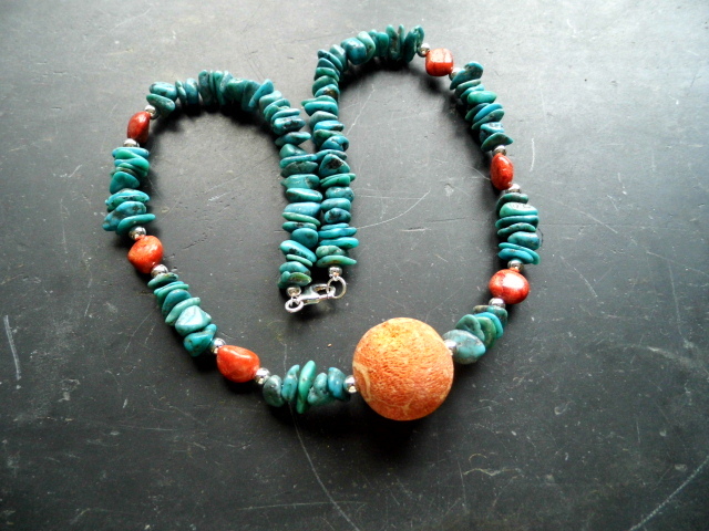 Mitte der Kette ist eine große Kugel aus Koralle,
