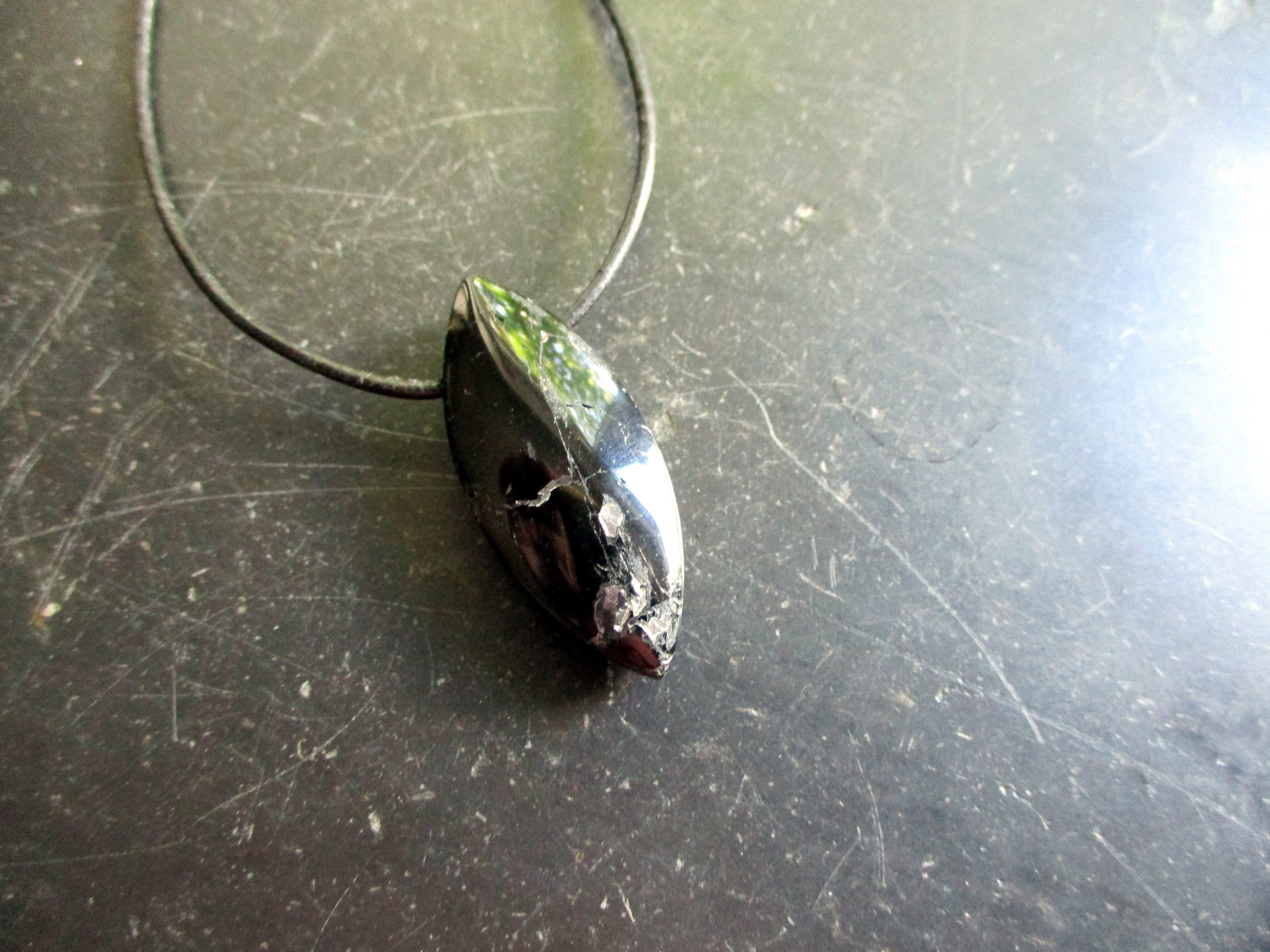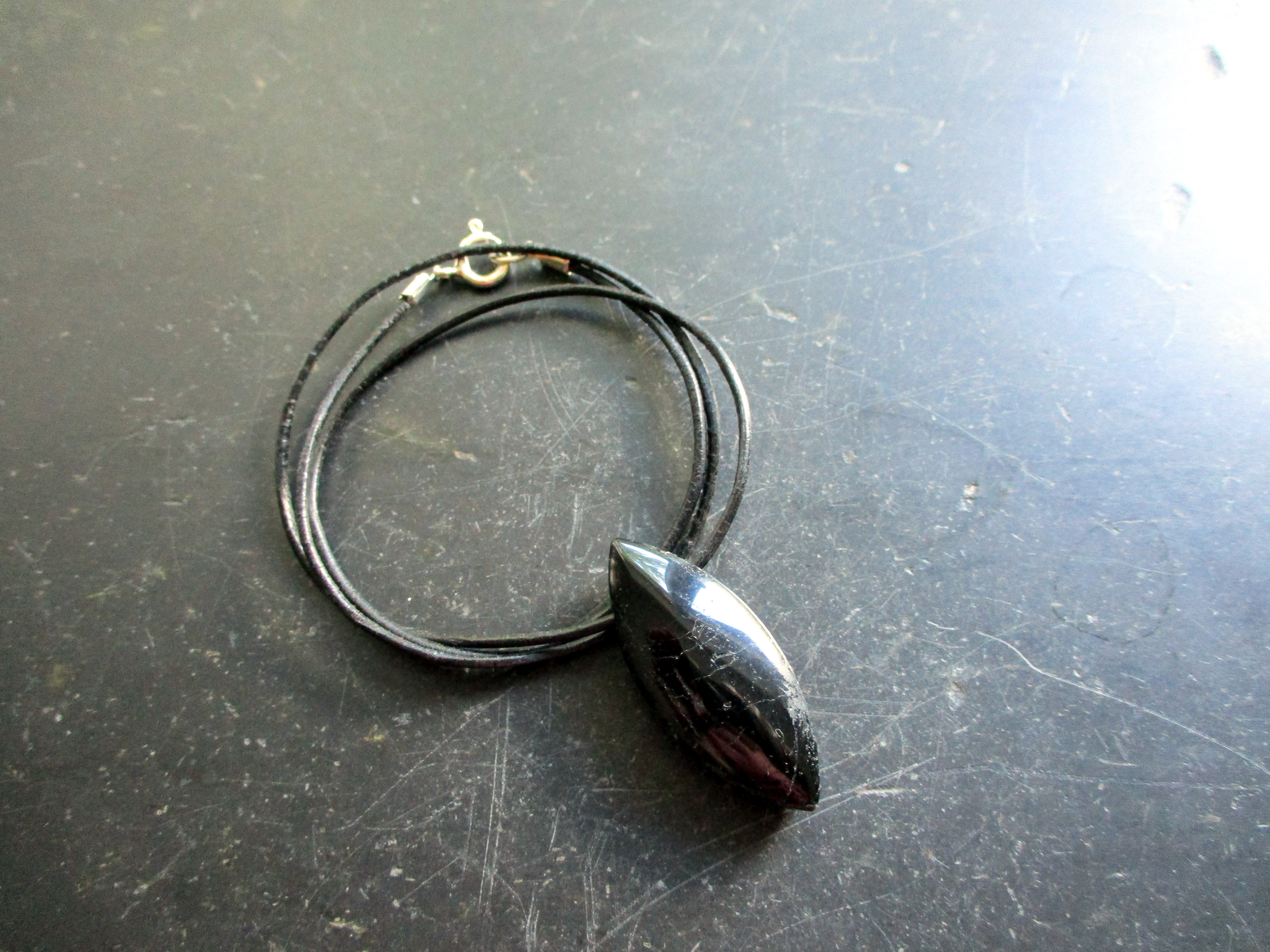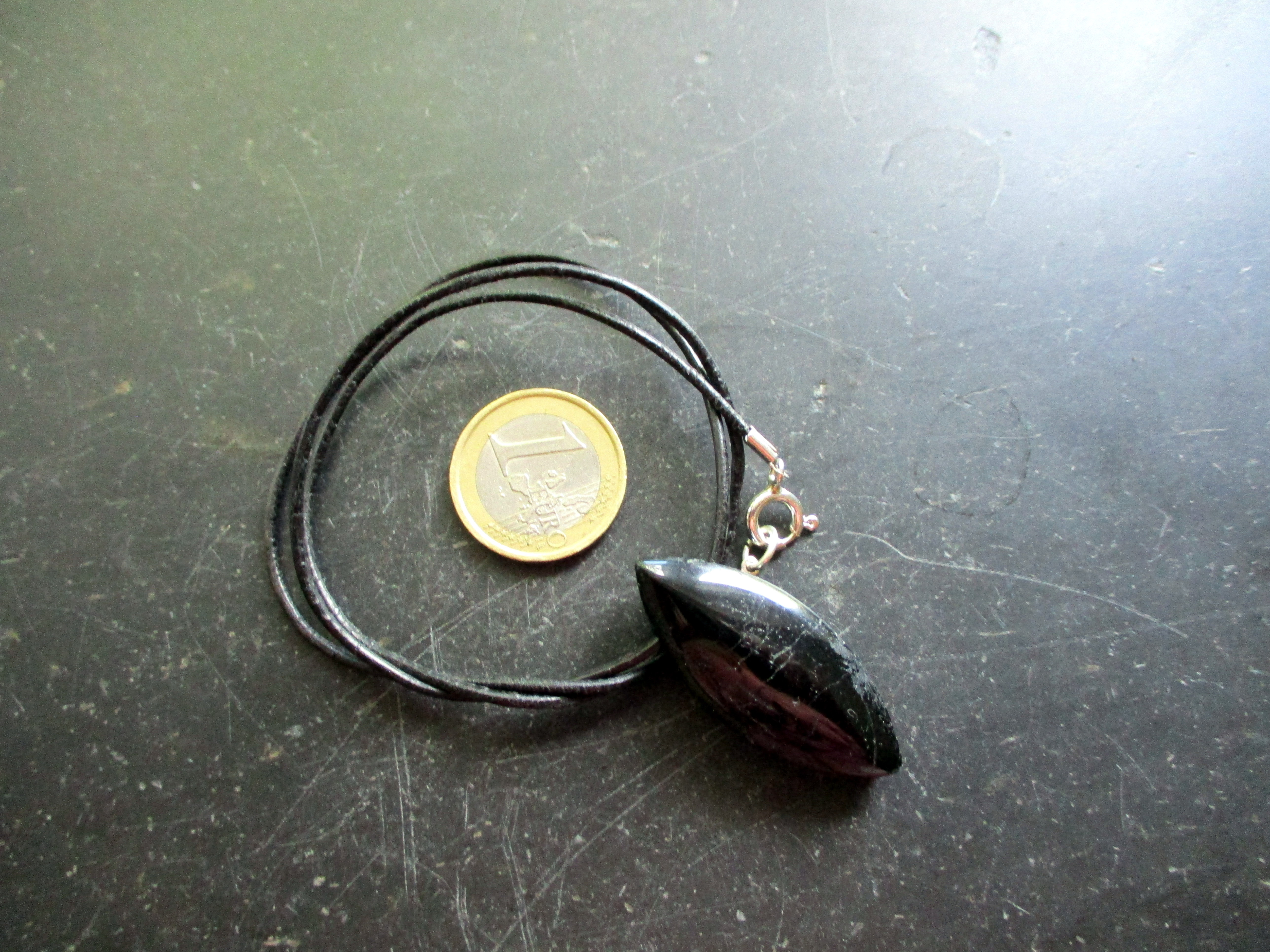 Kette, Lederband, Anhänger, Turmalin, Navette, schwarz, Unisex